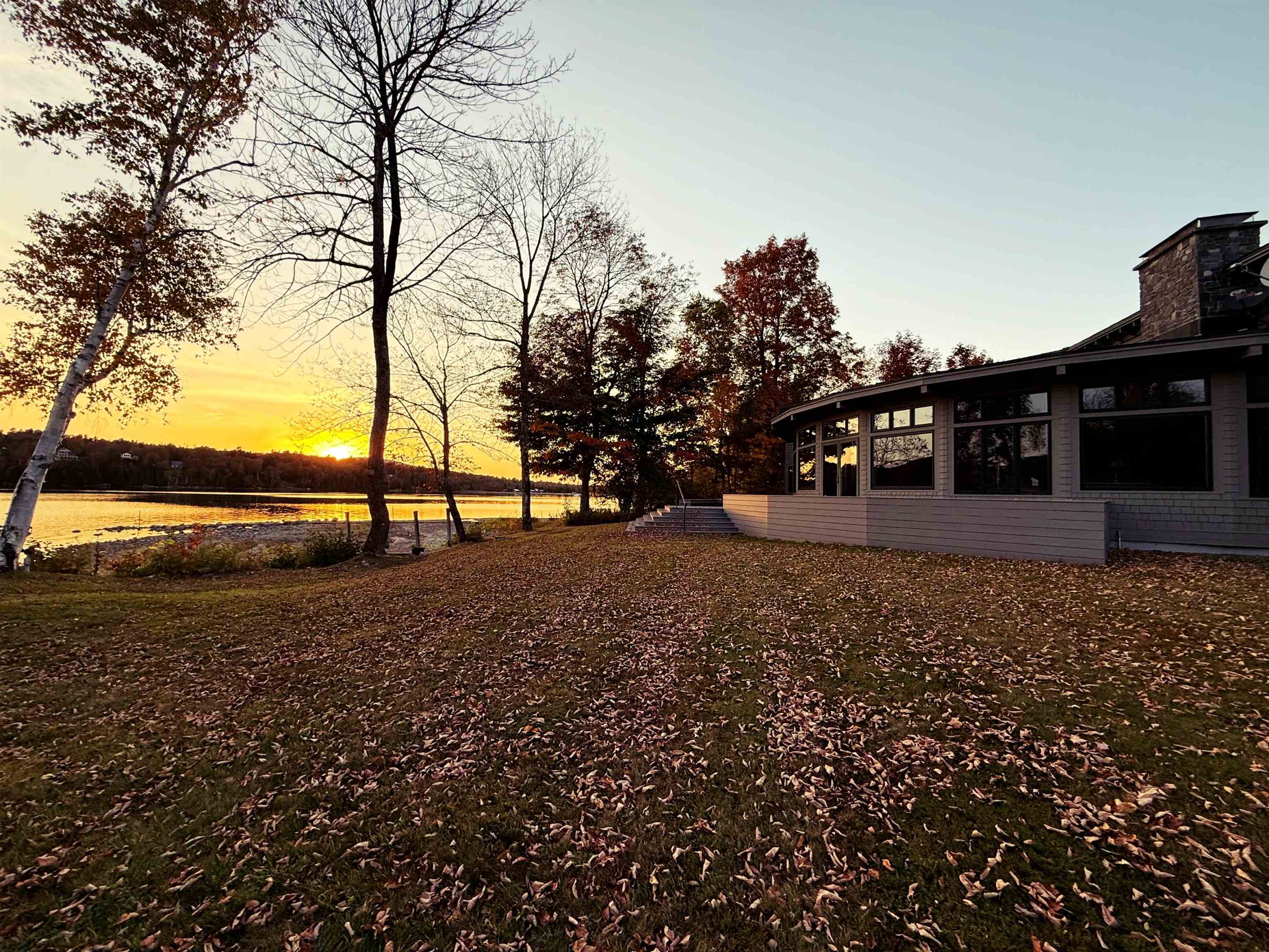 Embrace the luxury of lakefront living! Architect-designed contemporary home, featuring 200' sandy beach frontage on pristine Lake Willoughby, is looking for its second owner. Set on 1.06A lot, the property guarantees privacy, bordered by trees, while offering 160-degree views of lake & surrounding mountains. Level, grassy grounds provide space for recreation, gardening, & pets, accented by 1, 000 sq ft of composite decking for relaxation & entertaining. The interior is just as remarkable, w/ central great room showcasing soaring ceiling, wood-burning fireplace surrounded by floor-to-ceiling stone, & curved wall of windows inviting ample natural light. A chef’s kitchen features cherry cabinetry topped w/ Canadian granite, spacious island, double wall oven w/ electric cooktop. Convenience is enhanced by an adjacent walk-in pantry & laundry room. Two wings extend from slate-floored foyer. The north wing has an office w/ L-shaped built-in desk, generous cedar closet, & two walk-in closets that lead to an expansive primary bedroom— tranquil retreat for relaxation while offering lake views from seating area, en suite bath equipped w/ dual sinks, soaking tub, & separate shower. Opposite wing features half bath & two additional bedrooms, one w/ lake view, & full bath. Detached 3-bay garage w/ storage above is available for vehicles, boats, snowmobiles, located close to VAST trails. Furnishings included, & seller offering upgraded propane heating system to be installed Spring 2026.
