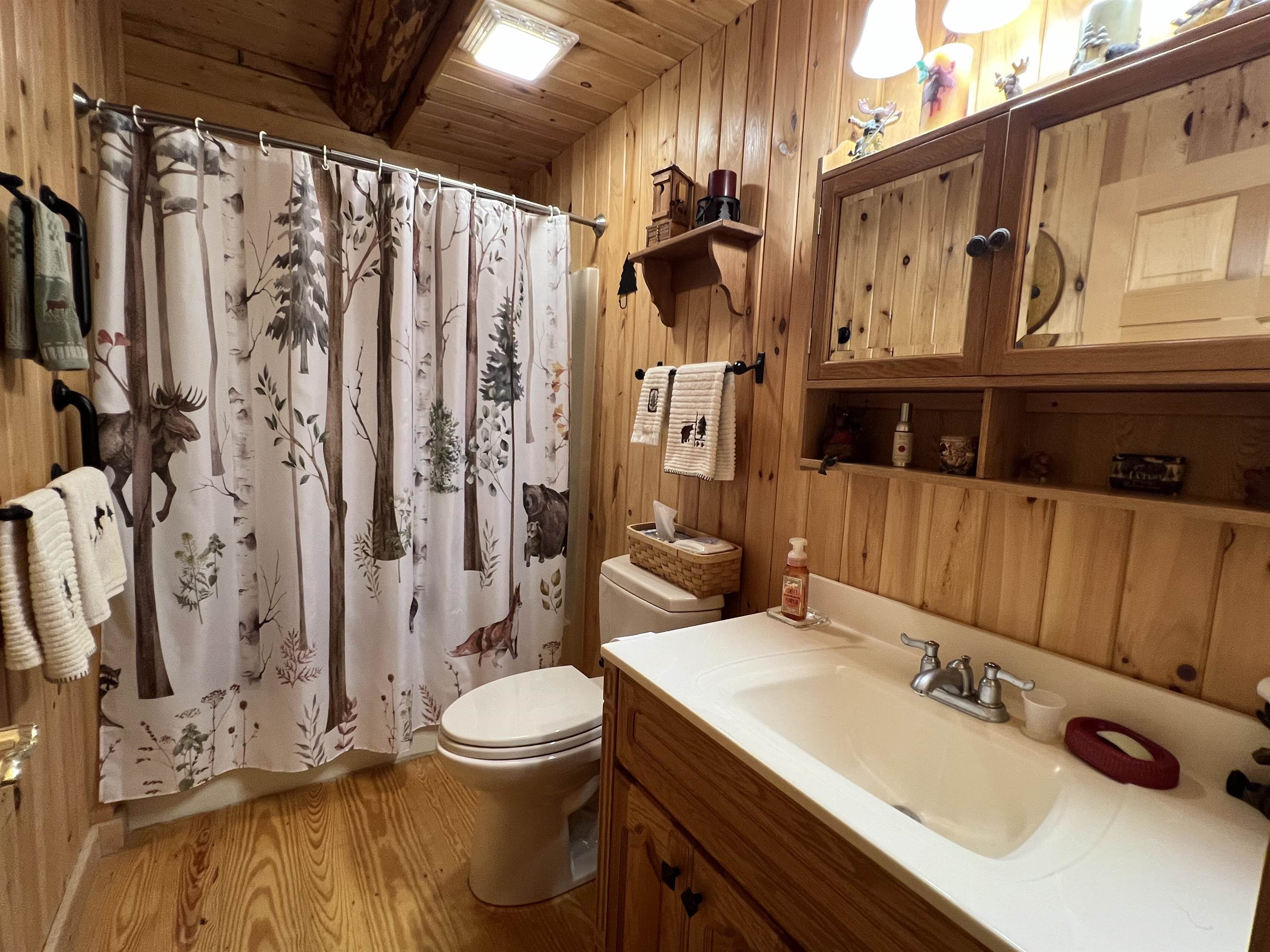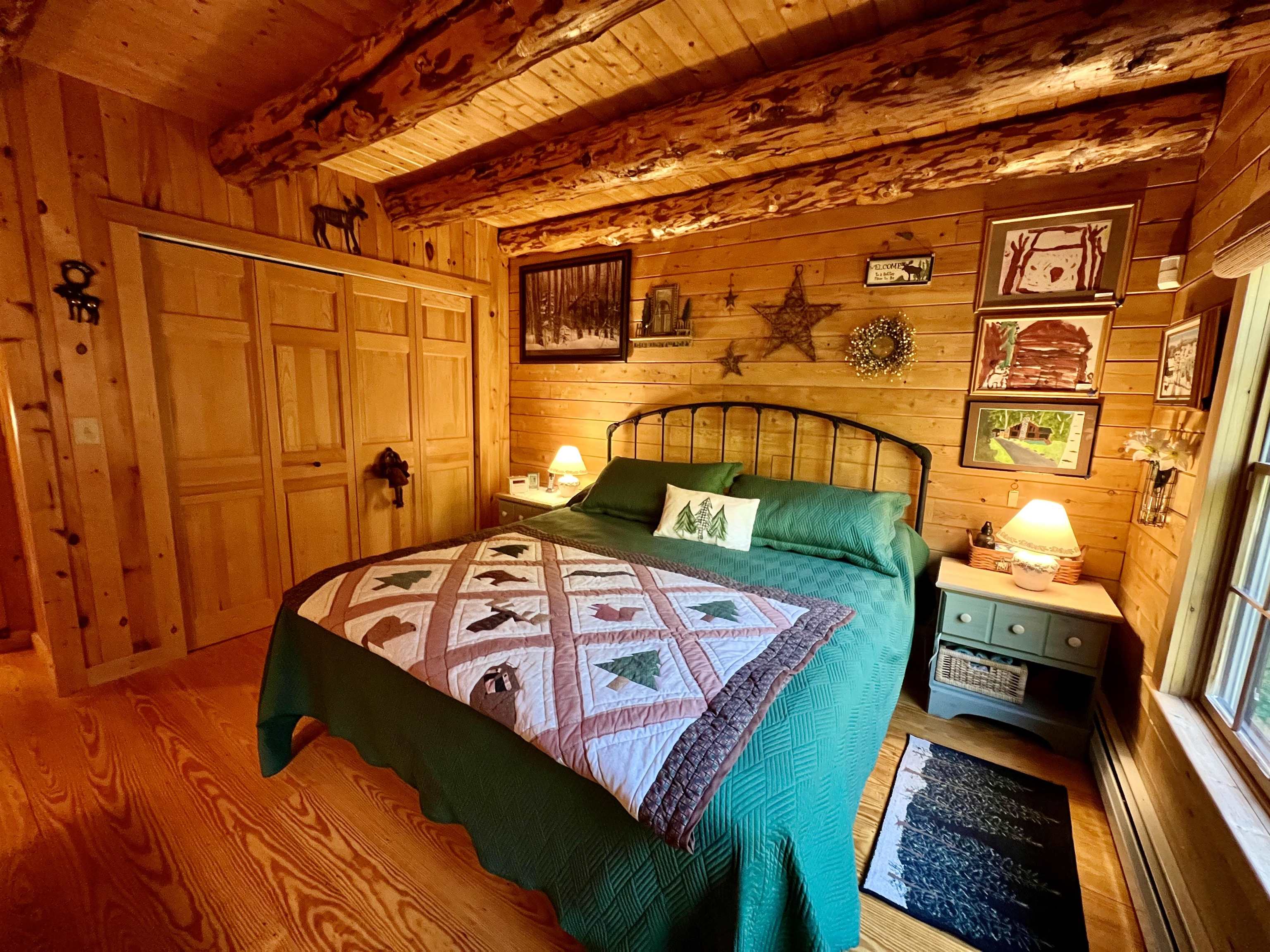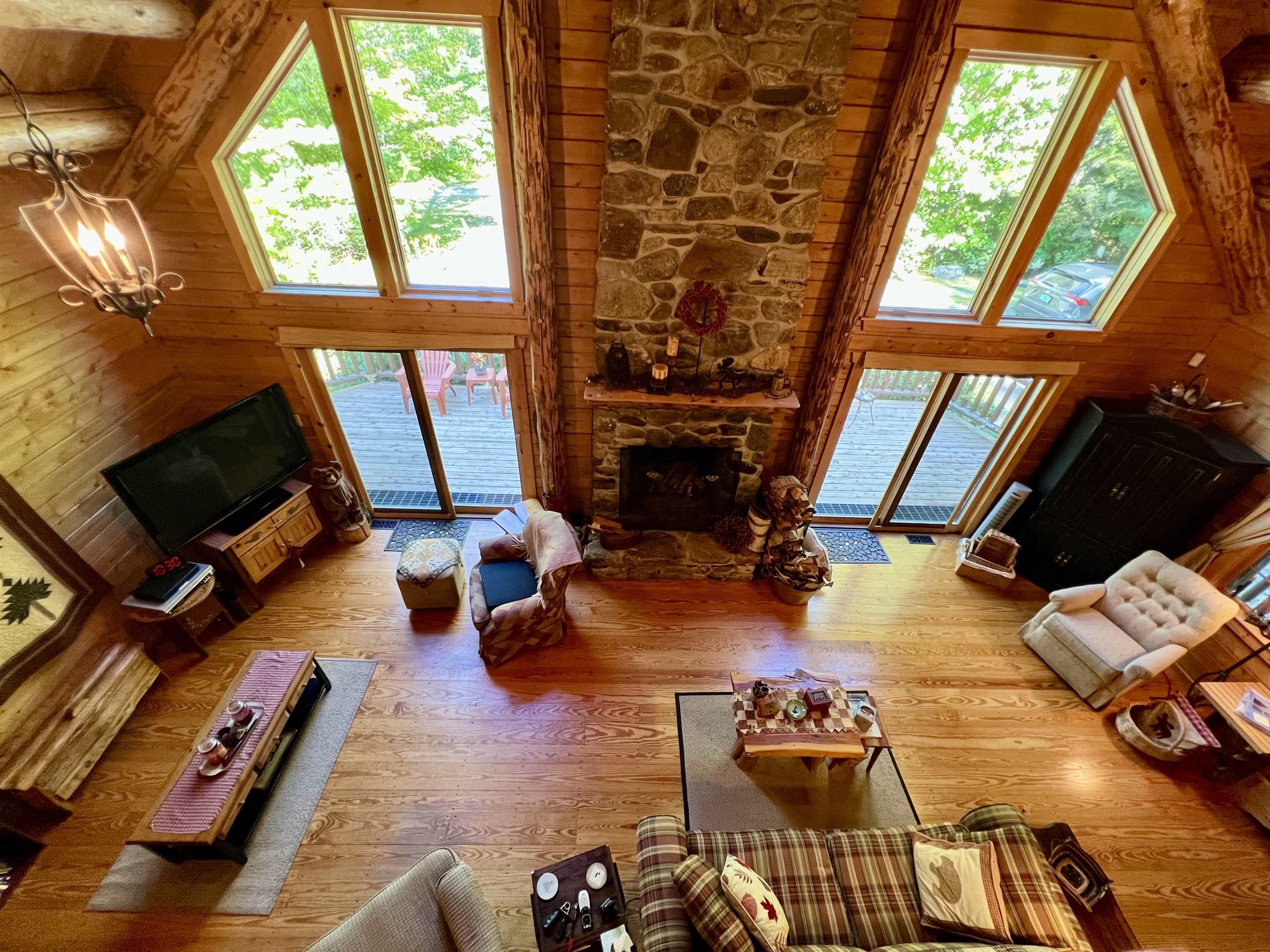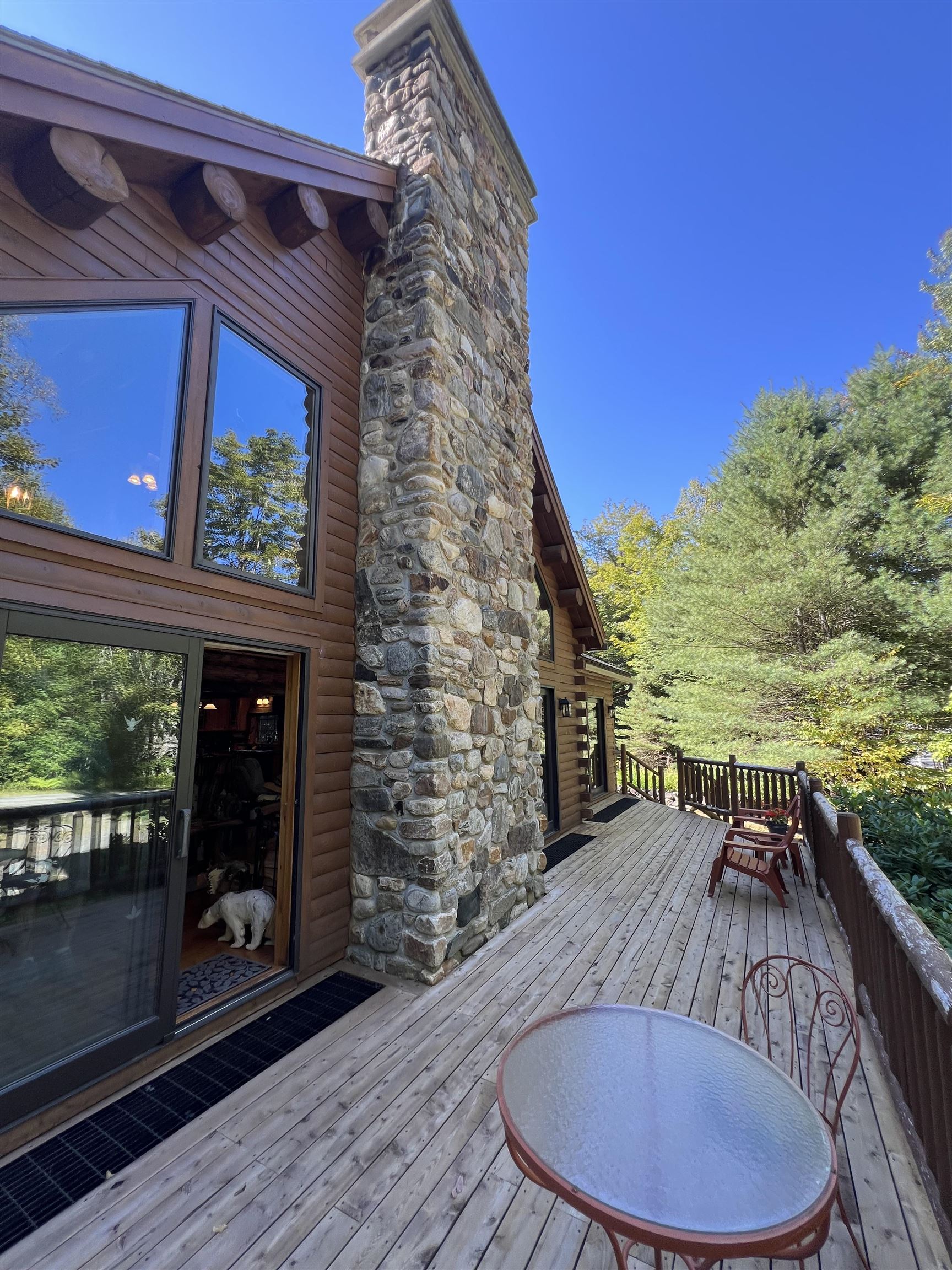 Nestled in the heart of Vermont’s Green Mountains, check out this stunning Moosehead log home. With private, shared access to Lake Raponda just a short walk away, this inviting single-family home seamlessly blends rustic charm, modern comfort, and a serene natural setting. With 2, 170 sq. ft. of living space, this 3-bedroom, 2-bath home welcomes you with warmth and tranquility from the moment you arrive. Park your car in the attached garage and step inside to find a country kitchen with lots of cabinets that opens into a comfortable great room with a dramatic, wood burning, stone fireplace. The spacious great room features a dramatic cathedral ceiling and leads directly to a glassed-in porch / dining area—an ideal spot to enjoy morning coffee or simply unwind while taking in the view of the landscaped yard and surrounding trees. There are 2 bedrooms conveniently located on the main level, with the primary, ensuite bedroom on the upper level next to a sleeping loft. Large windows throughout ensure that every corner of this home feels bright and inviting, enhanced by tasteful log interior finishes that echo the natural beauty outside. One of the home’s most enticing features is its move-in readiness—the sellers are leaving most of the furnishings , a fully outfitted kitchen, and a couple of kayaks for the lake so you can settle right in and begin enjoying the Vermont lifestyle in front of the fireplace, on the deck, on the stone patio, or on the lake!