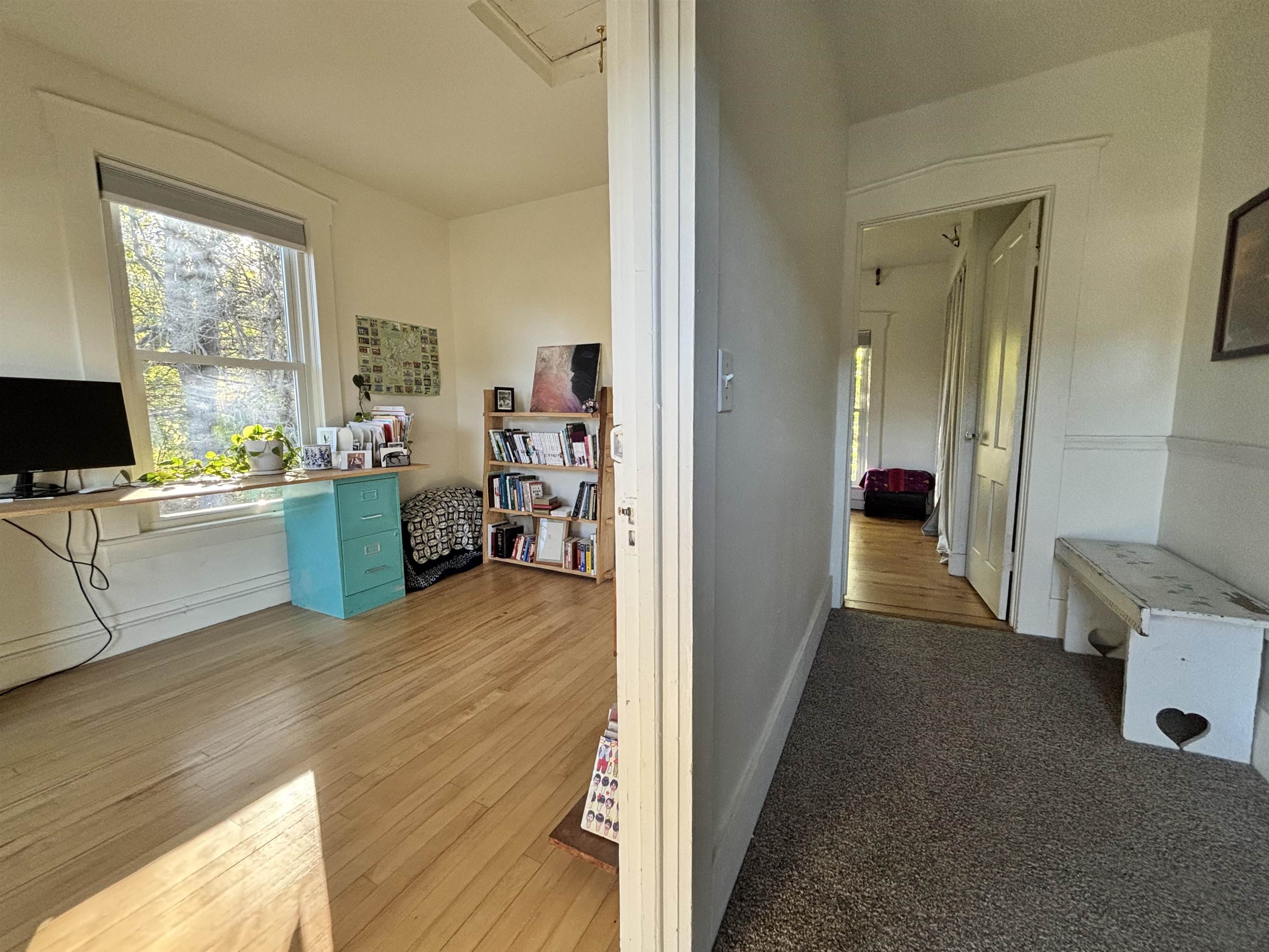 Truly a Charming Village Home in the heart of West Rutland with 4 Bedrooms, 1 full Bath, a large family room, enclosed porch, a producing sunlit garden space and an easy access flowing footprint. Located just a short walk from the West Rutland School, the town offices, public library, grocery, popular birding and hiking trails... This 8-room residence is warm, welcoming, and thoughtfully updated, set atop a durable marble block foundation. The entire home with newer windows and shades, wood floors, and a wood stove making for a cozy family room in the colder months. Recent upgrades include a EV Charger 200 Amp service, new water heater, oil tank, knob & tube remediation. Enjoy this good-sized backyard with an old barn ideal for storage or creative repurposing. West Rutland is a hidden gem, home to the renowned Carving & Sculpture Studio and the West Rutland Recreational Center along the Clarendon River. Enjoy close proximity to numerous ski areas, local parades, farmers markets, and vibrant local arts, making this home an ideal blend of village life and Vermont outdoor culture. Sale is contingent upon Seller finding suitable housing. The family's dog is "Mo" : )