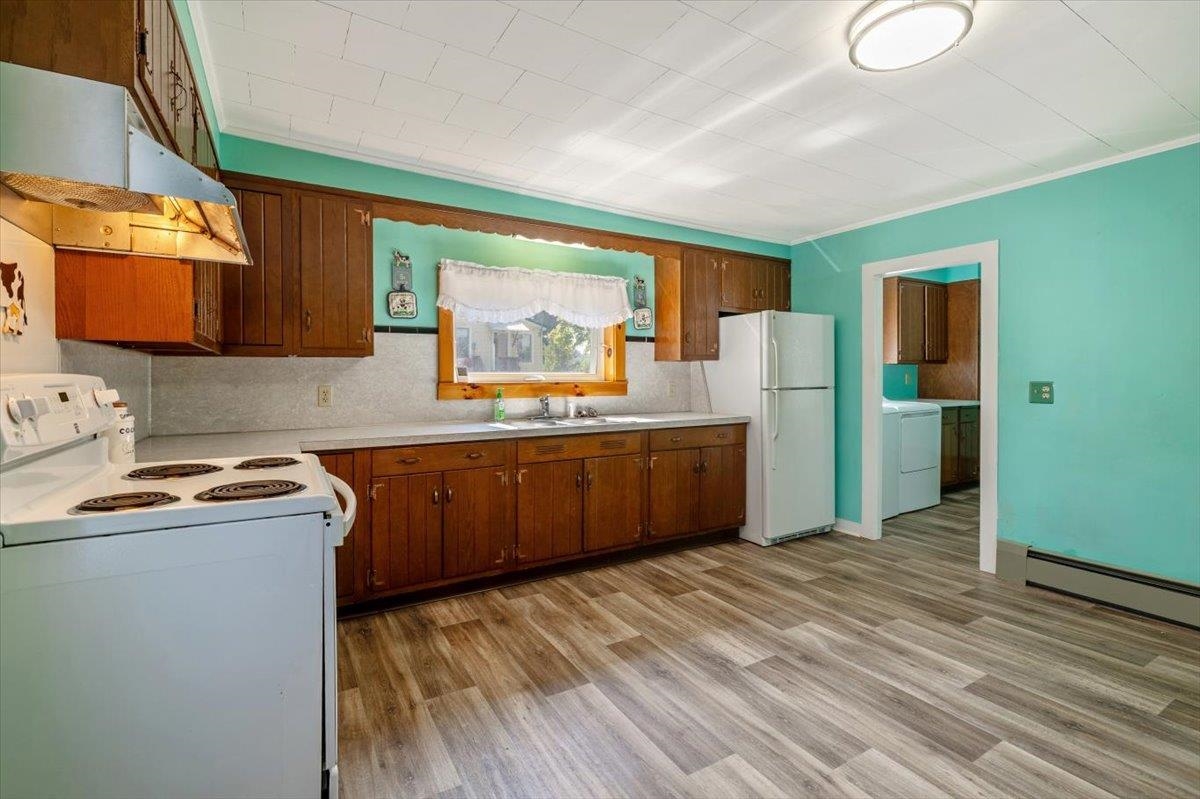 Located in the heart of Franklin, Vermont, this charming farmhouse offers over 2, 000 square feet of living space, combining classic farmhouse character with modern updates. With 3+ bedrooms and an updated bathroom, this home provides plenty of room to grow, along with beautiful hardwood floors and a lovely farmhouse kitchen perfect for family gatherings.The versatile layout includes a large attached barn-like structure ideal for storage or a variety of uses, and a detached garage with plenty of room for all of your toys. At the back of the lot, a sugar house with power adds unique potential for hobbies or extra storage. Set on a usable, level lot, the home is meticulously maintained, complete with a charming covered back porch where you can relax and enjoy the surrounding scenery. The property is within walking distance of the renowned Franklin General Store and just a short drive to Lake Carmi. Enjoy the best of rural living with affordability and low taxes. The highly rated Franklin Elementary School is nearby, and with St. Albans just 25 minutes away and Enosburg 15 minutes away, shopping and amenities are within easy reach. This beautifully maintained home offers a perfect blend of comfort, space, and convenience.