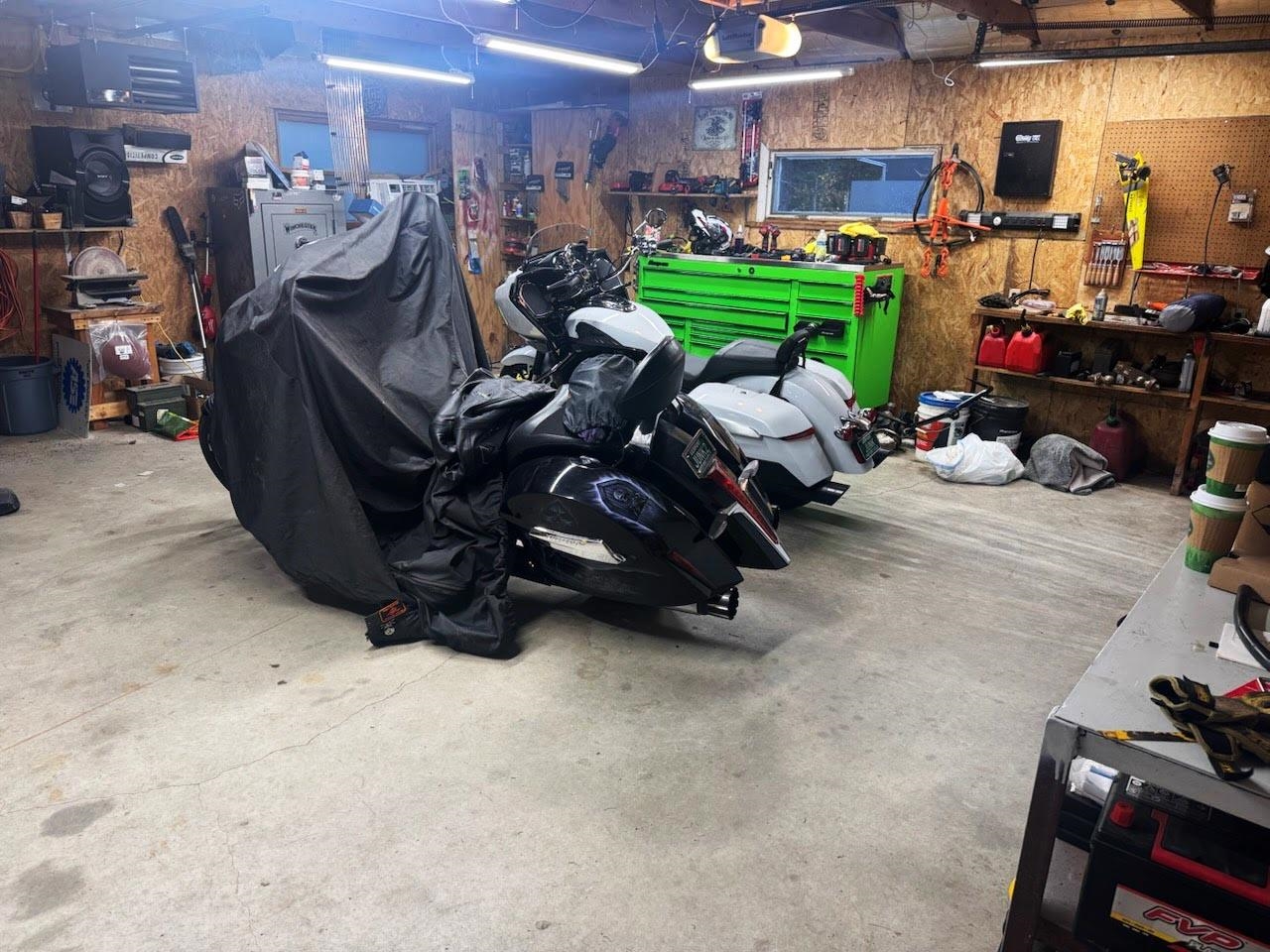 Post-and-beam beauty on 2.85 acres blends rustic country charm with modern upgrades. Entryway lined with maple, lilac, apple, & oak trees, and the freshly landscaped yard leads to a welcoming covered porch. Inside, tongue-and-groove pine walls and cathedral ceilings create a warm, natural feel. Kitchen features a butcher block island, new sink, and new dishwasher. Open living space includes a cozy wood stove and half bath. Spacious primary bedroom offers a walk-in closet and en-suite bath with double sinks & refinished countertop. New luxury vinyl floors throughout. Heated basement offers more than 860 square feet of untapped potential, with walk-up egress to side yard, storage, laundry nook with workspace, den, new propane furnace, & finished rec room. Per owner - septic system is sized to support converting the basement rec room into a 2nd bedroom with proper window update. Smart Nest thermostats with separate zones for each level and smart lock entry doors. Enjoy evergreens, fenced garden, and newly expanded back deck overlooking lush acreage. Outbuildings include a climate controlled garage and a pole barn/workshop with horse stall and hobby space. Upgrades: solar-lit driveway, handicap-accessible ramp, seamless gutters, and frost-free exterior spigots. Bordering woods for privacy. Near ATV/snowmobile trails and fishing at Lamoille River. Easy commute to Burlington, Cambridge, Smugglers’ Notch, and VT State University Johnson. Furnishings negotiable for a turn-key option.
