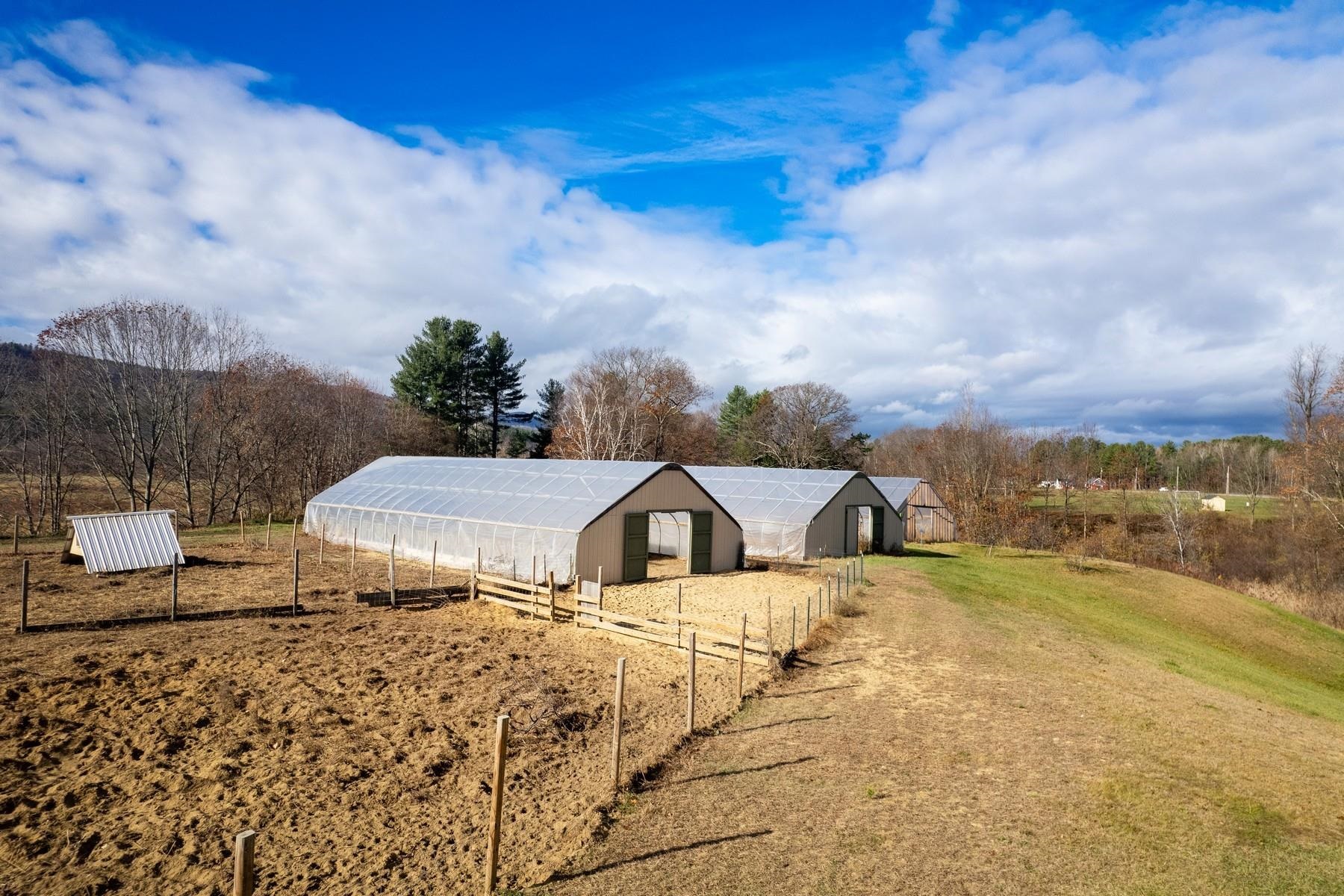 So many options.. An 18 Acre property bordering Protected Lands with potential future home site (s) overlooking the wetlands and mountains beyond. Several updated and improved Barns and an enormous Heated Garage for auto detailing, car collections rv/boat storage, landscaping equipment or a myriad of other uses. Spacious Farmhouse for multi-generational living or income with up to 4 apartments. A haven for fruit lovers, featuring approx. 60 fruit trees -including apple, peach, plum, cherry, and pear—along w/ 300 blueberry bushes, black raspberries, strawberries, and wild berries. The property is equipped w/ three 30x72-foot high tunnels, versatile for vegetable production, pig farrowing, or chicken runs. Multiple Barns and Poultry Houses are ready to support raising hogs, chickens, and turkeys. The large event Barn serves as a stunning venue for weddings, parties, farm-to-table dinners, and seasonal or year-round storage. This Barn also houses the pump system for the well that feeds a Frost-Free Irrigation System w/ Five Hydrants strategically placed near the gardens, pig yard and barn. Conveniently located power sources and motion-activated lights add functionality and ease of use. Commercial kitchen and classroom space are designed for Agriculture Programs or pre-order Market, Cooking Classes making this property an opportunity to live, farm and engage with the community. Turn Key Opportunity! (zoning approval may be required for some uses mentioned above)