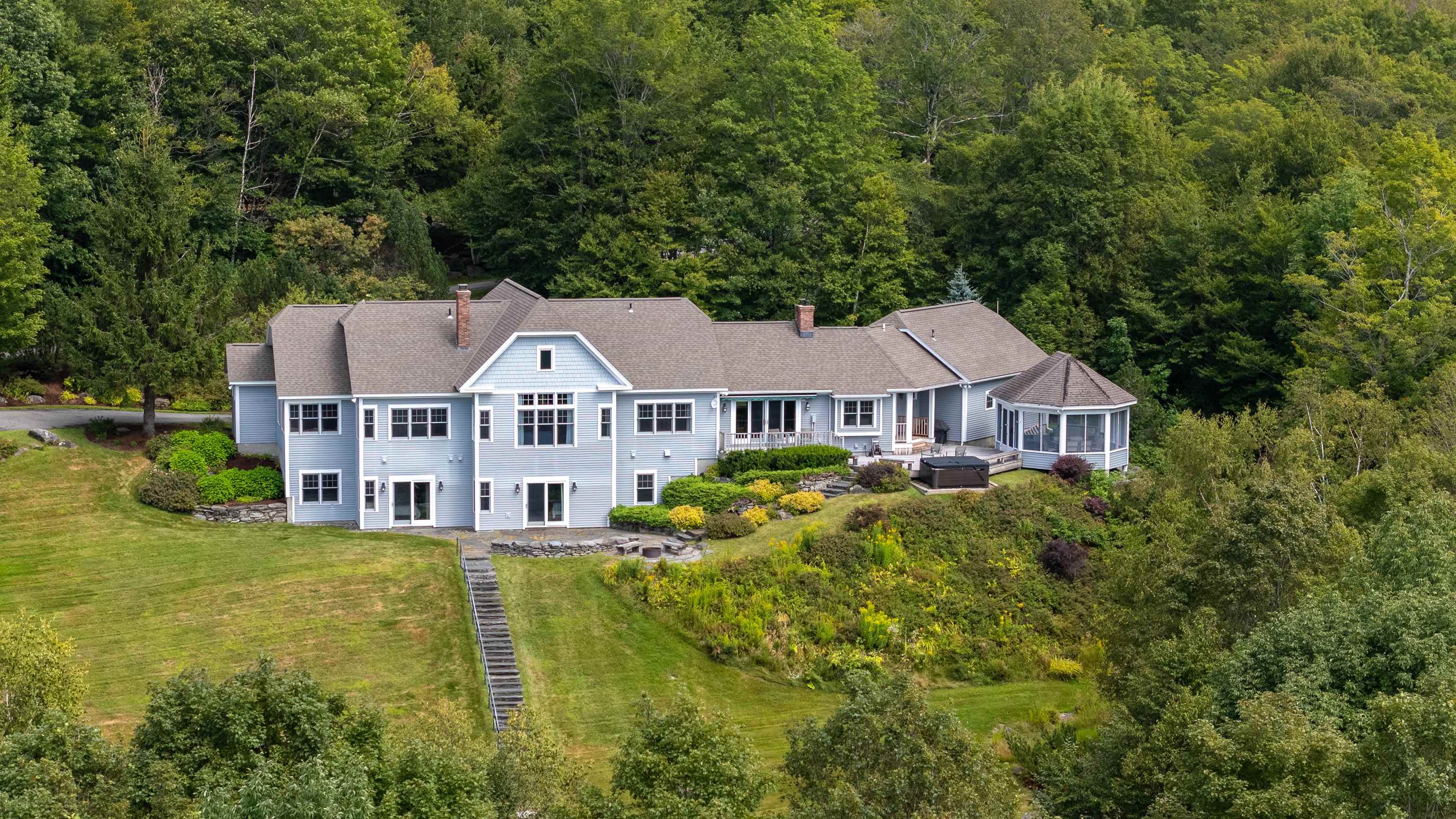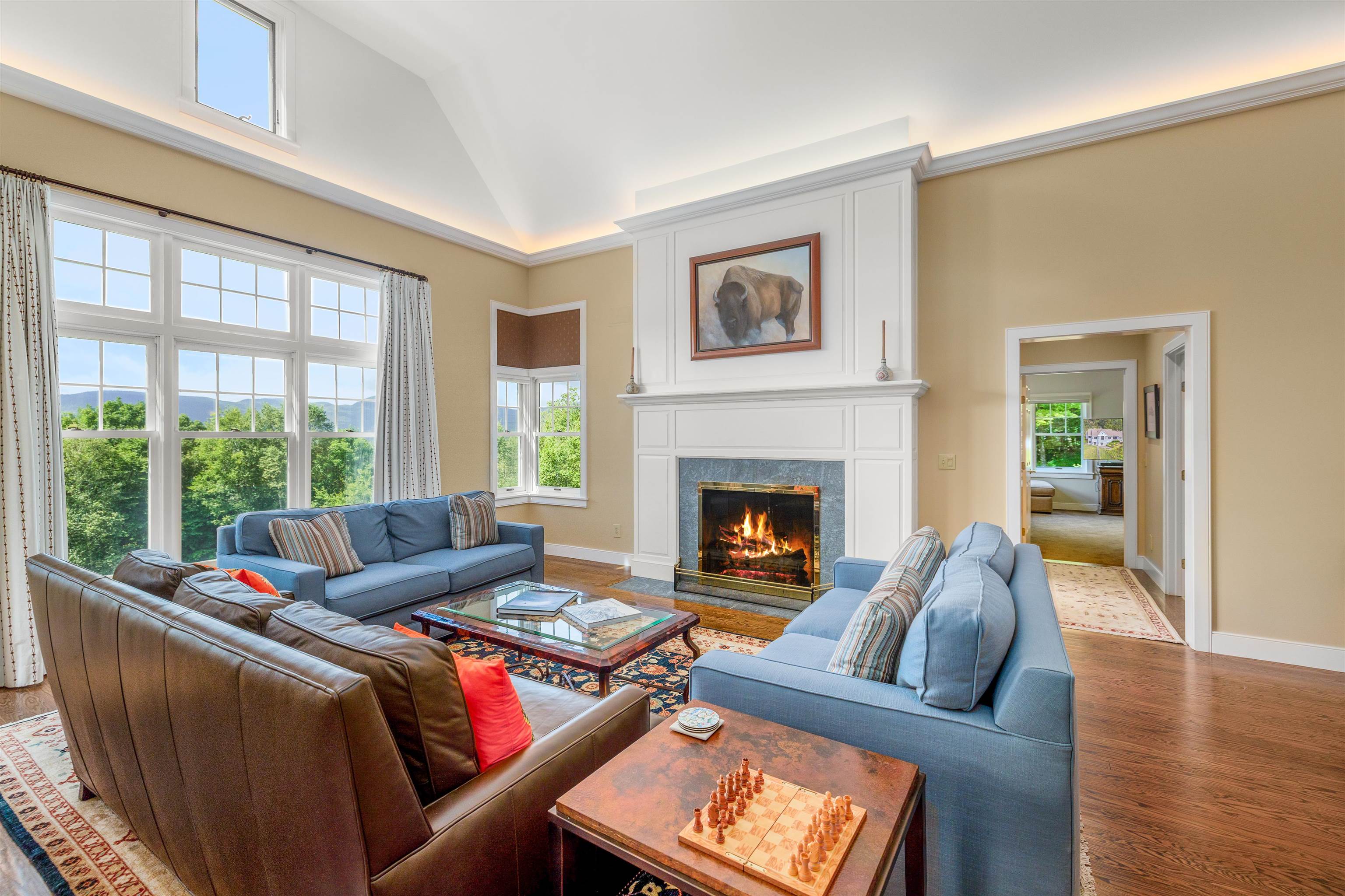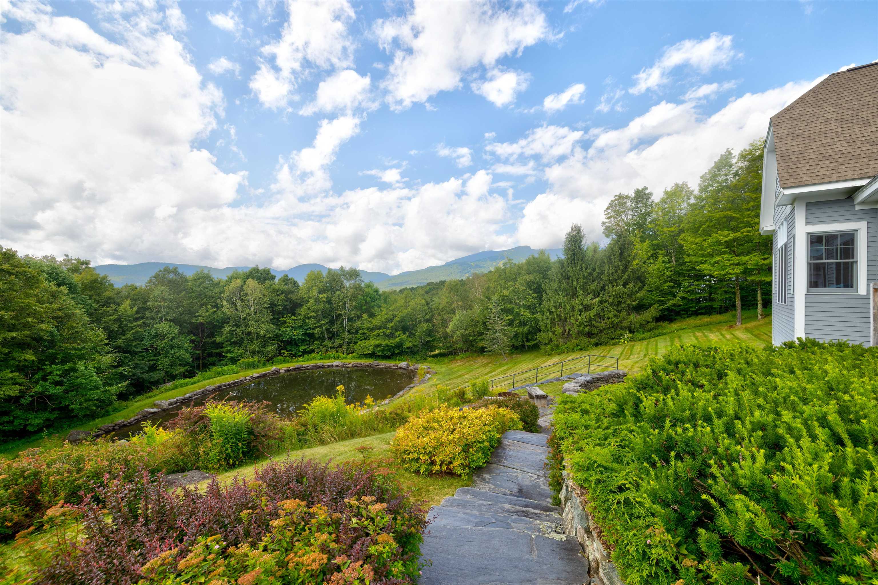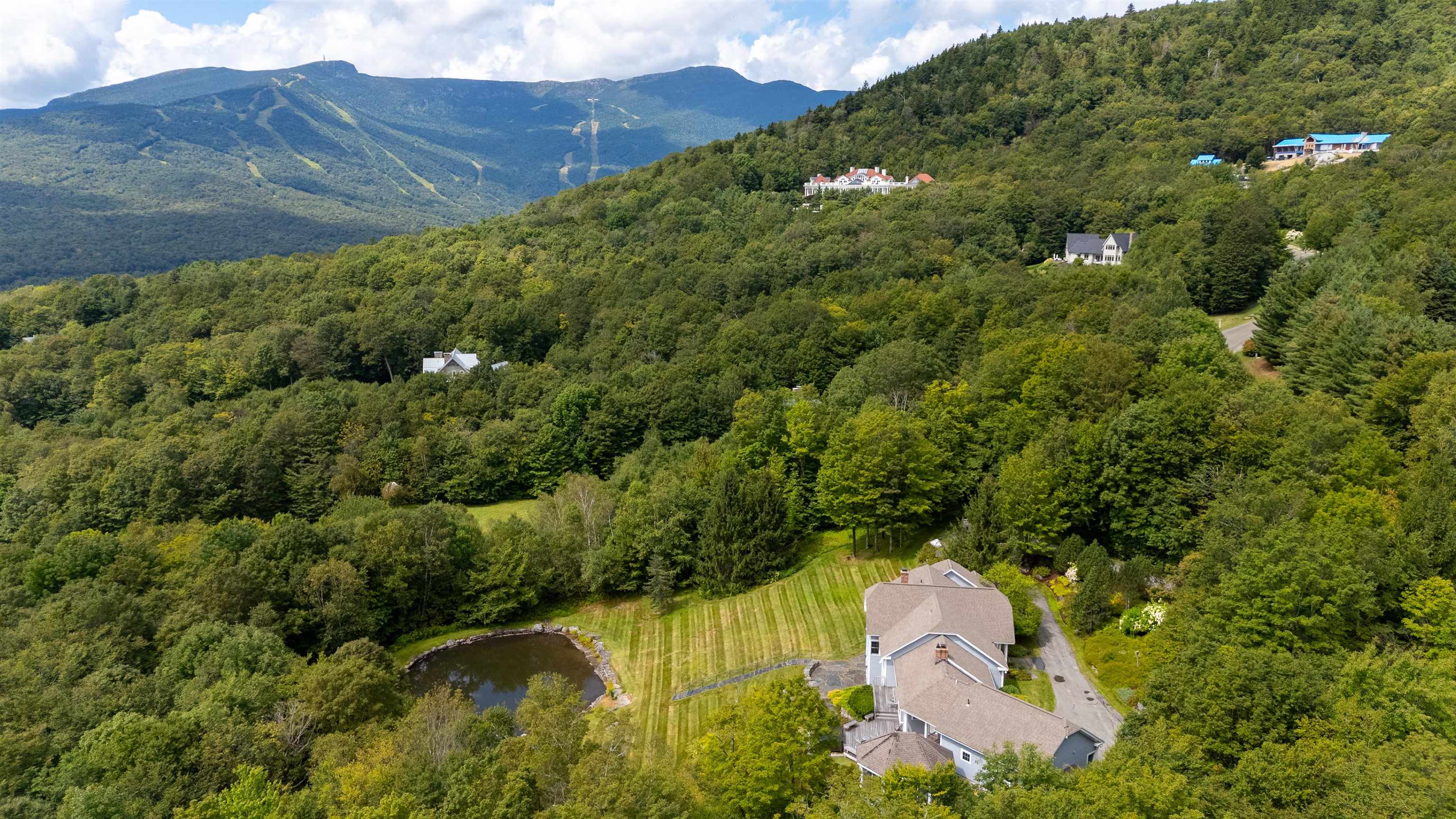 An unparalleled mountain retreat in Stowe, Vermont. Perched on 9+ acres in Robinson Springs, one of Stowe's most sought-after and exclusive neighborhoods, this contemporary residence offers a timeless aesthetic. The property is a quintessential Vermont sanctuary, featuring a private pond, classic New England style, and stunning, sweeping mountain views. The home's highly versatile floor plan is designed for both elegant entertaining and relaxed daily living. The main level features a sophisticated layout, including a formal living room with a Rumsford fireplace and a formal dining room. An inviting family room also boasts a Rumsford fireplace that seamlessly flows into the open-concept kitchen. A highlight of the first floor is the private primary suite, which includes a dedicated office and offers direct views of the ski trails on Mount Mansfield. The walk-out lower level, completely above grade, boasts three additional bedrooms, three full bathrooms, and a bonus room. A prime location with four-season access, not just a home, but a lifestyle, thanks to its exceptional proximity to Stowe's world-class amenities. Located just minutes from Stowe Mountain Resort, minutes to premier alpine skiing, snowboarding, and the year-round activities at Spruce Peak. Beyond the resort, the town of Stowe is a destination for every season, offering a network of hiking and biking trails, a recreation path, and a charming village.