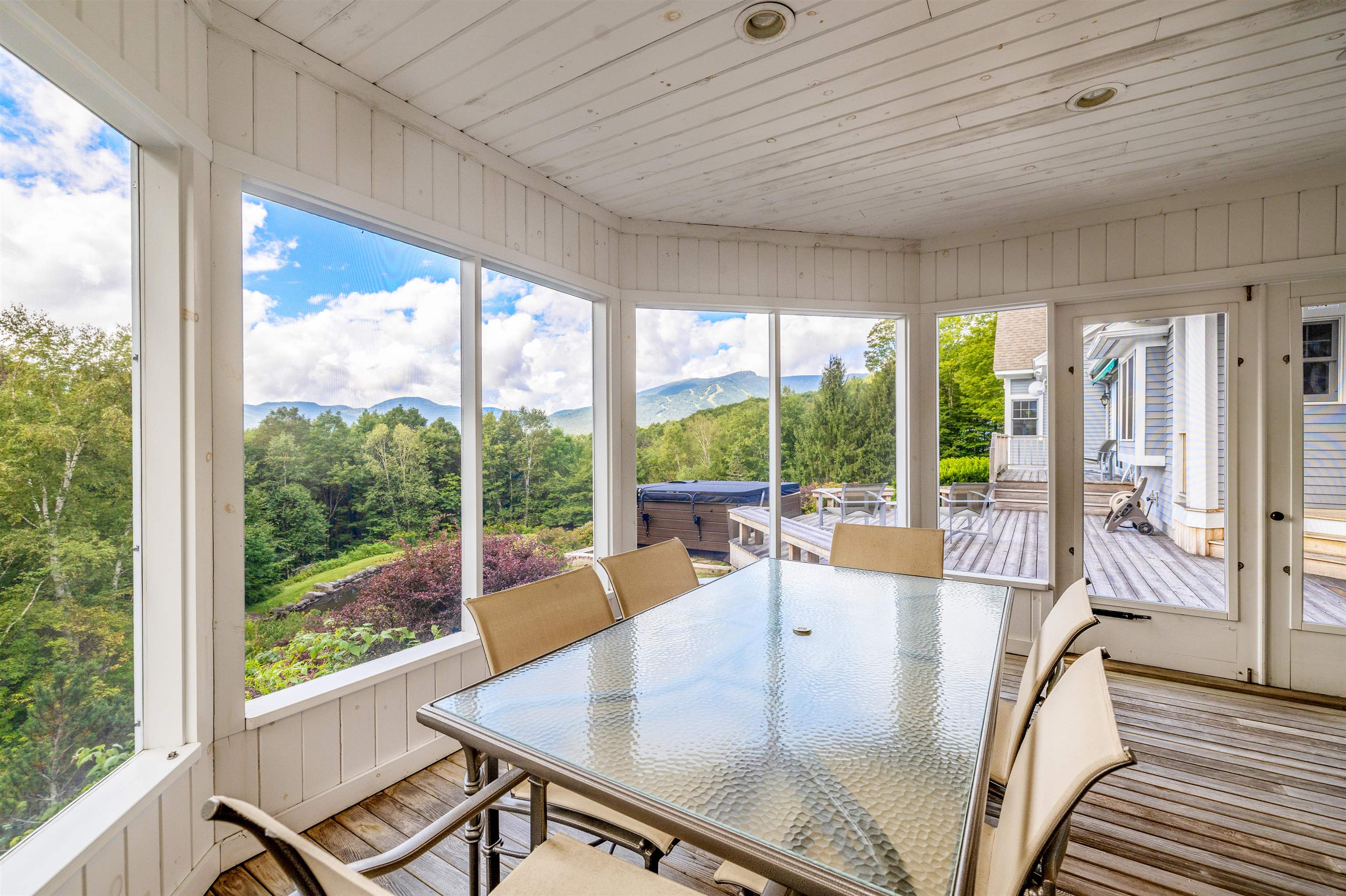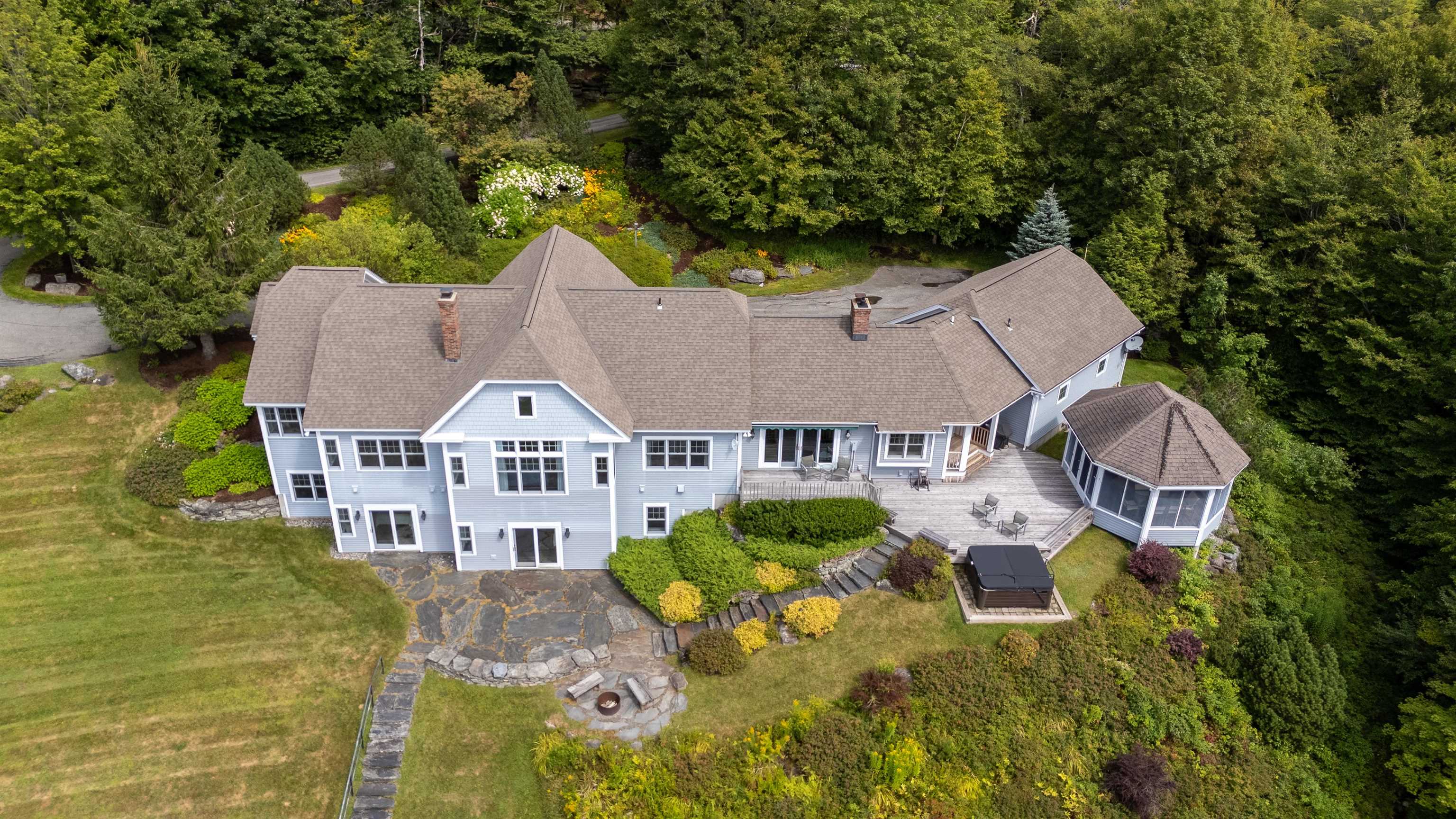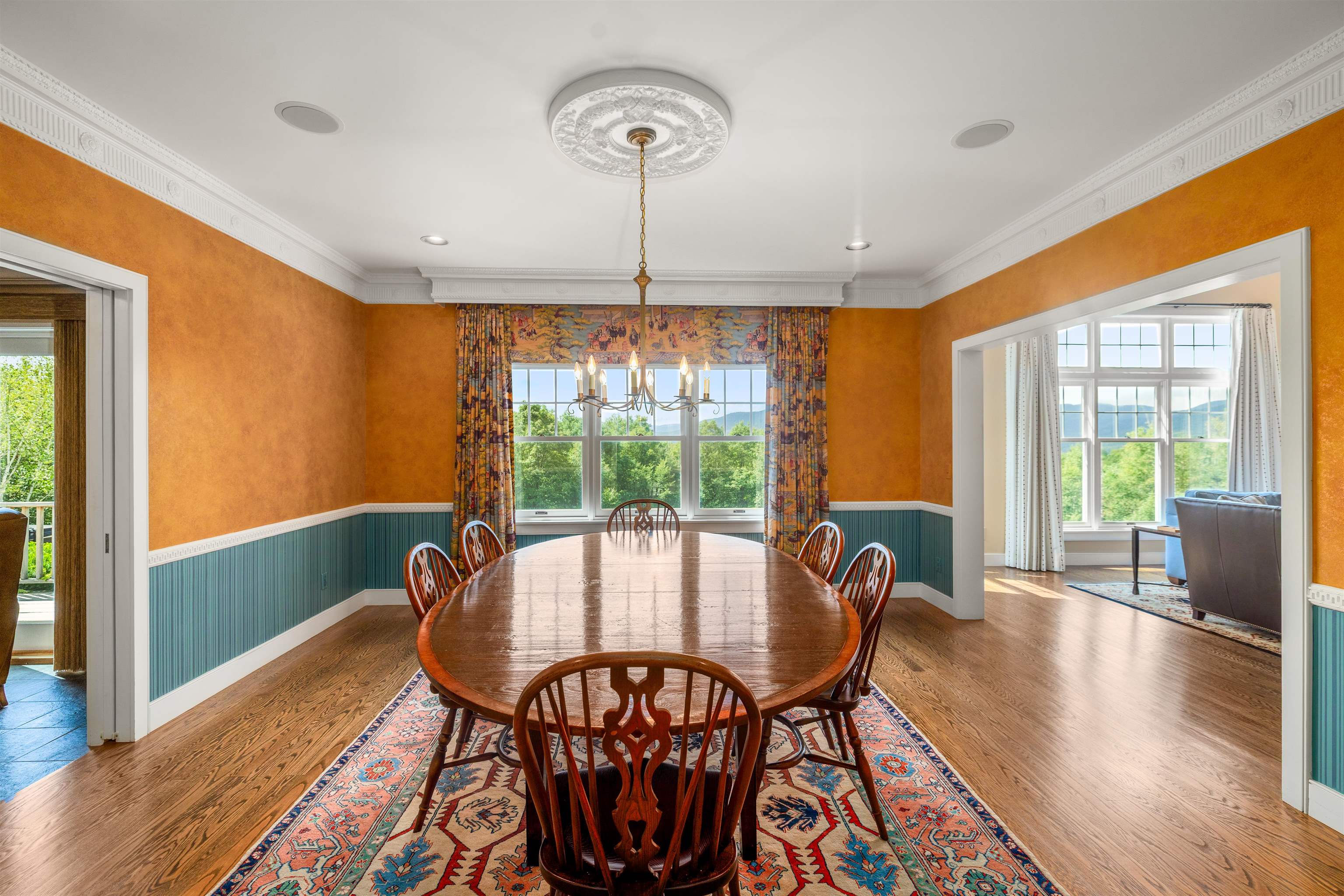 An unparalleled mountain retreat in Stowe, Vermont. Perched on 9+ acres in Robinson Springs, one of Stowe's most sought-after and exclusive neighborhoods, this contemporary residence offers a timeless aesthetic. The property is a quintessential Vermont sanctuary, featuring a private pond, classic New England style, and stunning, sweeping mountain views. The home's highly versatile floor plan is designed for both elegant entertaining and relaxed daily living. The main level features a sophisticated layout, including a formal living room with a Rumsford fireplace and a formal dining room. An inviting family room also boasts a Rumsford fireplace that seamlessly flows into the open-concept kitchen. A highlight of the first floor is the private primary suite, which includes a dedicated office and offers direct views of the ski trails on Mount Mansfield. The walk-out lower level, completely above grade, boasts three additional bedrooms, three full bathrooms, and a bonus room. A prime location with four-season access, not just a home, but a lifestyle, thanks to its exceptional proximity to Stowe's world-class amenities. Located just minutes from Stowe Mountain Resort, minutes to premier alpine skiing, snowboarding, and the year-round activities at Spruce Peak. Beyond the resort, the town of Stowe is a destination for every season, offering a network of hiking and biking trails, a recreation path, and a charming village.