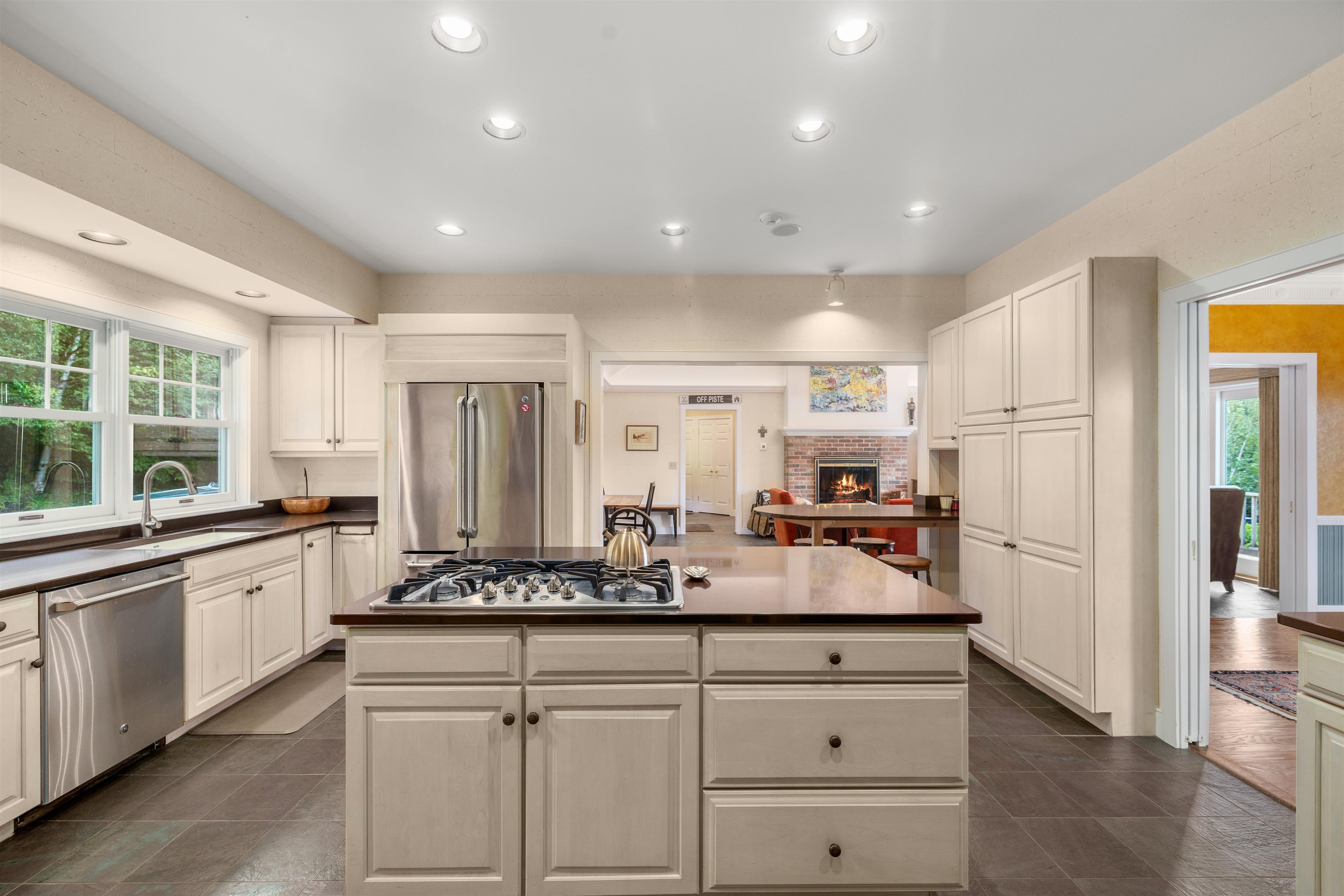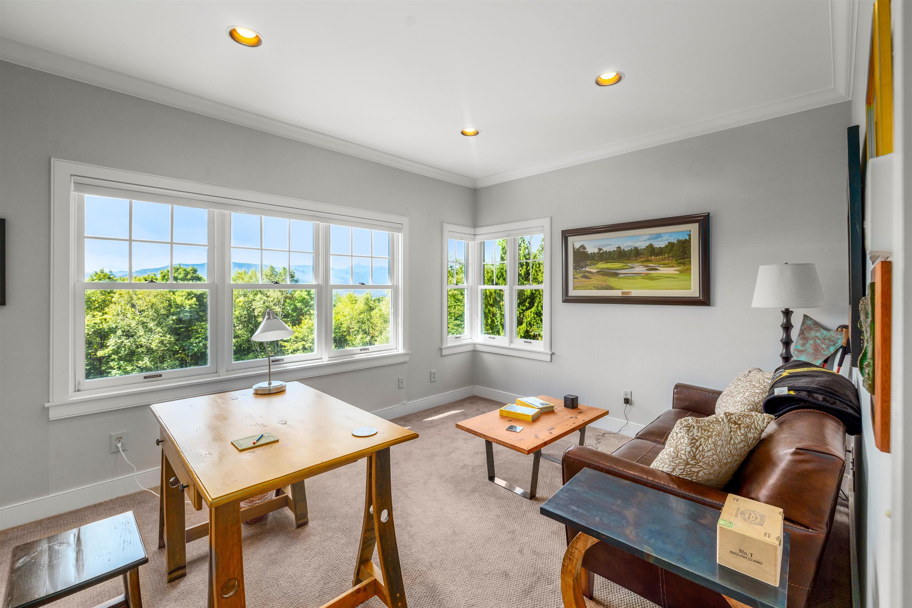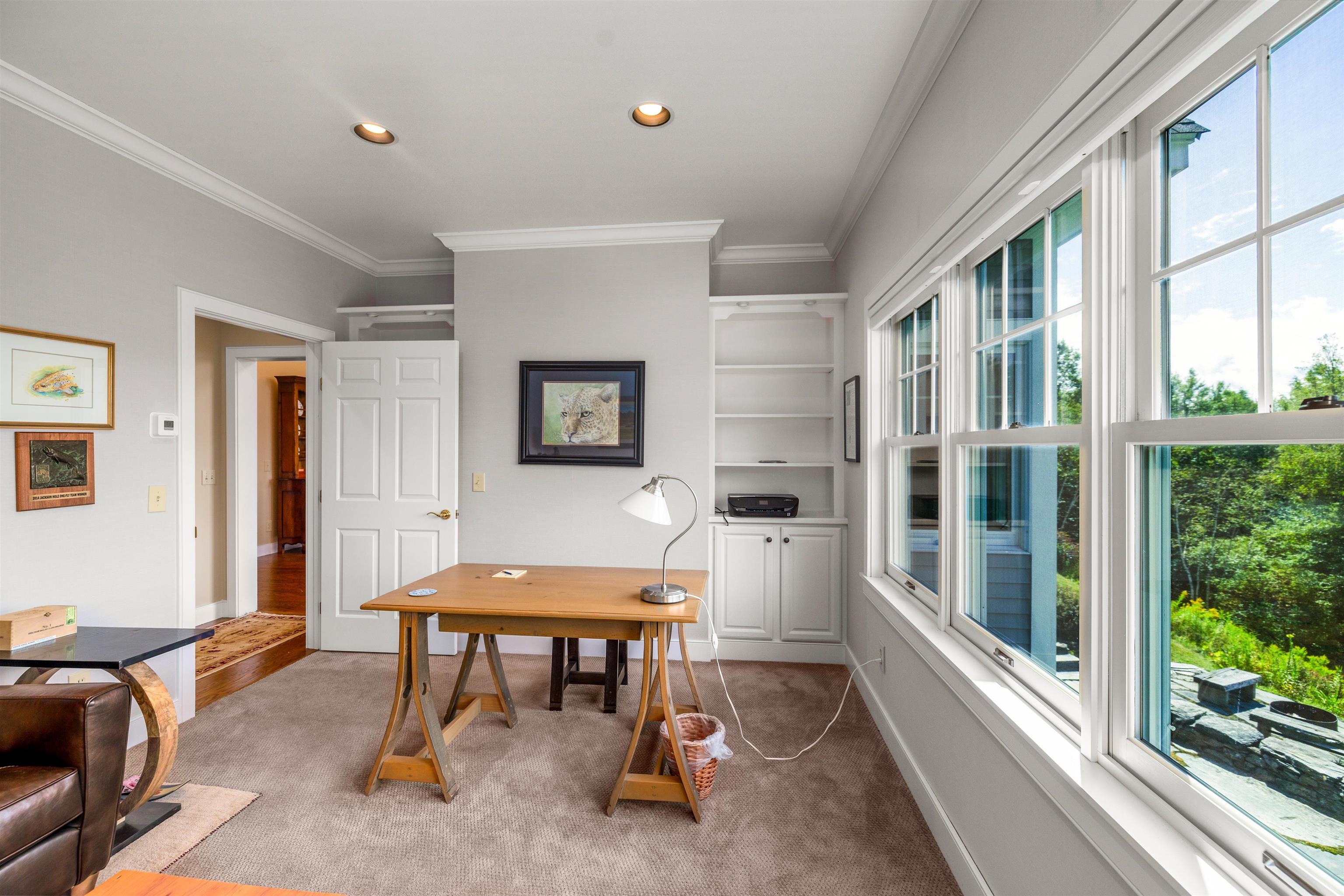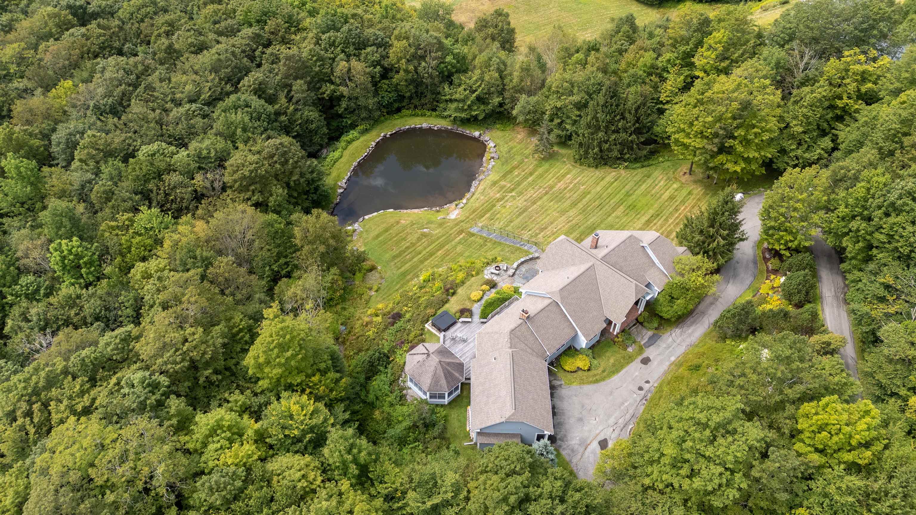 An unparalleled mountain retreat in Stowe, Vermont. Perched on 9+ acres in Robinson Springs, one of Stowe's most sought-after and exclusive neighborhoods, this contemporary residence offers a timeless aesthetic. The property is a quintessential Vermont sanctuary, featuring a private pond, classic New England style, and stunning, sweeping mountain views. The home's highly versatile floor plan is designed for both elegant entertaining and relaxed daily living. The main level features a sophisticated layout, including a formal living room with a Rumsford fireplace and a formal dining room. An inviting family room also boasts a Rumsford fireplace that seamlessly flows into the open-concept kitchen. A highlight of the first floor is the private primary suite, which includes a dedicated office and offers direct views of the ski trails on Mount Mansfield. The walk-out lower level, completely above grade, boasts three additional bedrooms, three full bathrooms, and a bonus room. A prime location with four-season access, not just a home, but a lifestyle, thanks to its exceptional proximity to Stowe's world-class amenities. Located just minutes from Stowe Mountain Resort, minutes to premier alpine skiing, snowboarding, and the year-round activities at Spruce Peak. Beyond the resort, the town of Stowe is a destination for every season, offering a network of hiking and biking trails, a recreation path, and a charming village.