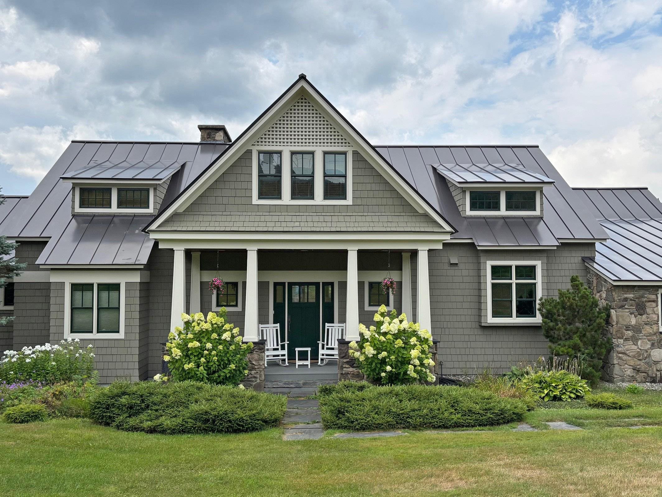 Wake up to panoramic views of VT’s Green Mountains in this beautifully crafted custom home. Designed for both comfort and style, the open kitchen, dining, and living area is the heart of the home anchored by a stunning stone fireplace, dramatic cathedral ceiling, and expansive windows that fill the space with natural light.The gourmet kitchen is a chef’s dream, featuring granite counters, gas cooktop, double ovens, and a spacious layout. A well-appointed butler’s pantry adds more convenience, with a 2nd dishwasher, sink, and wine cooler. The main level offers a serene primary suite with vaulted ceiling, cozy window bench, and dual walk-in closets. Also on the main floor: a charming home office/library with stone fireplace, two additional bedrooms with a full bath, powder rm, laundry rm, and a welcoming entry with generous closet space. Upstairs, a large open loft serves as a 2nd family rm along with 2 more ensuite bedrooms perfect for guests. Enjoy outdoor living at its best with both an open deck and screened porch with stunning western sunset views. The oversized two-car garage includes a workshop area and an expansive second-floor space, ready to be customized for your needs. Set on 10.8 acres the property includes beautiful open meadowland, brook frontage, a paved circular driveway for easy access. A 14KW whole-house generator offers peace of mind year round. Dont miss the opportunity to own this exceptional property in one of the Valley's most sought after locations.