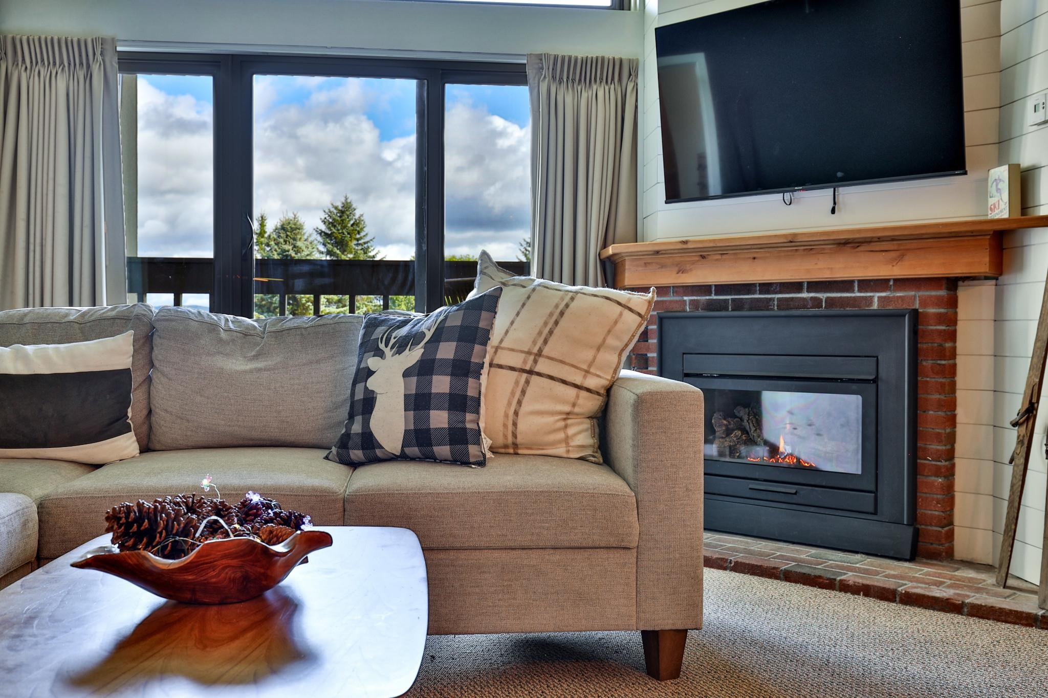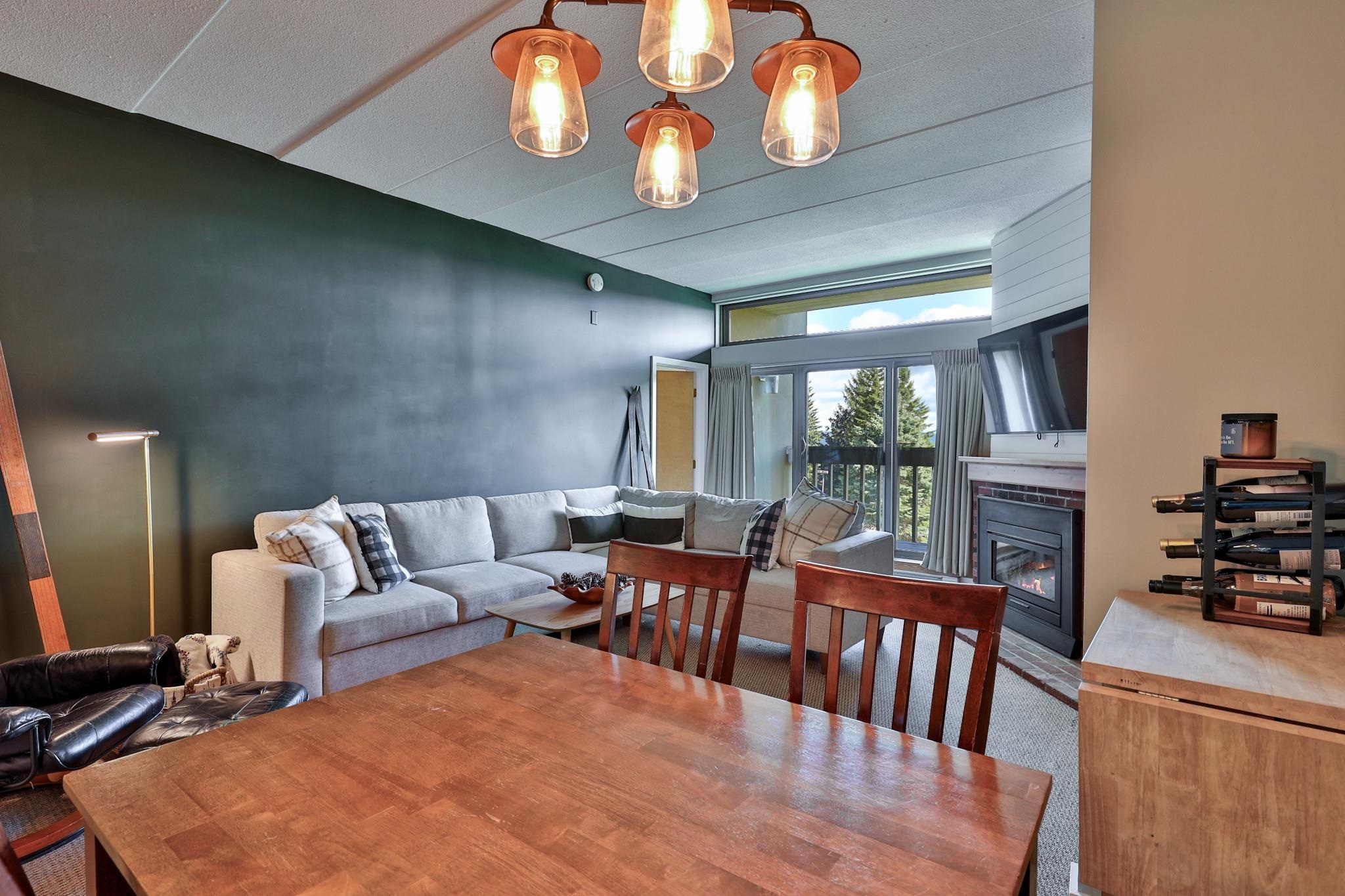 This beautifully furnished, one-level Pinnacle condominium is the ultimate mountain retreat, blending alpine charm with modern comfort. Unique to the garden-level A-building units, soaring ceilings and transom windows in the kitchen and living area fill the space with natural light and create an inviting, airy atmosphere. The open floor plan offers a perfect gathering space year-round—whether you’re cozying up by the fireplace after a day on the slopes or soaking in the long-range mountain views from your private balcony in summer. Two full bedroom suites provide privacy and comfort for owners and guests alike while a sleep sofa in the living room can accommodate extra guests. Pinnacle offers fantastic amenities, including summer tennis, an outdoor pool and hot tub, plus an activity center with games and fitness equipment. Even more luxury is on the horizon with the soon-to-be-completed Pinnacle Spa, featuring a soaking pool, private hot tub room, sauna, steam room, and a stylish lounge with bar service. Offered fully furnished and equipped, this turnkey condo is just minutes from Killington Resort and the future Killington Village, with daily winter shuttle service right to the slopes. Whether you’re searching for a cozy mountain escape or a solid investment property, this stylish condo delivers it all. Call today for a private showing.