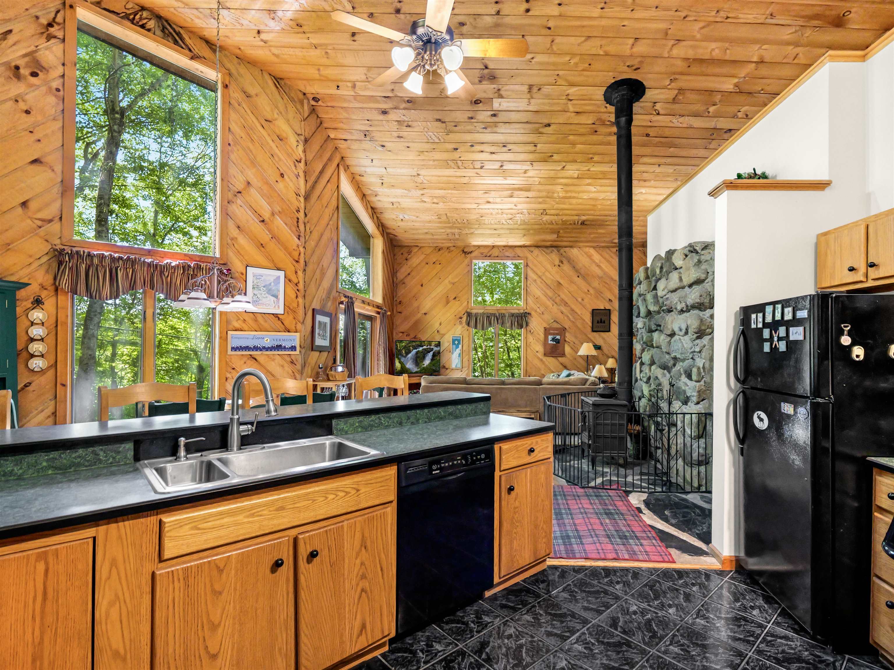 Enjoy this beautifully maintained 4-bedroom, 2 full-bath, and 1 three-quarter bath home, offering comfortable one-level living with a versatile loft space. The spacious interior features soaring cathedral ceilings that open into the main living area, creating an airy and inviting atmosphere. Situated in a private, wooded setting, this home provides a peaceful retreat close to outdoor recreation. It’s conveniently located just a short drive from Pico and Killington ski resorts, with close proximity to the Chittenden Reservoir for summer and winter activities. Plus, nearby snowmobile trails offer additional outdoor adventure options. Shopping for the basic essentials is also easily accessible. A perfect blend of nature, convenience, and comfortable living!