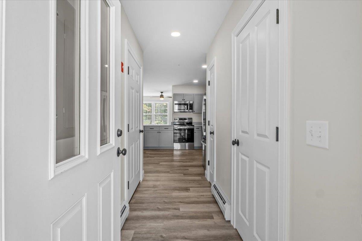 Welcome to Unit #102 at Willys Lane, a brand-new 3 bedroom, 2.5 bath condo in a boutique community of just eight homes. Designed with comfort and convenience in mind, the first floor offers a bright and open layout with a stylish gray kitchen featuring quartz countertops, stainless steel appliances, and plenty of cabinet space. The spacious living area flows easily for entertaining or relaxing, while a convenient half bath completes the main level. Upstairs, three bedrooms include a private primary suite and two additional bedrooms with a full shared bath. Durable vinyl plank flooring runs throughout the first level, with plush carpet upstairs for a cozy feel. A private patio extends your living space outdoors, and the attached garage comes roughed in for EV charging. Even better, a washer and dryer are thoughtfully included — a rare perk in new construction. With energy-efficient systems and a location close to parks, shopping, and dining, Unit #102 blends style, practicality, and modern living in one exceptional package.