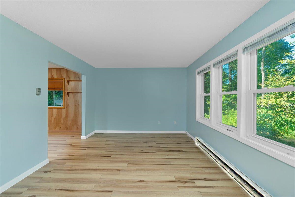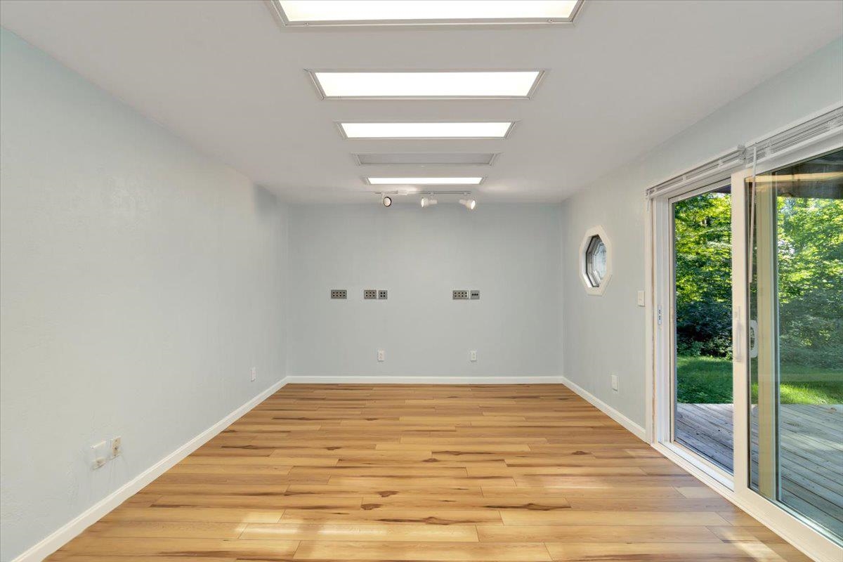 Beautifully updated Colchester home packed with features and upgrades on a spacious 1+ acre lot with direct access to the Colchester bike path and walking distance to Mallets Bay! The brand-new kitchen open to the dining room and main living areas showcases stainless steel appliances, solid-surface counters, a center island, and fresh cabinetry, while new LVP flooring extends throughout the home. A soundproofed media room with direct deck access affords flexible use as a first-floor bedroom with en suite bath access while a sunroom with walls of windows adds year-round living space surrounded by views of the shaded backyard. Upstairs, the primary suite includes a walk-in closet and shared en suite bath access, complemented by two additional bedrooms on this level. Meanwhile the finished basement provides extra living space with a cozy gas stove, perfect for the winter months, while the multi-tiered backyard decks offer plenty of outdoor living options in a private, shaded setting. Additional highlights include updated vinly windows throughout the home, efficient natural gas heat and a 2 car garage with an attached carport for additional storage needs. Modern finishes, privacy, and a convenient location close to Colchester amenities, area recreation, and commuting routes, come see today!