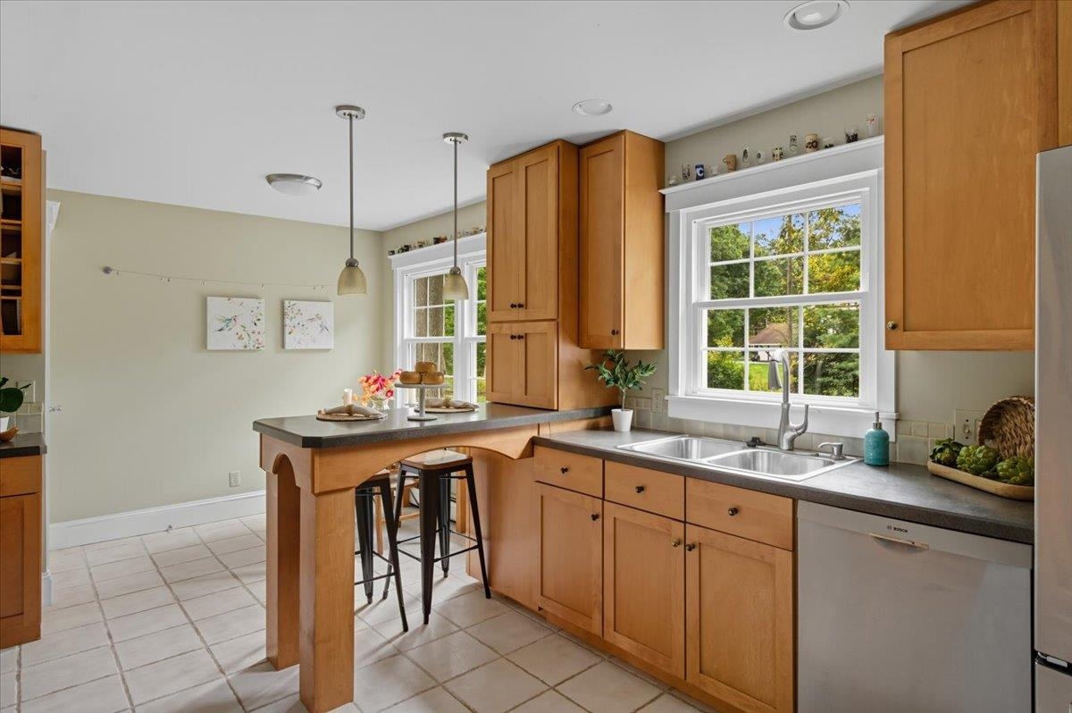 Welcome to this stunning center hall colonial home situated in the highly sought-after Pinewood Manor neighborhood. As you step onto the charming front porch and enter the spacious foyer, you will instantly feel at home. Stay warm during the winter months by the gas fireplace in the living room, or retreat to the family room to enjoy the cozy wood stove. The remodeled kitchen is complete with a breakfast nook that boasts attractive cabinetry featuring glass fronts, modern stainless steel appliances, and a stylish tile floor. An impressive mudroom with a stone floor, accessible from the garage, includes built-in storage and provides access to both the back deck and kitchen area. Beautiful hardwood flooring on the main level and all bedrooms offer comfort and style. The master suite includes a walk-in closet and a three-quarter bath with a spacious tiled shower and a contemporary vanity.The second floor is completed by a full bath and three additional bedrooms. Venture to the basement, currently utilized as a recreation room, which also houses a laundry room area. As you go outside, you will find a two-tiered deck overlooking a level, open lot—perfect for all of your outdoor activities. Tankless furnace and water heater. Extra storage in the shed with power for your garden tools, etc. Recent upgrades include newer roof and siding, This beautiful home is not to be missed in a wonderful neighborhood community