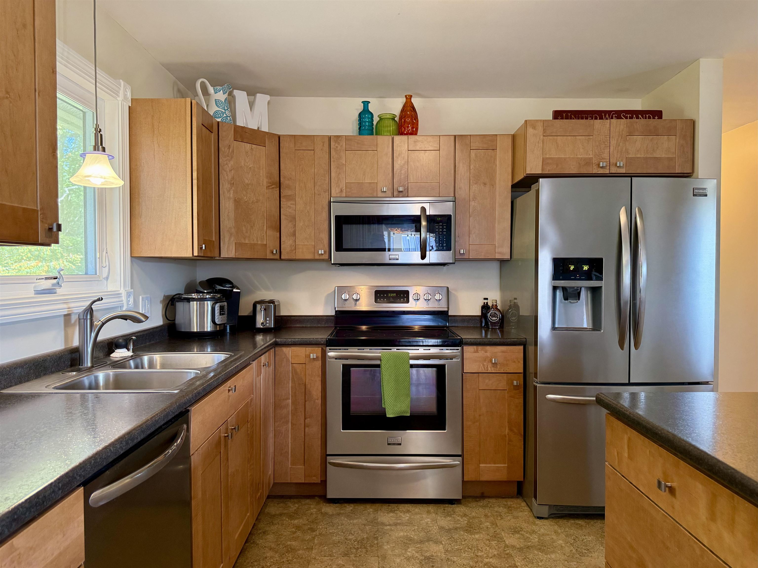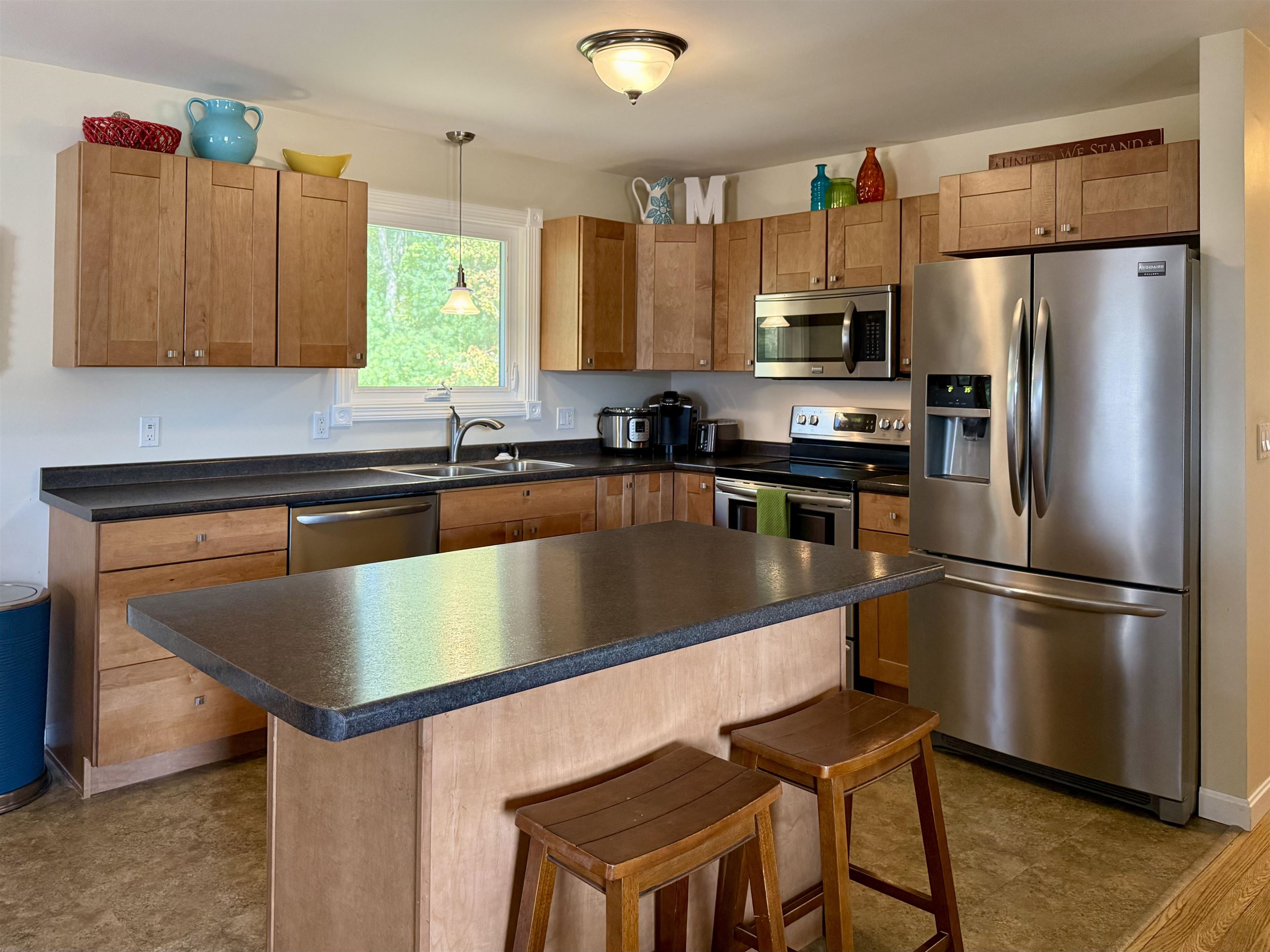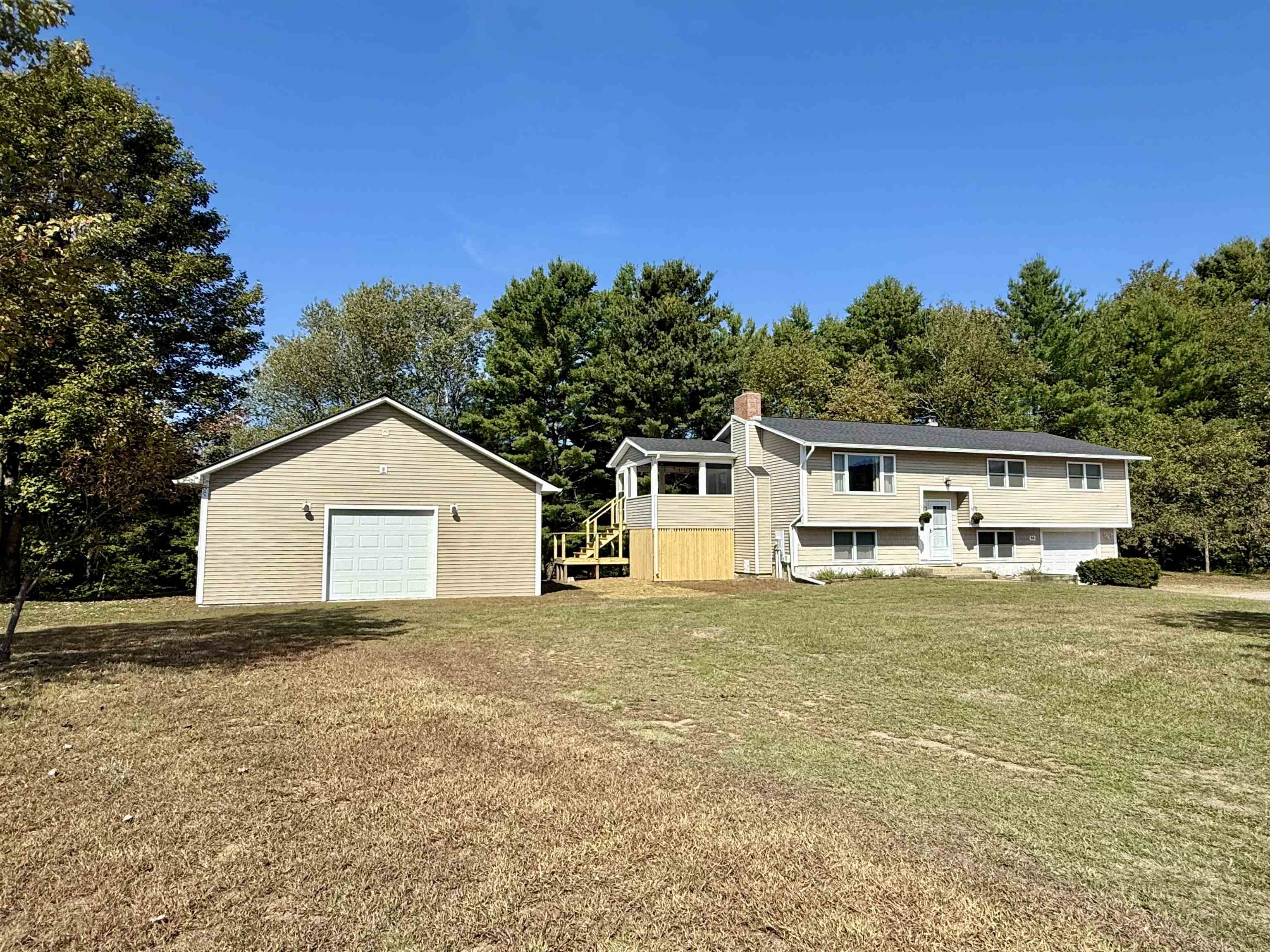 Welcome to your new Westford home! Located a few miles from the center of town, this 3 bedroom, 2 bathroom raised ranch home sits on 1 acre of land, consisting of a level front yard and a sloping back yard, perfect for sledding in the winter. As you enter the home, you'll notice how much natural light fills the space. Upstairs you have open living, dining and kitchen area with a fireplace and direct access to your screened in porch. Down the hall you'll find your large bathroom with updated vanity and three bedrooms, all with hardwood flooring. Downstairs there is a large family room with custom stone wall and a wood stove hookup, should you wish to add one. Off the family room there is a slider leading out to a covered patio, perfect for your hot tub or a shady lounge area in the summer. The basement has a large, updated full bathroom, an office space with new sliding barn door, a laundry/utility room and direct access to the attached one-car garage. If you need more garage space, head into the heated, detached two car garage that is a mechanics dream! Built in 2022 it is 32' x 28' and has plenty of room to install a lift and has a dedicated 200amp electrical service for all of your power tools. A brand new roof was installed this past summer with a transferable warranty and many more upgrades were made over the last 10 years, like the boiler, hot water heater, new vinyl siding, windows and a complete kitchen. Ready to move in before the end of the year...come see it today!