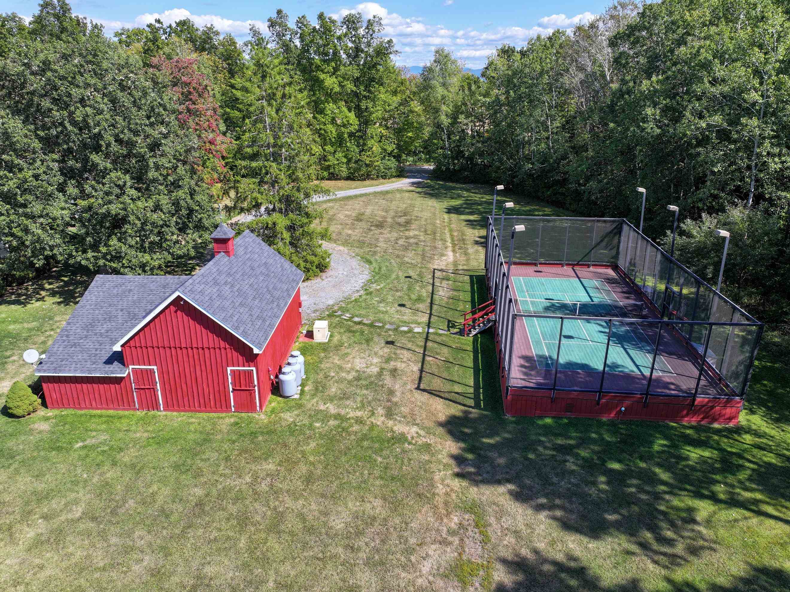 A rare opportunity to enter the next phase of life on this estate-like property in Cornwall. With incredible westerly views across fields, the Lemon Fair and out to the Adirondack High Peaks, the location will simply take your breath away. The original house has been transformed over the years with an eye towards entertaining and allowing for spacious rooms and great lines of sight as two houses became one - which also makes it easy to separate - think "short term rental" possibilities. A rustic barn and your very own paddle tennis or pickle ball court (heated and with lights!). All this on 33 acres which are perfect for party tents, cross country skiing or taking the dog for a walk by the pond and in the field and woods. On the main living level you'll enter through a slate-floor mudroom and into the kitchen with a walk-in pantry and plenty of counter and cabinet space. A formal dining room, living room, family room, wet bar entertainment area, and a bedroom and bathroom complete the interior of the main floor. Just outside the kitchen is the perfectly sized screened-in porch adjacent to a patio. Upstairs is the primary suite with a 3/4 bath, an office/overflow room, three more bedrooms and two more bathrooms. North Bingham Street is a lovely, public, gravel road where you'll find folks walking and biking and it's in the heart of "apple country" in Cornwall but just a few minutes drive into the town of Middlebury and less than an hour to the Burlington Airport.
