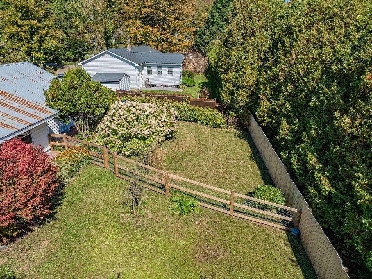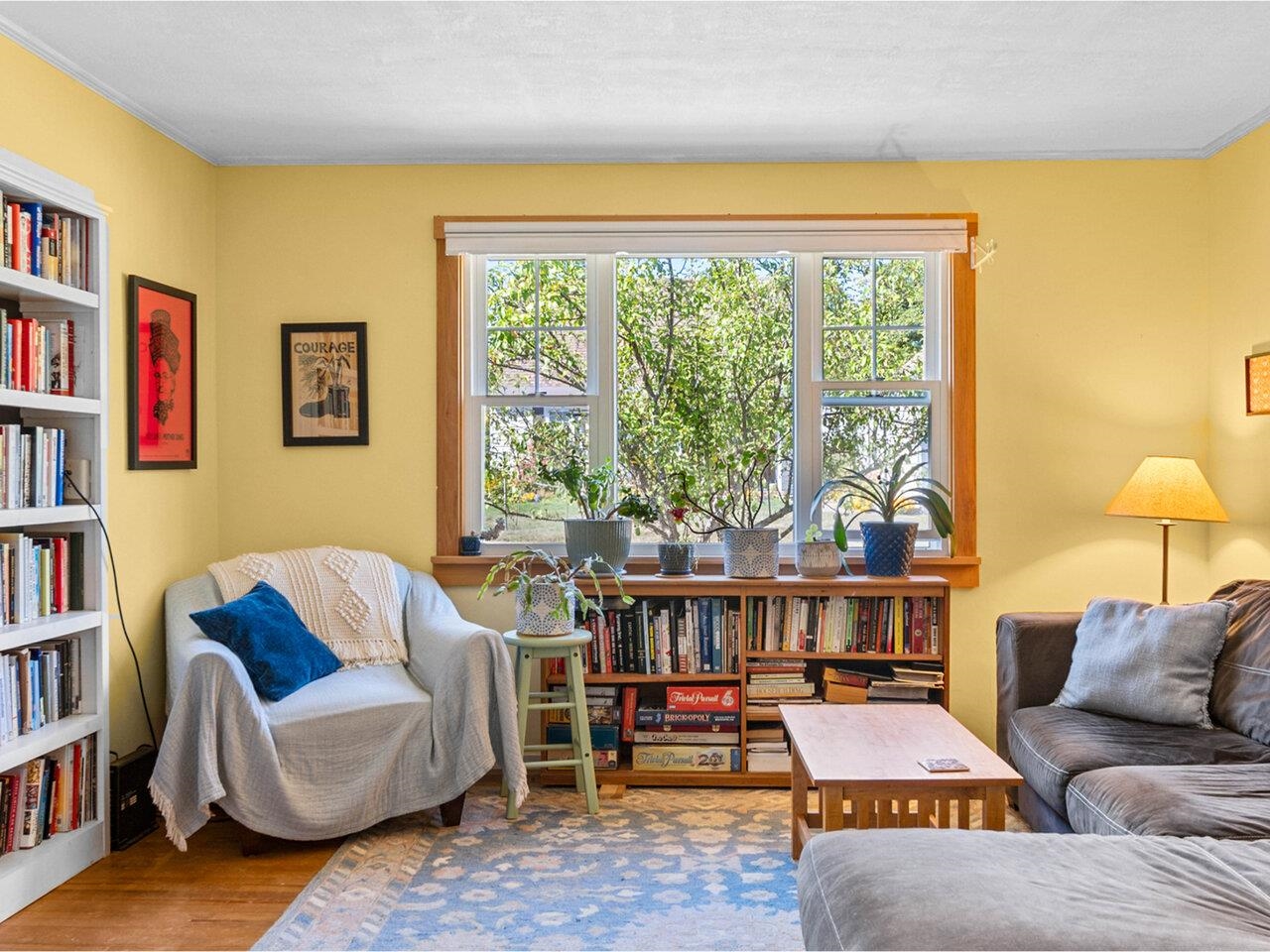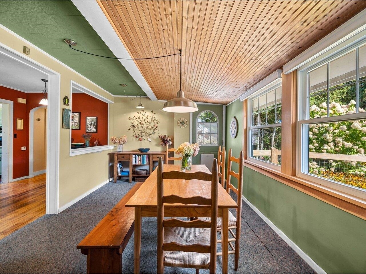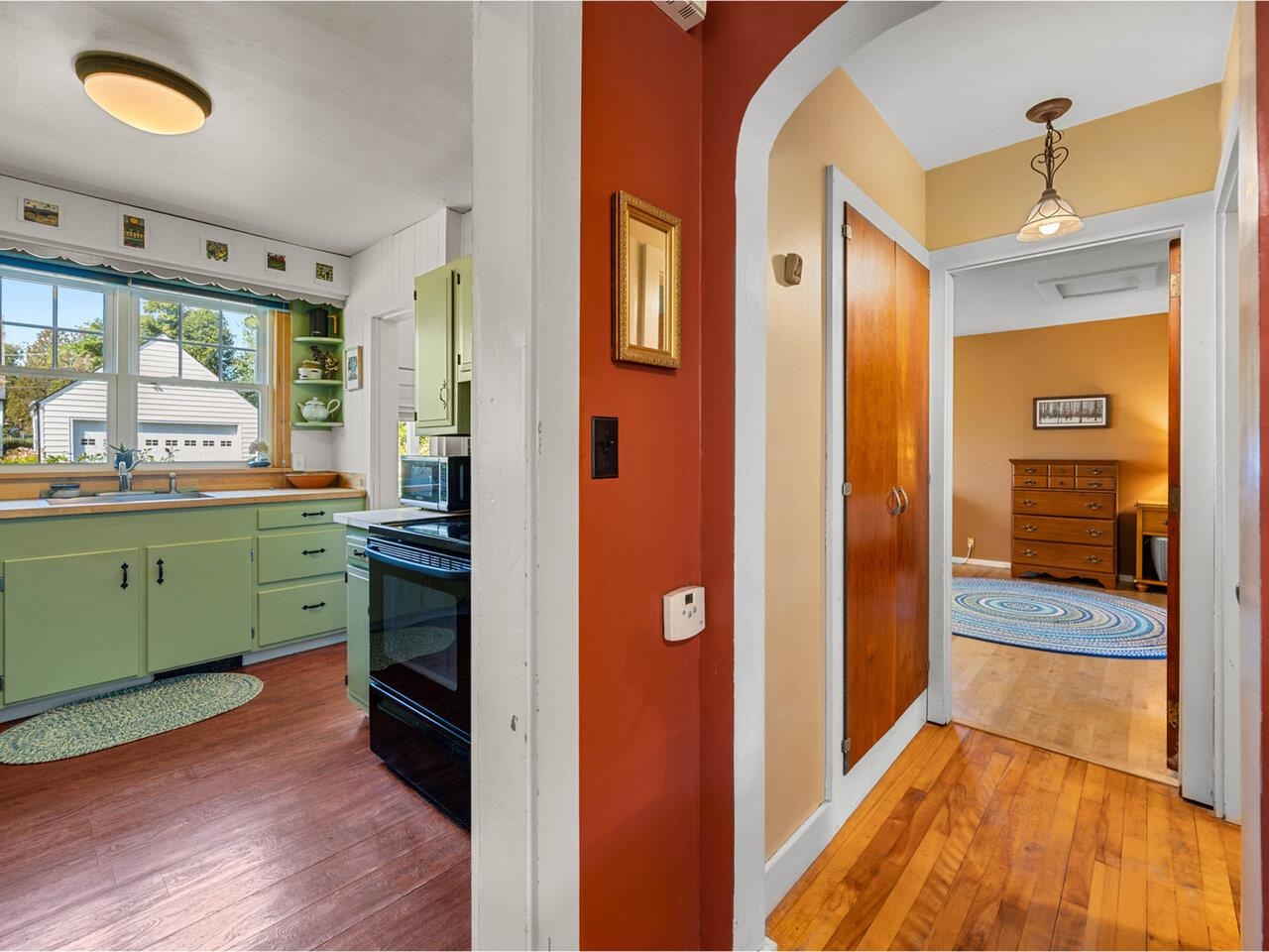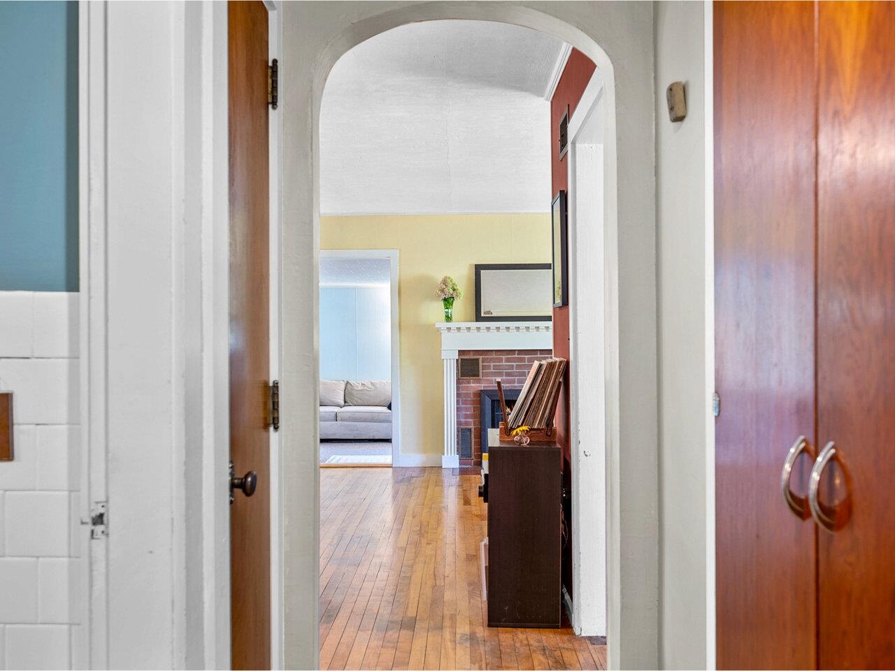 Charming, two-bedroom, one-bath ranch-style home brimming with character inside and out! Step inside off the spacious covered porch to the open-concept living/dining area filled with natural light. A brick fireplace, built-in bookshelves, and hardwood floors add to the inviting ambiance in the living room. The kitchen boasts maple butcher block counters, a large stainless sink, and updated dishwasher and refrigerator. Two sunny bedrooms and a full bath complete the layout, offering peaceful retreats with plenty of charm. The clean, dry basement features laundry and plenty of room for storage, working out, a craft space, or workshop. The fenced-in backyard is highlighted by a large deck and offers lots of space to play, garden, and enjoy the tranquility your own property. Shed for extra storage. Take advantage of the abundant nature trails abutting the nearby National Life property. Located in a great neighborhood with easy access to shops, restaurants, schools, I-89, and so much more!