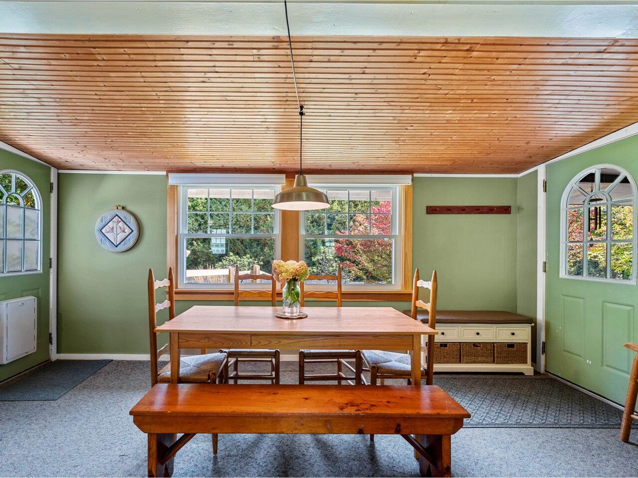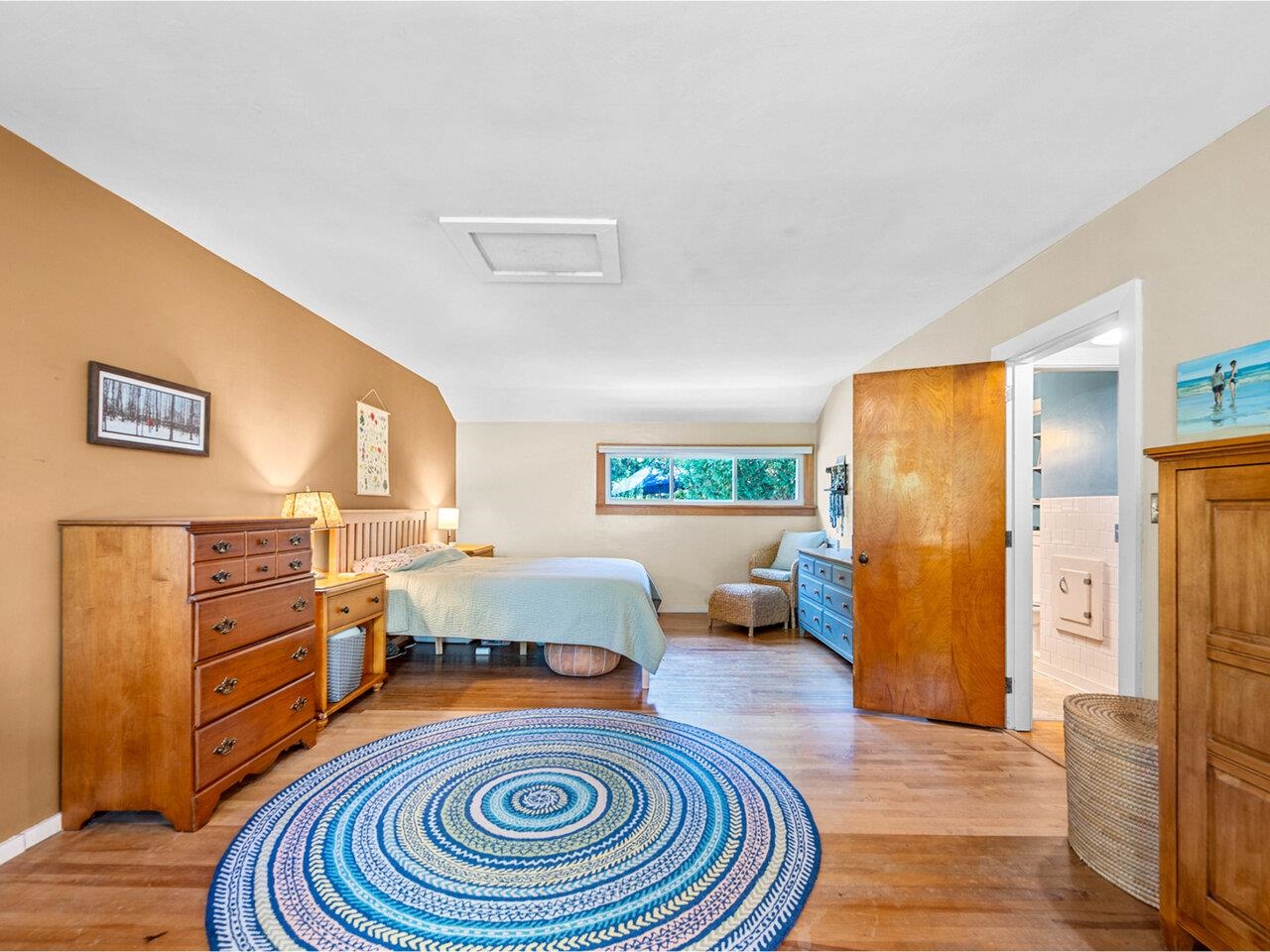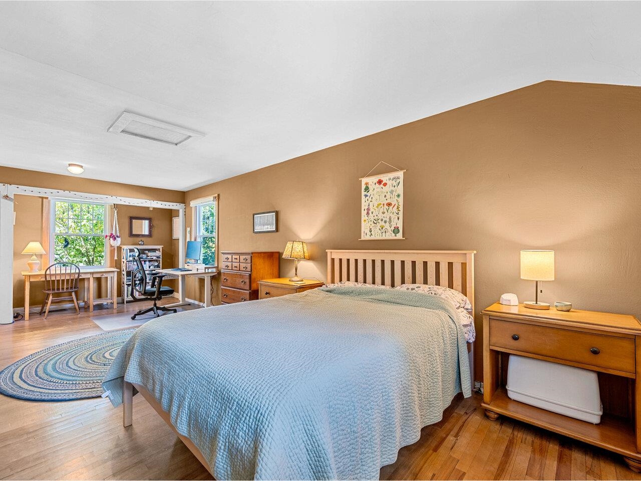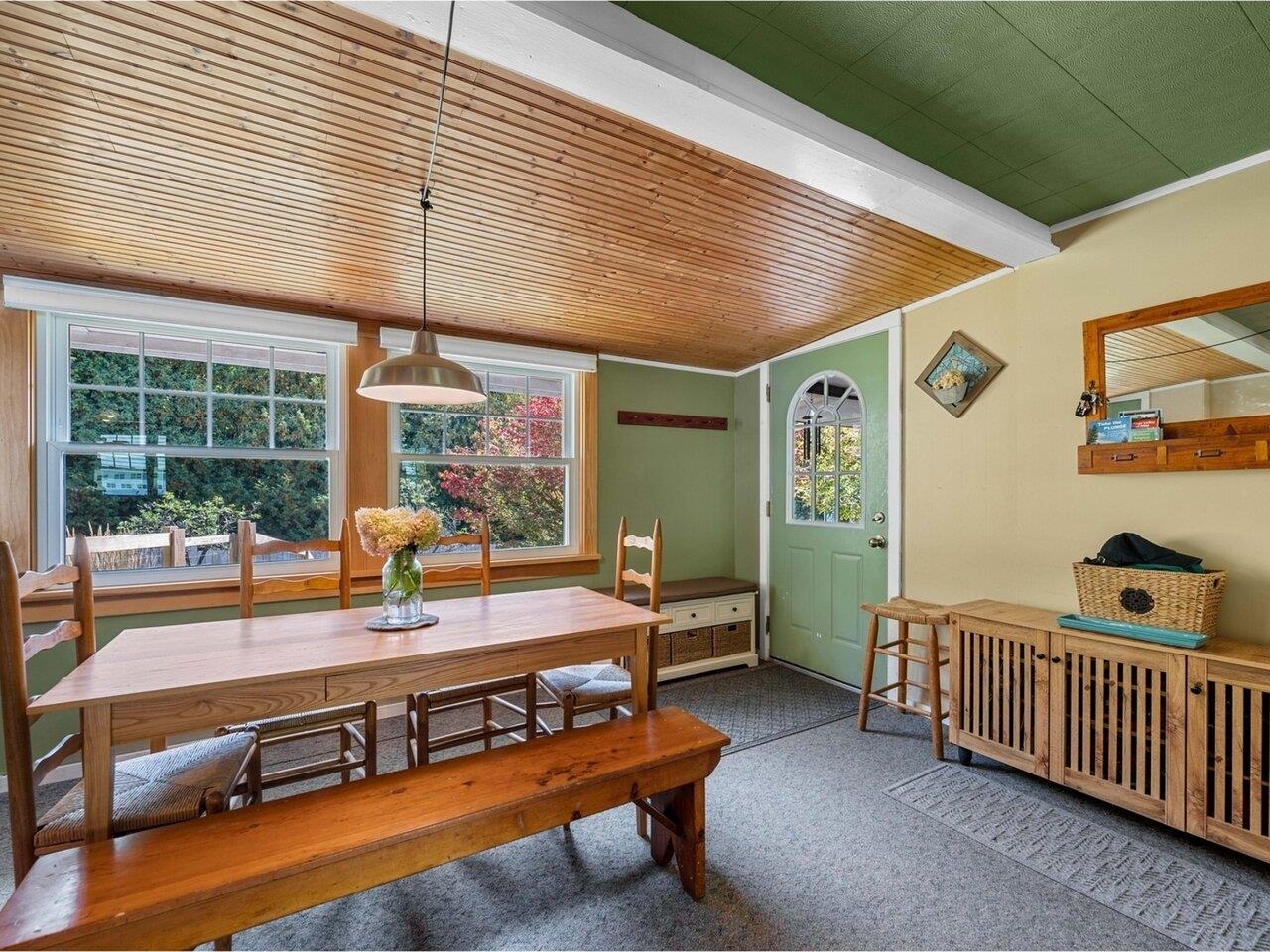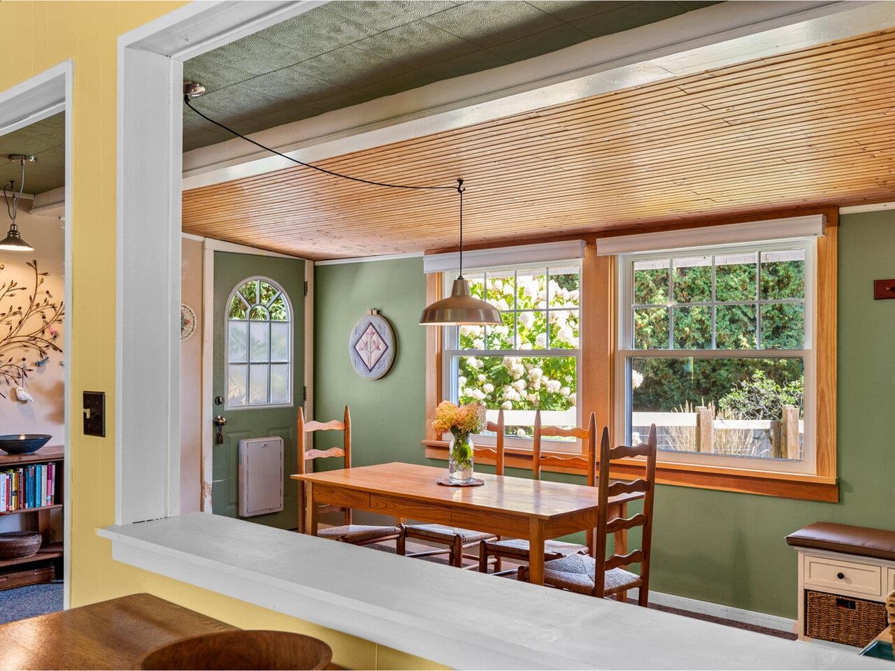 Charming, two-bedroom, one-bath ranch-style home brimming with character inside and out! Step inside off the spacious covered porch to the open-concept living/dining area filled with natural light. A brick fireplace, built-in bookshelves, and hardwood floors add to the inviting ambiance in the living room. The kitchen boasts maple butcher block counters, a large stainless sink, and updated dishwasher and refrigerator. Two sunny bedrooms and a full bath complete the layout, offering peaceful retreats with plenty of charm. The clean, dry basement features laundry and plenty of room for storage, working out, a craft space, or workshop. The fenced-in backyard is highlighted by a large deck and offers lots of space to play, garden, and enjoy the tranquility your own property. Shed for extra storage. Take advantage of the abundant nature trails abutting the nearby National Life property. Located in a great neighborhood with easy access to shops, restaurants, schools, I-89, and so much more!