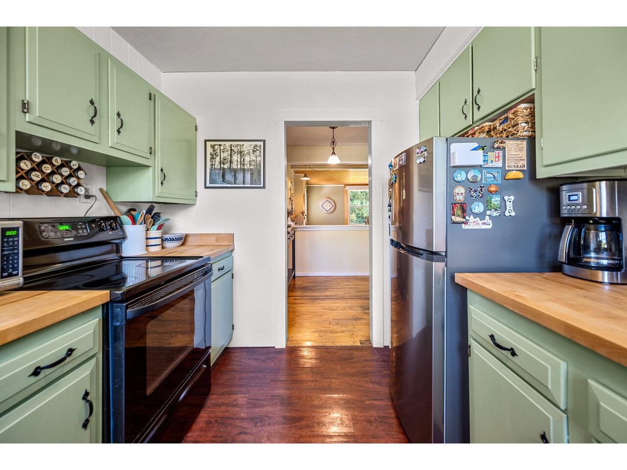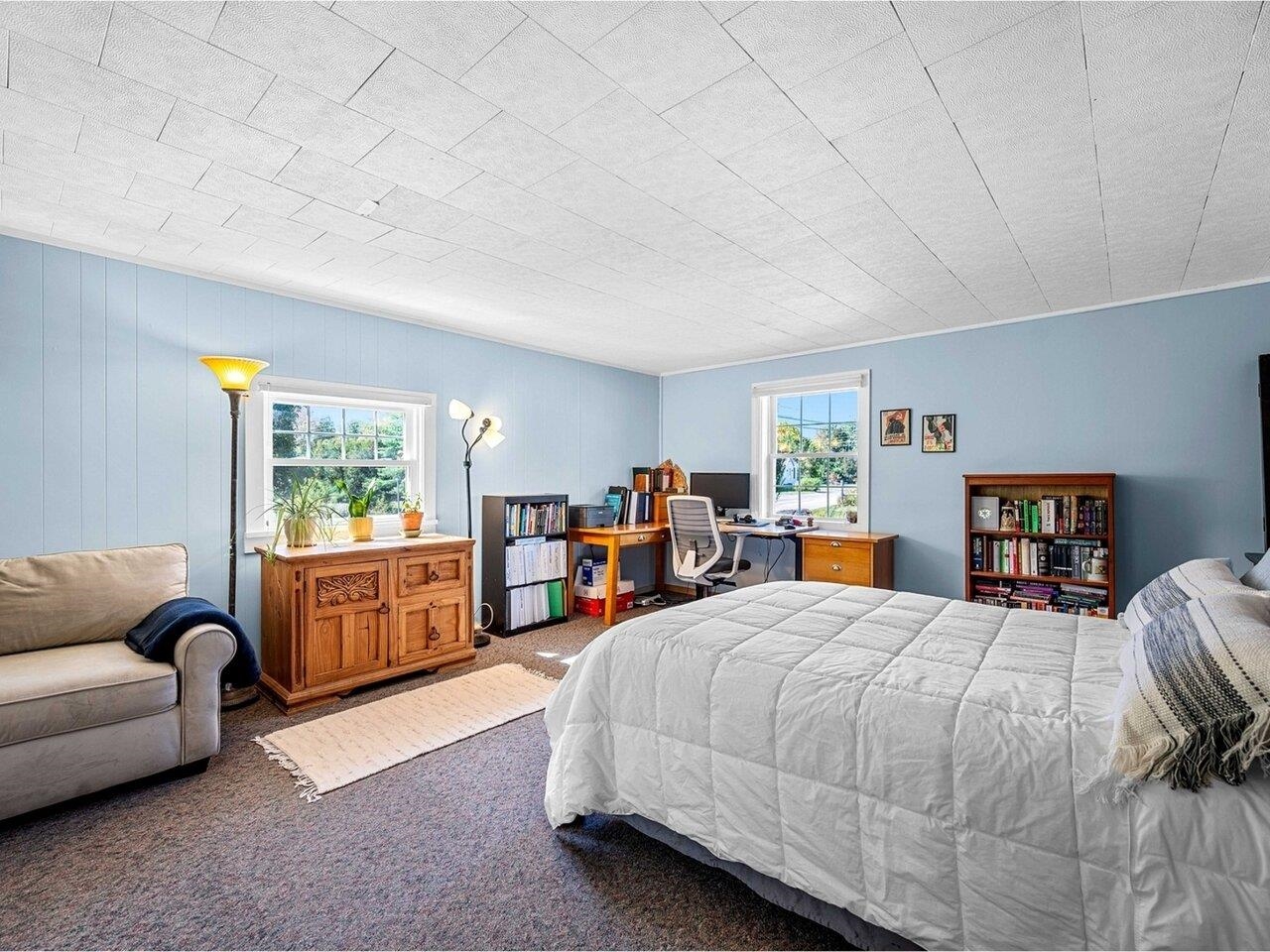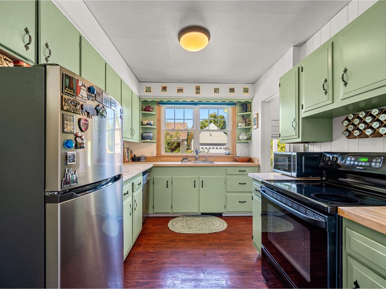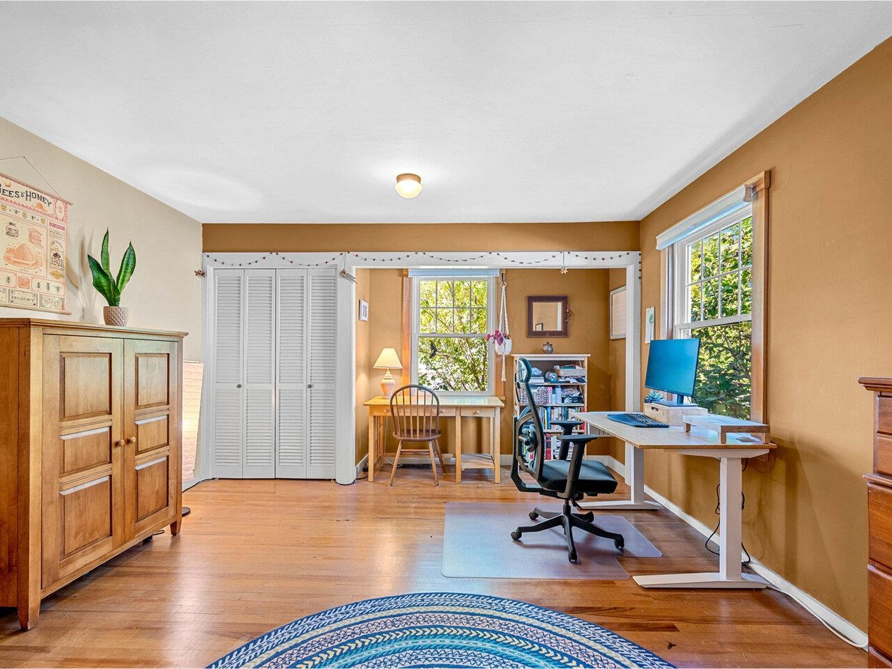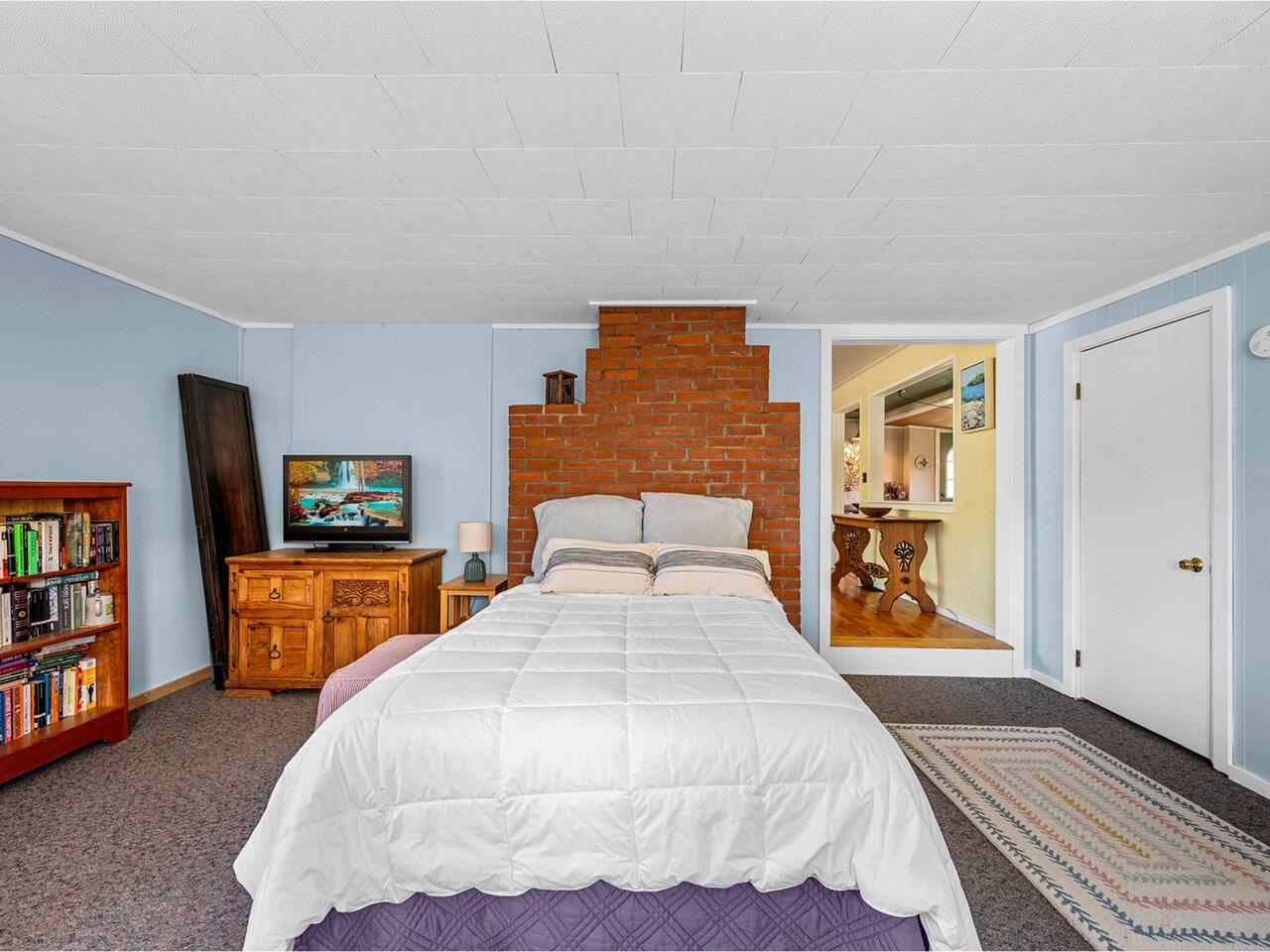 Charming, two-bedroom, one-bath ranch-style home brimming with character inside and out! Step inside off the spacious covered porch to the open-concept living/dining area filled with natural light. A brick fireplace, built-in bookshelves, and hardwood floors add to the inviting ambiance in the living room. The kitchen boasts maple butcher block counters, a large stainless sink, and updated dishwasher and refrigerator. Two sunny bedrooms and a full bath complete the layout, offering peaceful retreats with plenty of charm. The clean, dry basement features laundry and plenty of room for storage, working out, a craft space, or workshop. The fenced-in backyard is highlighted by a large deck and offers lots of space to play, garden, and enjoy the tranquility your own property. Shed for extra storage. Take advantage of the abundant nature trails abutting the nearby National Life property. Located in a great neighborhood with easy access to shops, restaurants, schools, I-89, and so much more!