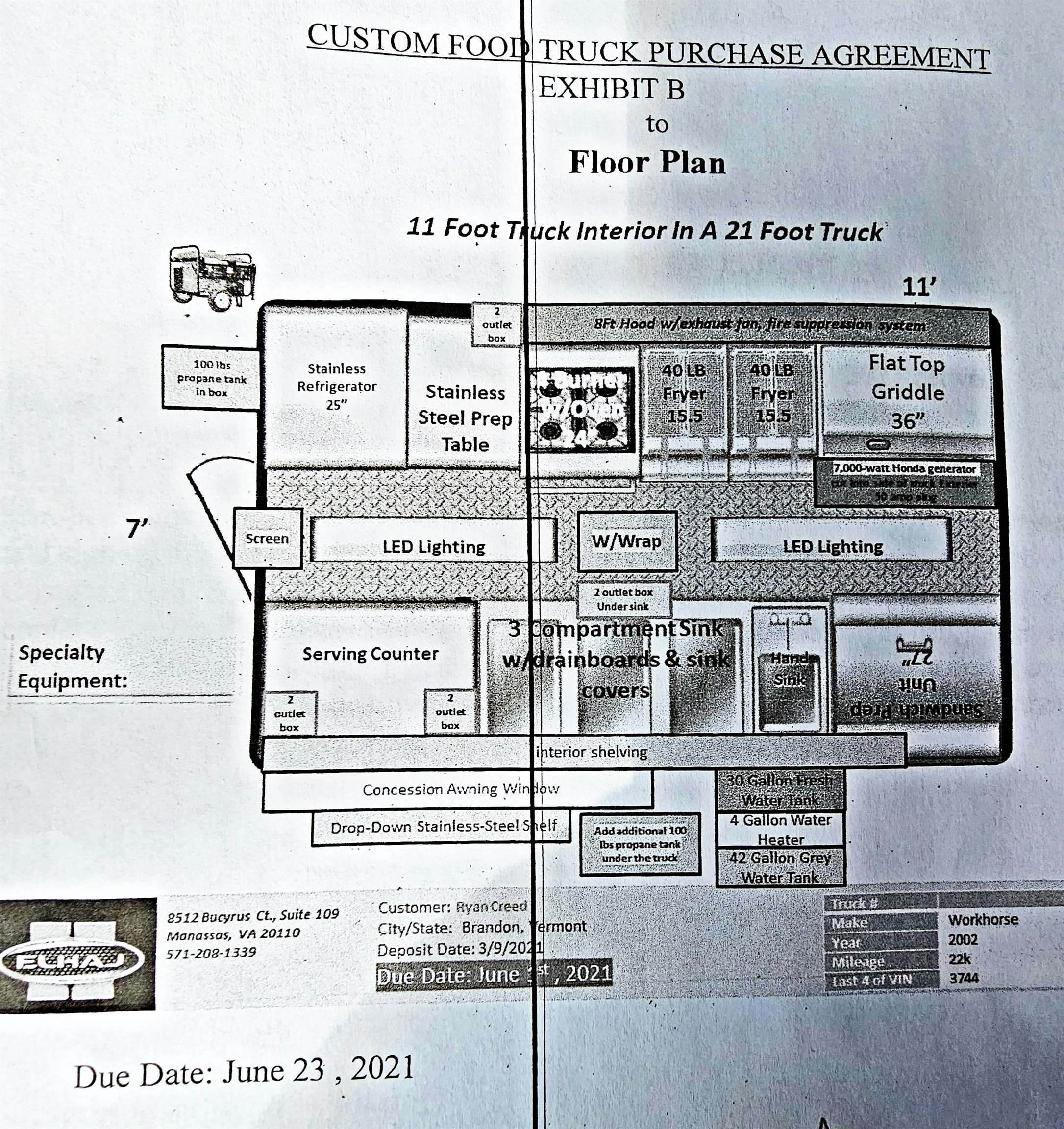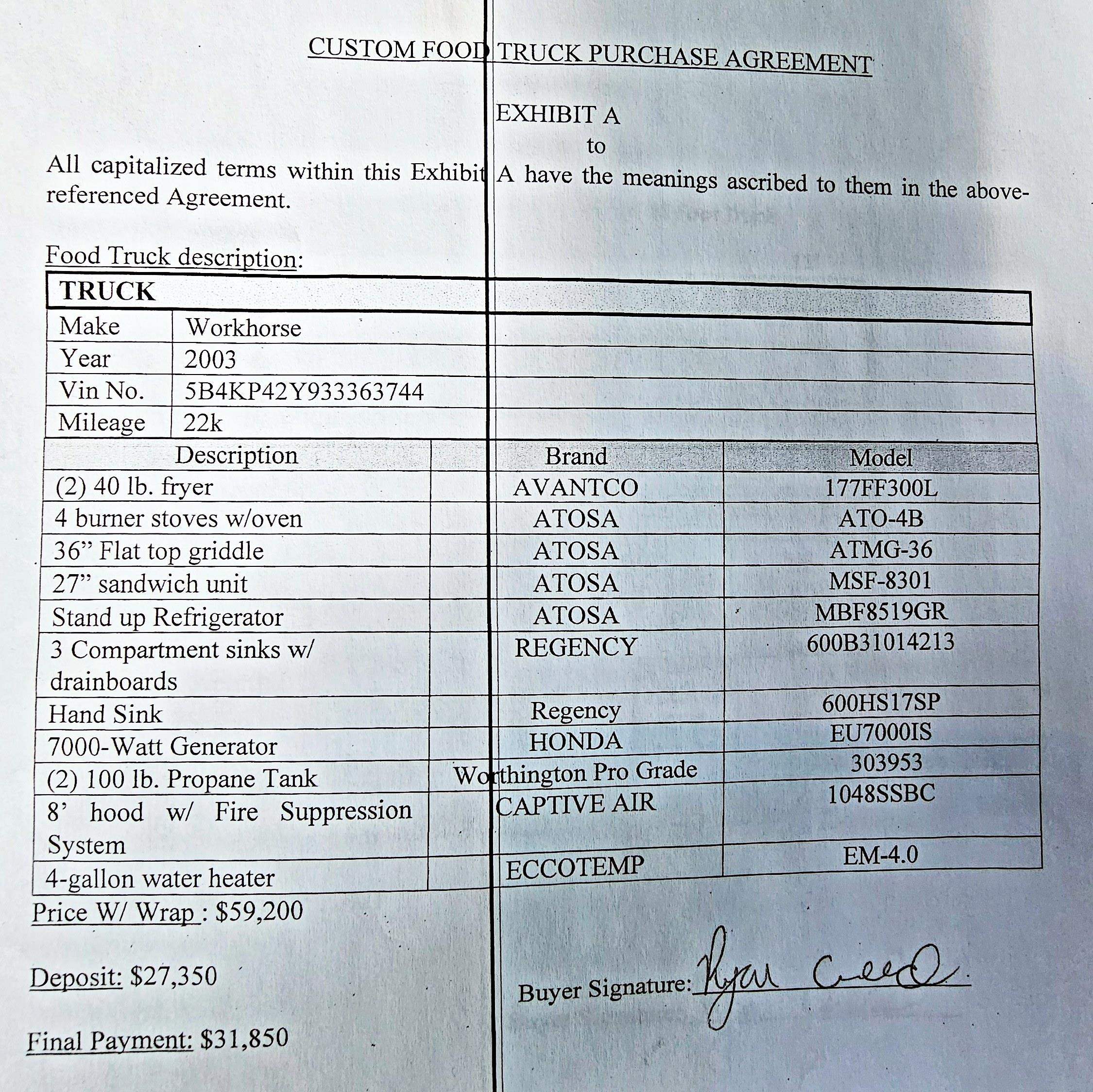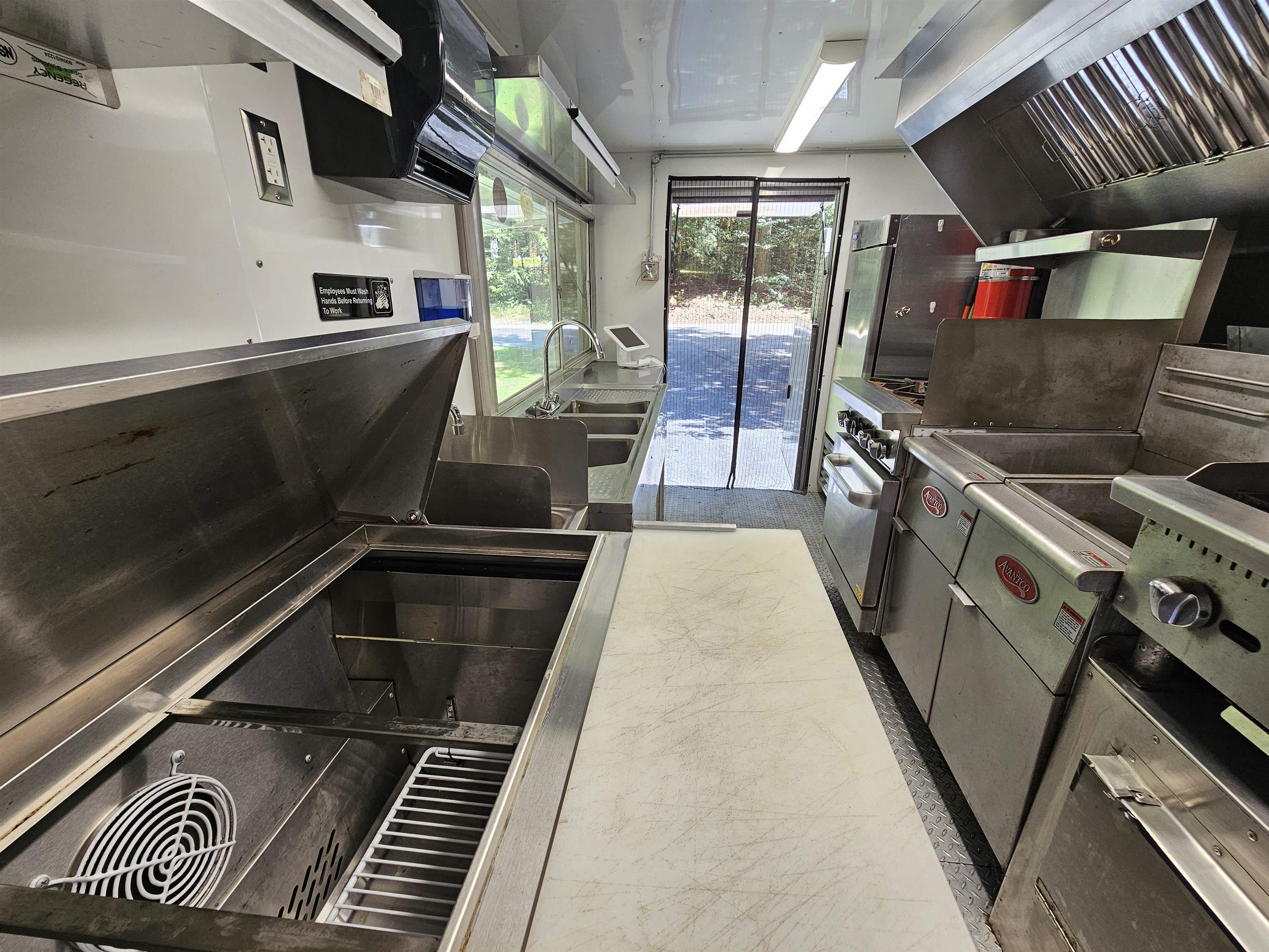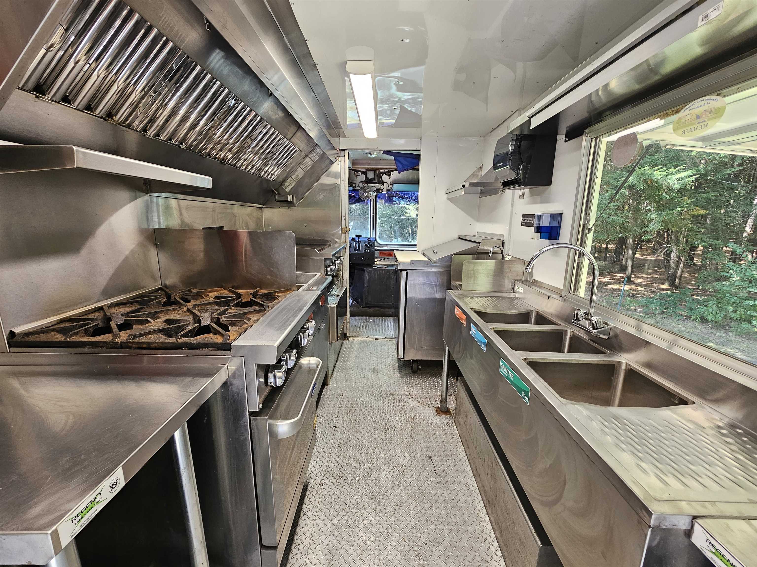 Ultra clean food truck with only 25,000 original miles! 2003 Workhorse P42 was a former mail truck at a Virginia airport so it has very low miles and has only seen four northeast winters. It is in immaculate almost like-new condition! This 21' foot truck has been custom built with an 11' kitchen. It features all new equipment as of 2021 including a 36" flat top griddle, two 40 pound fryolators, four burner propane cooktop plus oven, 25" refrigerator, 27" sandwich prep unit with cooler, stainless steel prep table, three compartment sink with drainboards and sink covers, hand sink, and serving counter/service window with awning and drop down shelf. A Square system with tablet, credit card reader, and receipt printer are included for point of sale purchases. 7000 watt ultra quiet gas generator, 100 & 35 pound propane tanks, 30 gallon fresh water tank and 42 gallon gray water tanks, 4 gallon water heater plus hook ups for hose and shore power electricity. 8' hood system with exhaust fan and fire suppression is cleaned regularly and looks like brand new. When the hood is vented open and the service window is open, it creates a nice cross breeze keeping you cool. The back door can also be either partially or fully open for extra ventilation. This food truck is absolutely immaculate and has been very well taken care of. It is being sold for under cost ($73,000). Current owners will be available for questions and advice for a reasonable period of time to help you get started.