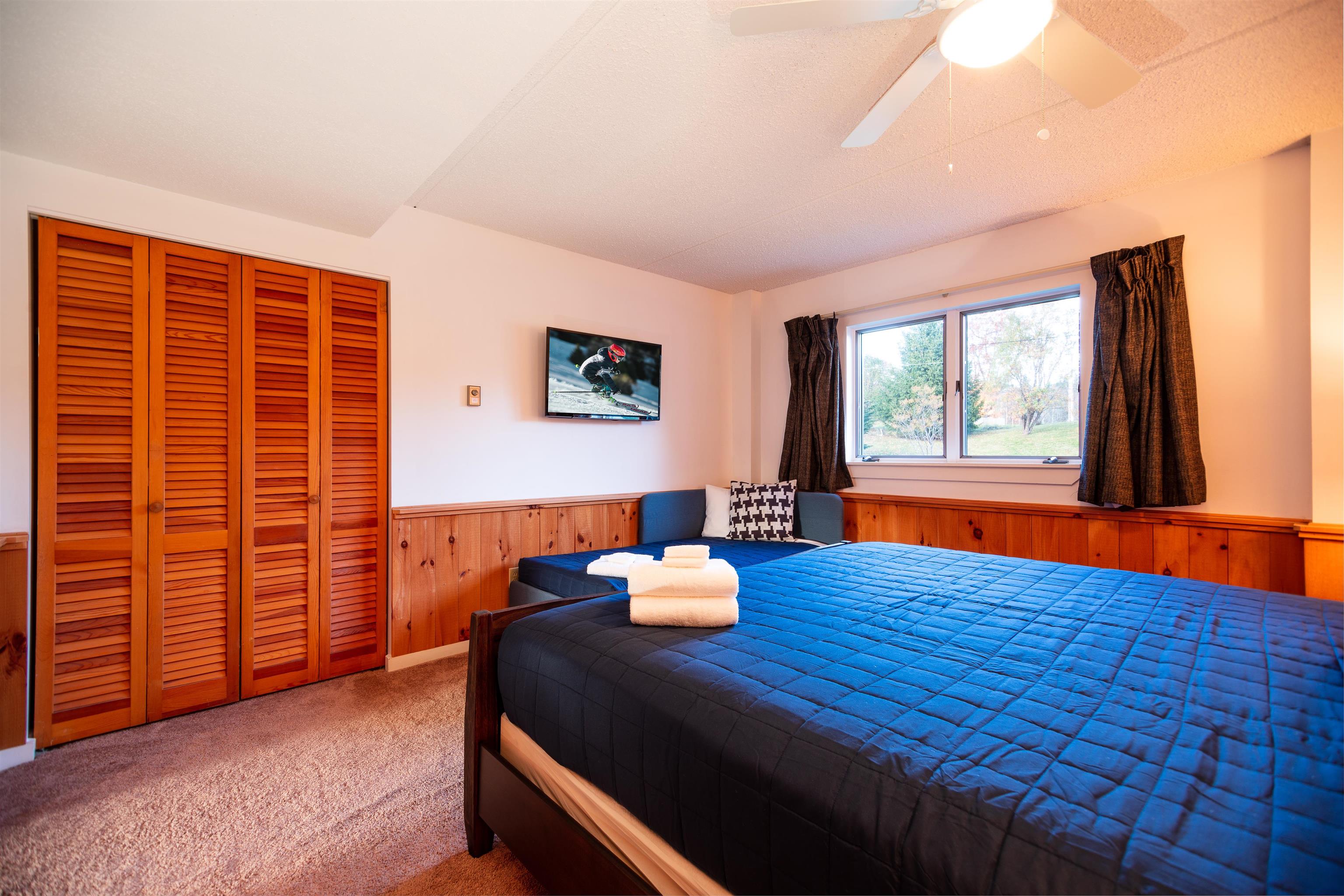 This unique two-level condo has been tastefully updated, featuring a 2-bedroom, 2.5-bath condo in the desirable Snow Tree community, which offers the perfect blend of comfort, style, and convenience—just moments from the slopes of Mount Snow! Step inside the entry level and enjoy an open-concept floor plan ideal for entertaining or relaxing after a day on the mountain. The renovated kitchen features modern finishes and flows seamlessly into the dining area with gleaming hardwood floors. Cozy up by the wood-burning fireplace in the spacious living room, or step out onto your private deck to take in serene mountain views. A convenient half bath and efficient Rinnai heater complete the main level. Upstairs, the primary suite impresses with two oversized walk-in closets and an ensuite bath with a luxurious jetted tub. Wake up to breathtaking mountain vistas right from your bedroom and private upper-level deck! A second bedroom and a full bath offer even more space and flexibility. There's also a second private entrance on this level for added convenience. Snow Tree owners enjoy private storage lockers and access to a well-appointed sports center with an oversized hot tub, exercise room, and an outdoor heated pool. Plus, the MOOVER shuttle stops right at your door, providing quick and easy access to Mount Snow!