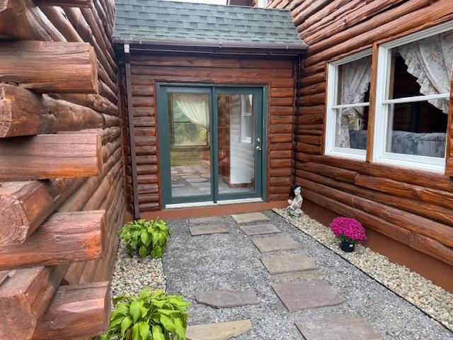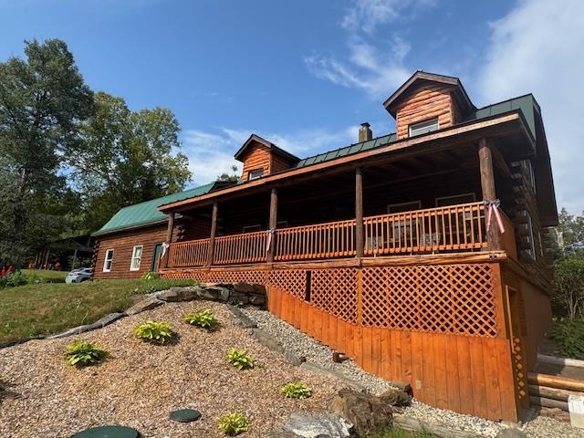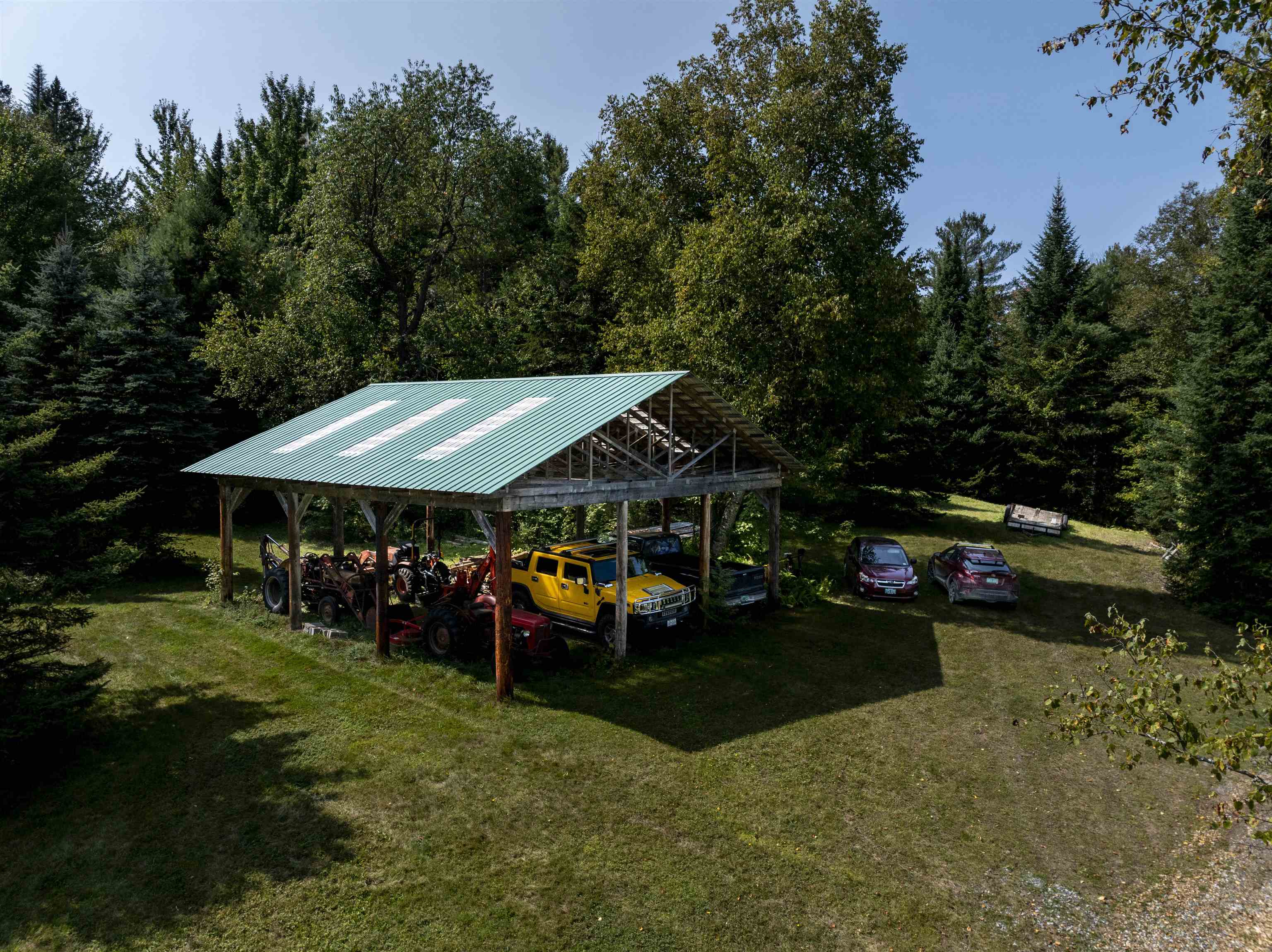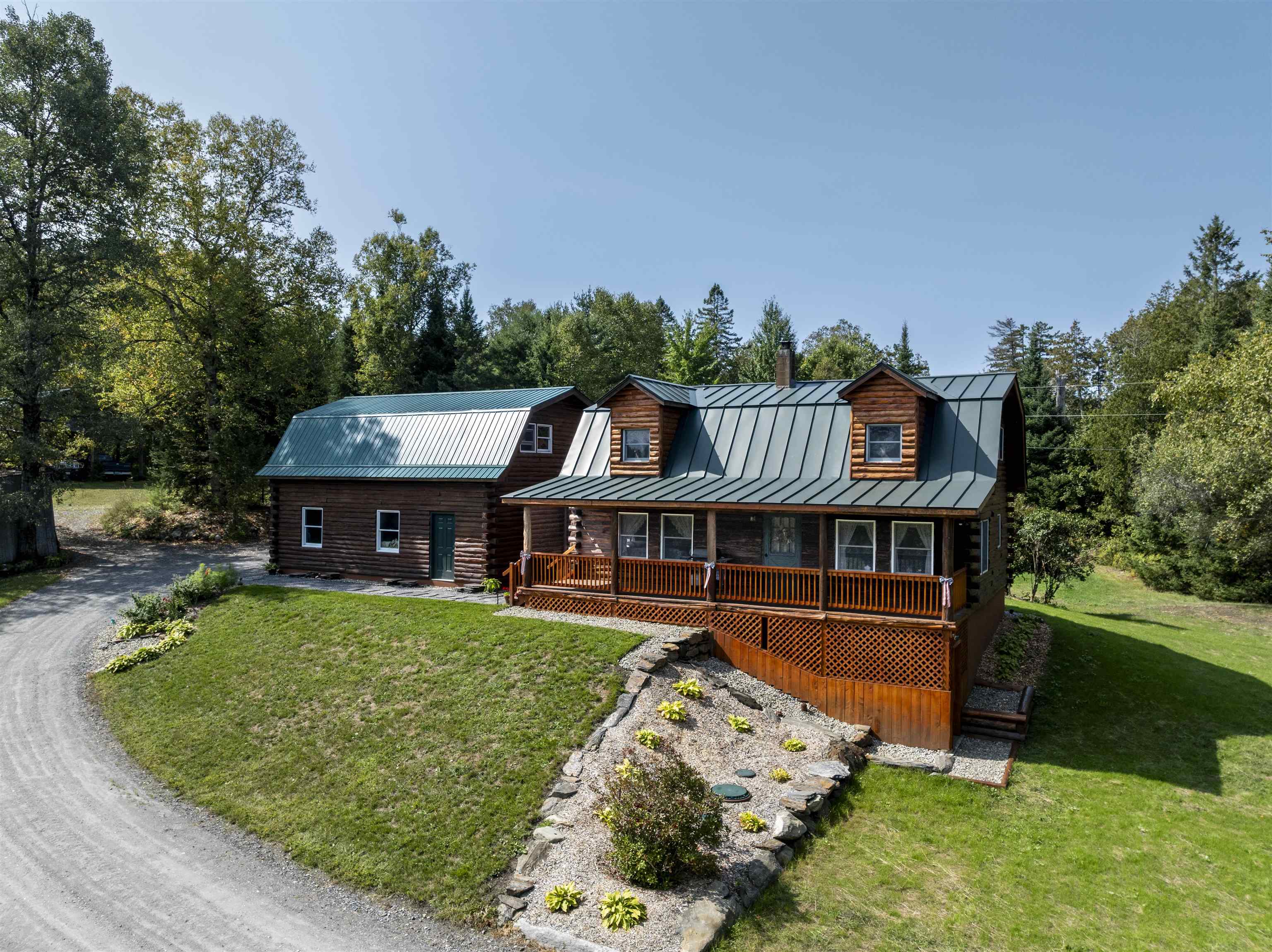 This is a very well maintained gambrel style log home with a matching 2 car garage addition with open second floor and breezeway between. 28 acres of rolling mixed woods, several open acres along the ridge where the home is, a beautiful pond, and a large open sided pole barn to vehicle and equipment storage. Craftsbury Outdoor Center trail is on the property and also across the road. The home is a lovely log home with exposed ceiling beams on the first floor. Pine floors with a very large living room w/ brick hearth and wood stove, 3/4 bath, attractive kitchen with new counters. dining room, and a full front porch. 2nd floor has a full bath at the top of the stairs with master bedroom and large closets to the left and a second large bedroom to the right with large closets. Thick pine floors grace this level. There is a full walkout basement w/ painted/sealed concrete floor and walls, oil/wood combination hot air furnace, and laundry. Could offer many possibilities for workout space, office, workshop. 2 story garage has concrete floor, and stairs to the open second floor. Endless possibilities there. Next is the very large 3 bay open sided pole barn currently housing equipment. The land is mostly wooded with a mix or hard and softwood. The home offers complete privacy, easterly views, Craftsbury Outdoor Center xc ski trails, Great Hosmer across the road with access just down the road. A heavenly spot.