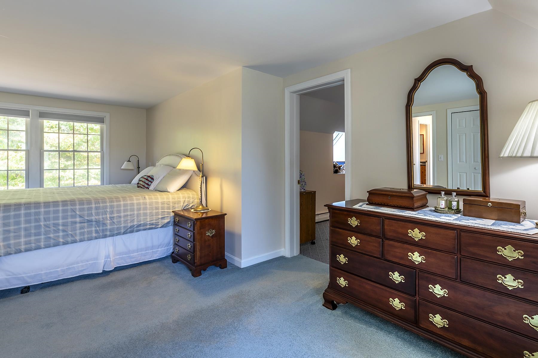 Located in the desirable Bible Hill neighborhood of West Windsor, this lovely cape style home is has everything you'll need to accommodate full or part time living. Privately nestled back from the road directly abutting conservation land, and a wonderful hiking/ snowmobiling trail system. The home has a generous living room anchored by a woodburning fireplace, which connects to the dining room with bay window, and well appointed eat-in kitchen with plenty of counterspace. Four-season sunroom to relax and observe the wildlife and nature just outside your door. First floor bedroom with bathroom. Access the attached two car garage through the mud/laundry room. Two additional bedrooms and bath upstairs, plus a huge bonus space over the garage for additional guest accommodation, bunk room, or office/studio. The partially finished walk out basement has a billiards/rec room perfect for a den or media room. Easy access to all recreation, I-91, Woodstock, Hanover, DHMC.
