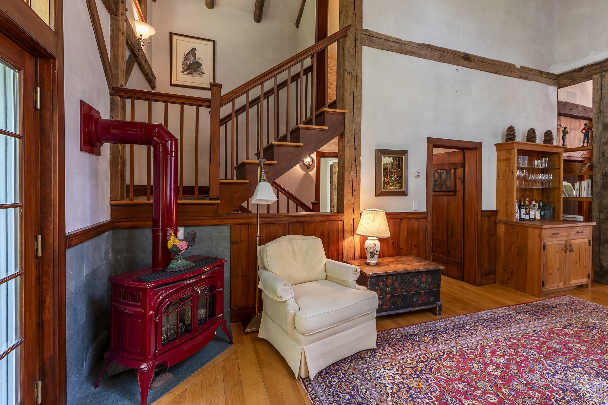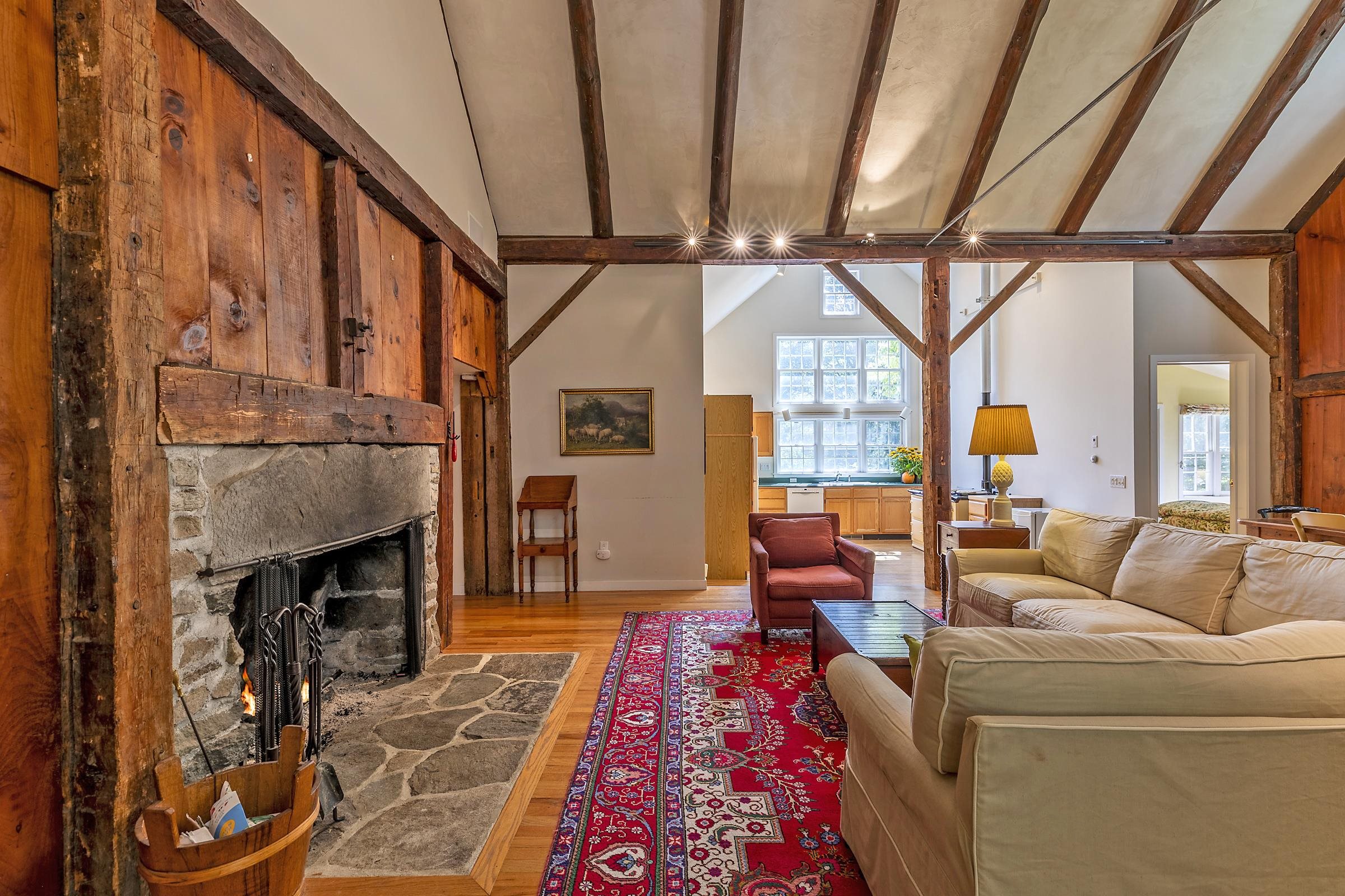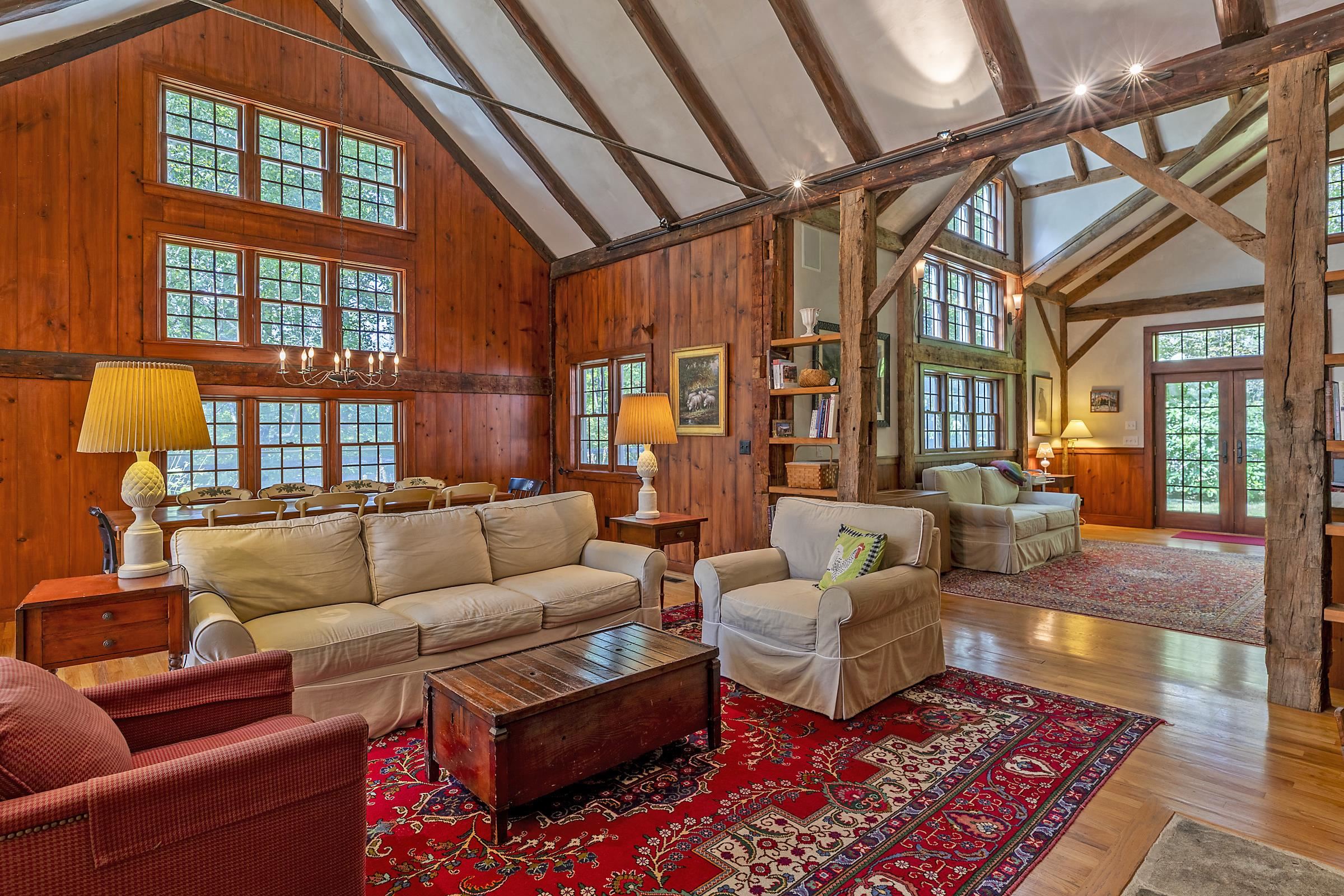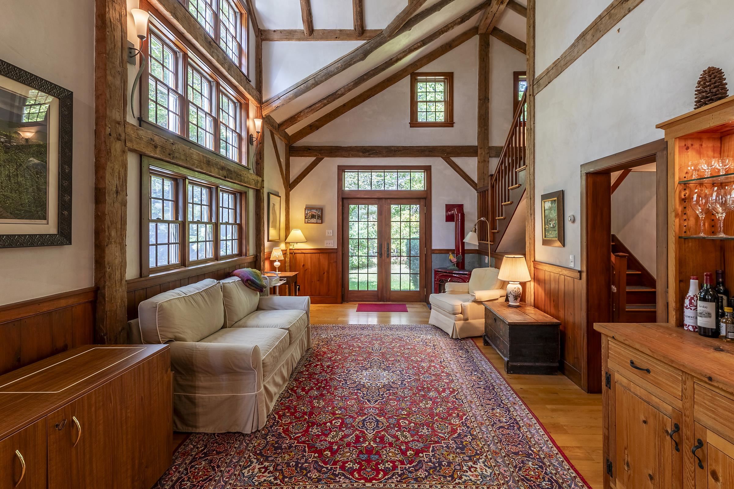 Tucked away in a corner of beautiful Landgrove village just off a quiet country lane, this beautiful Post & Beam residence is a fascinating home designed for entertaining and fun! Enjoy the charm and architectural interest of the historic country barn it once was and all of the modern amenities resulting from two major renovations in 1985 and 2005 with continued updates and improvements over the years. Architectural highlights include the original barns’ timber-frame (visible throughout much of the house), an open floor plan with spectacular cathedral ceilings and large, high divided-light windows, gorgeous wood floors (with radiant heat), a stunning fieldstone fireplace that serves as the focal point in the Great Room, and warm and comfortable living areas throughout. There are four bedrooms (two on the main level including the primary suite, and two more upstairs), three modern bathrooms, a game/media room, a big bright kitchen, and the quintessential mudroom entry that every home in Vermont should have! There are perennial gardens around the house, an enchanting stone patio, and a fully-fenced yard for your wee ones and four-legged friends. Landgrove is an active and dynamic community; you’ll be just a few minutes (or less) from four-season outdoor fun ranging from tennis, hiking, and biking from your front door, skiing at 4 major ski resorts, fabulous farmers’ markets, well-respected schools, great fine and casual dining, and world-class theater and music events nearby.