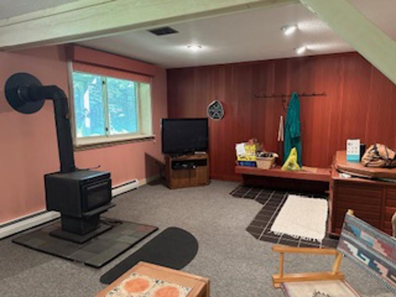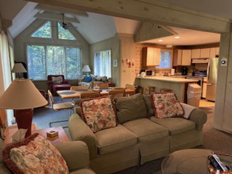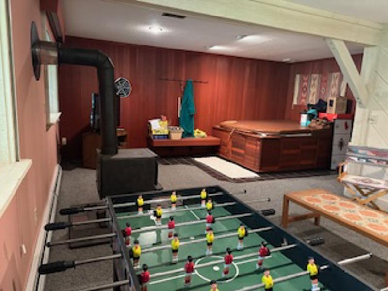 Charming Private Retreat Near Mount Snow Nestled on a private, wooded lot, this inviting home offers serene outdoor living with both a front and rear deck, as well as a level front yard. Inside, the open-concept layout features a beautiful brick wood-burning fireplace in the living room and a cozy sunroom with vaulted ceilings and large windows that bathe the space in natural light. It boasts hardwood floors, a gas stove, and a convenient laundry room with an entry. The spacious first-floor primary suite offers easy living, while the second floor includes three additional bedrooms and a small loft—perfect for guests or a home office. The lower level features a welcoming family room, a utility room with a workbench, a ¾ bath, a woodstove, a versatile bonus room, and a relaxing hot tub. Whether you're looking for a year-round residence or a mountain getaway, this home is ideally located close to Mount Snow and all the area's outdoor activities.
