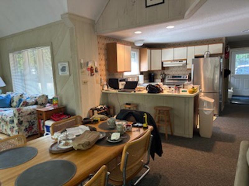 - Ceiling Fan, Dining Area, Gas Fireplace, Wood Fireplace, 1 Fireplace, Kitchen Island, Kitchen/Dining, Kitchen/Living, Living/Dining, Natural Light, Natural Woodwork, Skylight, Vaulted Ceiling