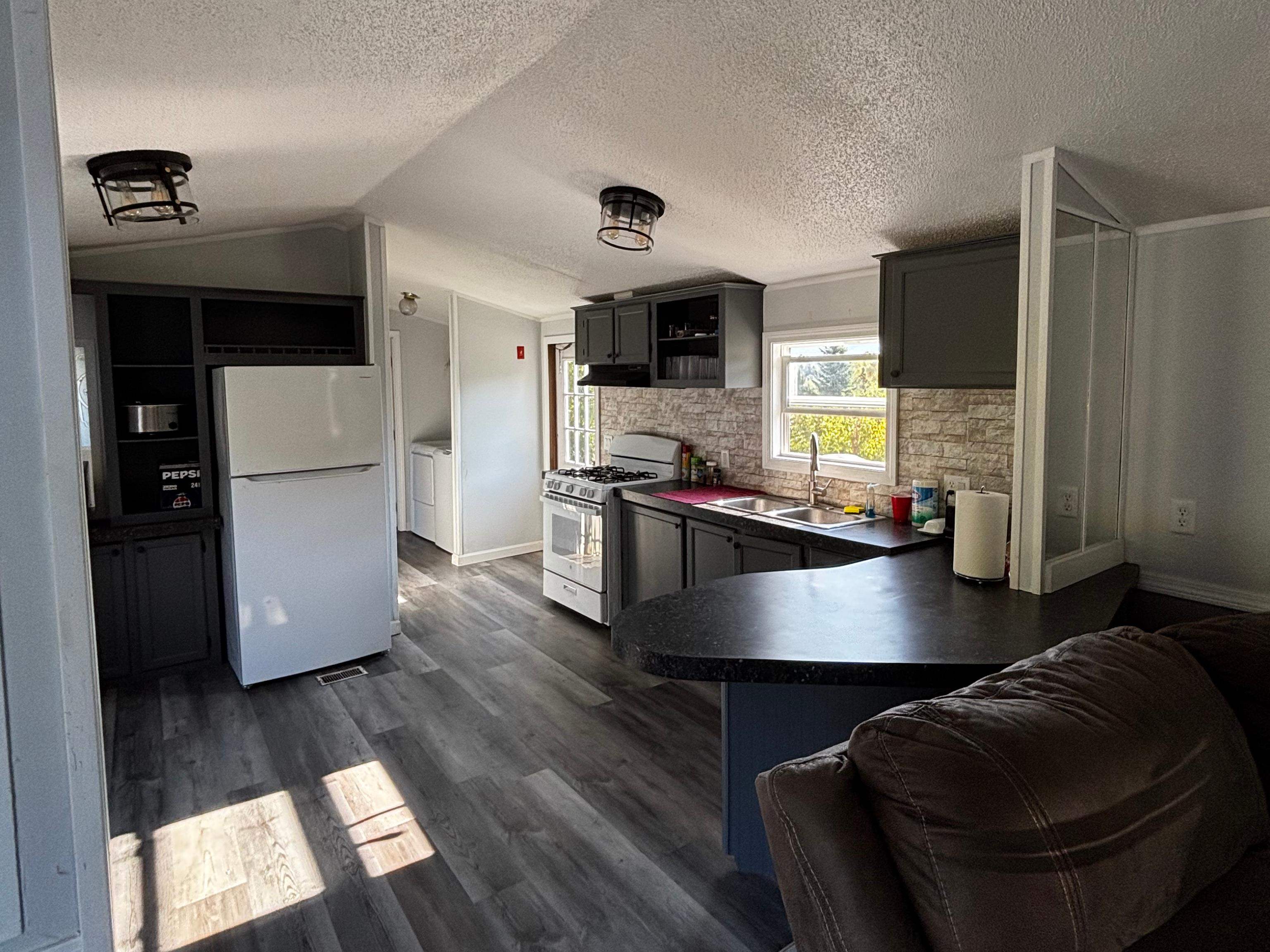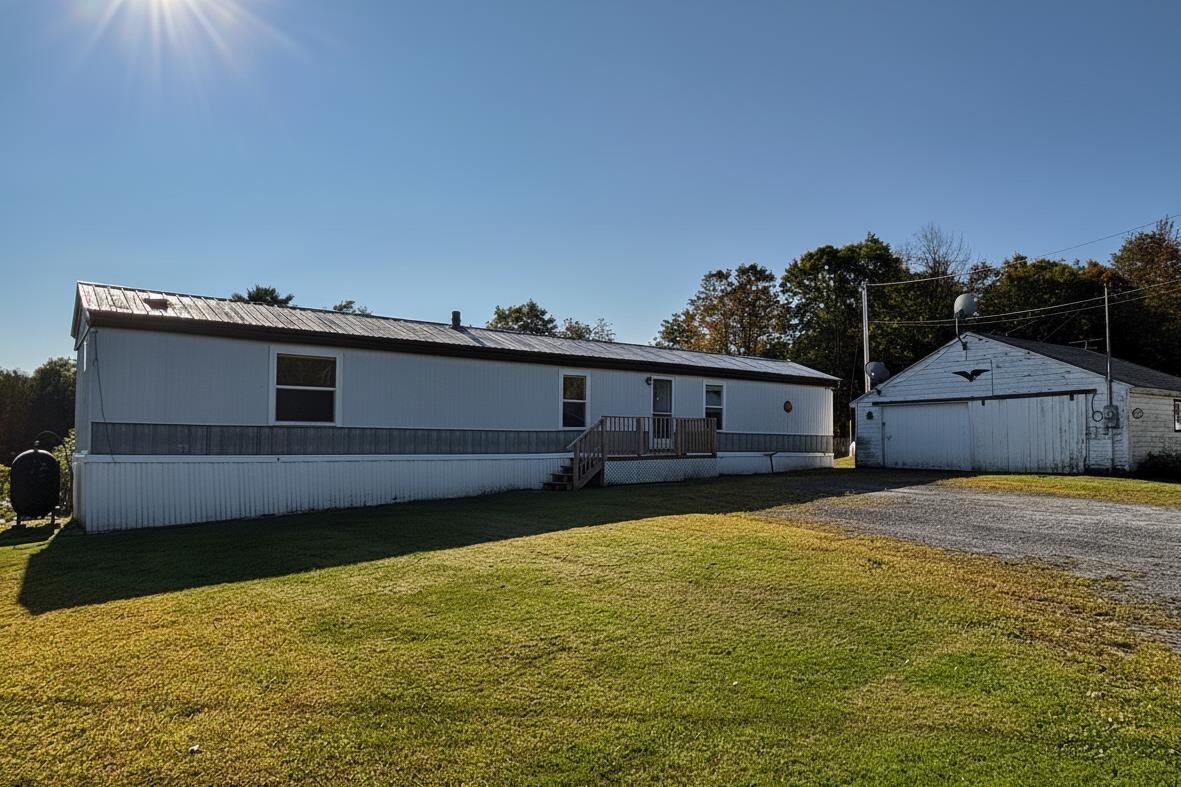 Bright, refreshed, and move-in ready—this updated 2-bedroom, 2-bath manufactured home in Barre Town offers easy living in a peaceful park setting. With recent upgrades including new skirting, vinyl flooring, lighting, and paint throughout, plus rebuilt front and back decks, this home is truly turnkey. Step inside to a light-filled interior with lots of windows and skylights that bathe the home in natural sunlight all day. The open-concept layout features a spacious living room and an updated kitchen with painted cabinets, stone-look backsplash, gas range, and ample prep space. The split-bedroom design provides privacy, with the primary suite offering a full ensuite bath and generous closet space, while the second bedroom and full bath sit at the opposite end of the home. Enjoy outdoor living from the elevated back deck—ideal for relaxing with views and vibrant foliage in the distance. A detached garage adds bonus storage or workshop potential, and a yard provides extra space to spread out. Tucked just outside East Barre and close to the Millstone Trails and historic granite quarries, this home offers modern comforts with access to nature and local amenities.