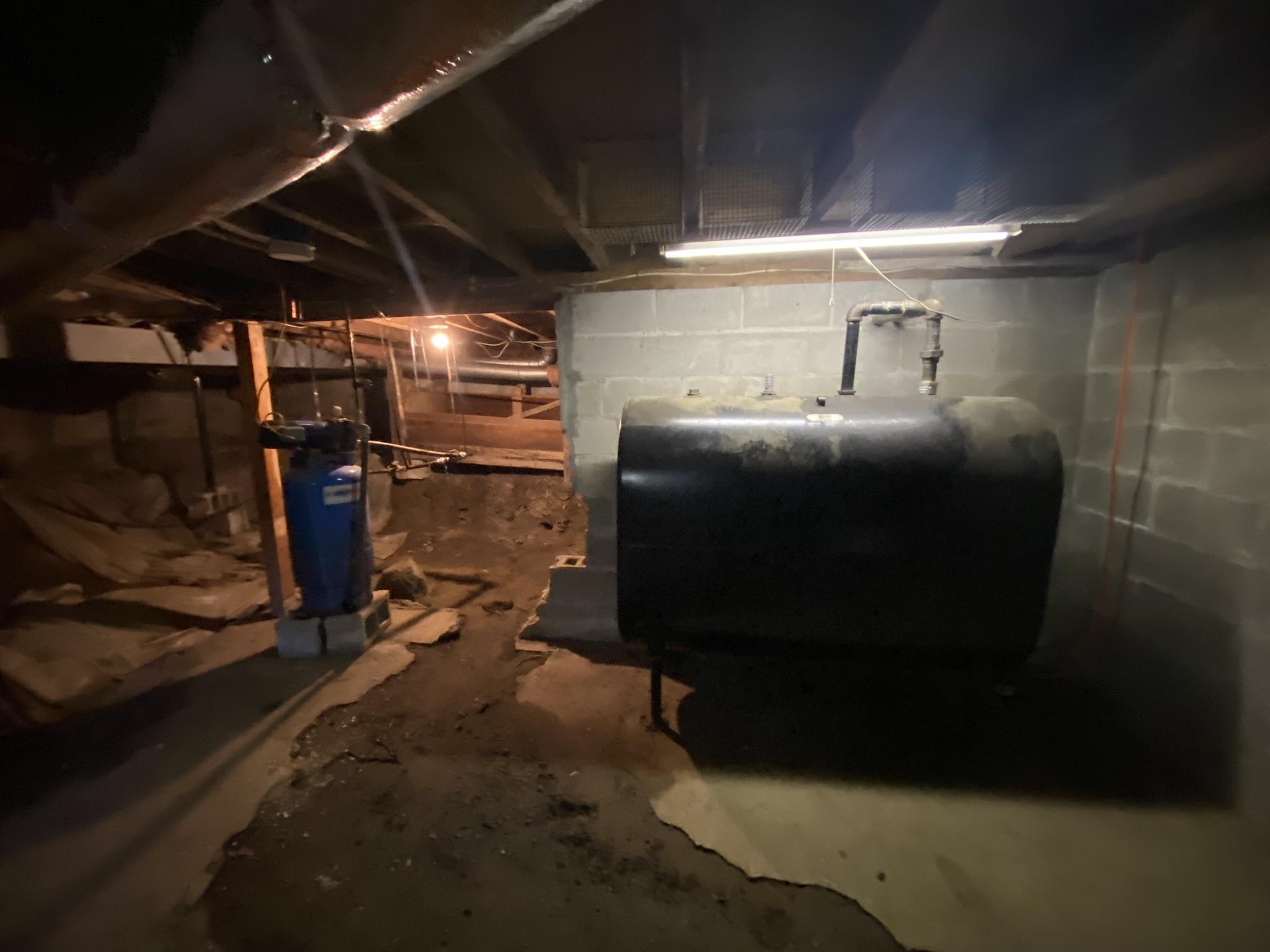 - Concrete Floor, Dirt, Unfinished, Basement Stairs