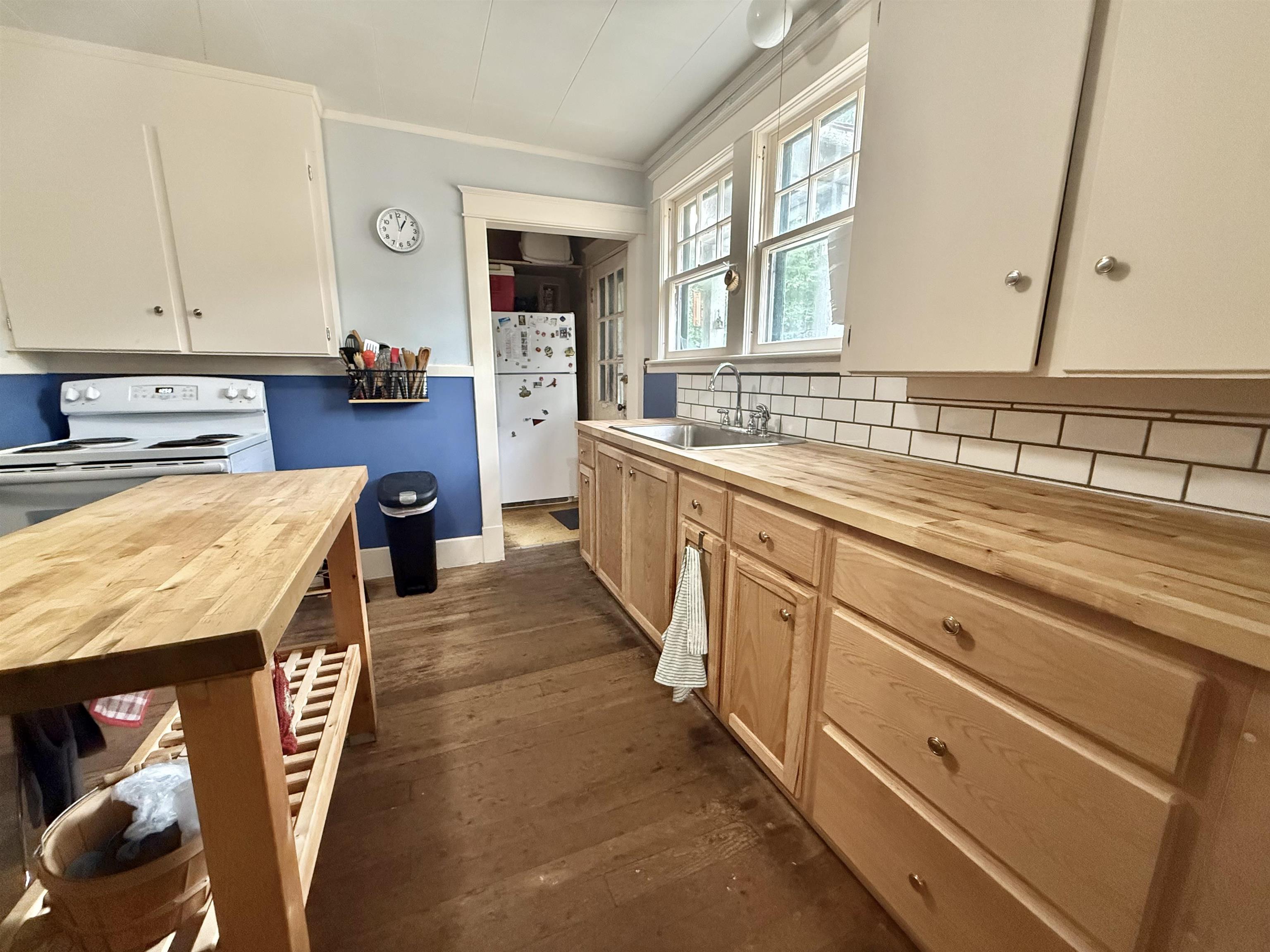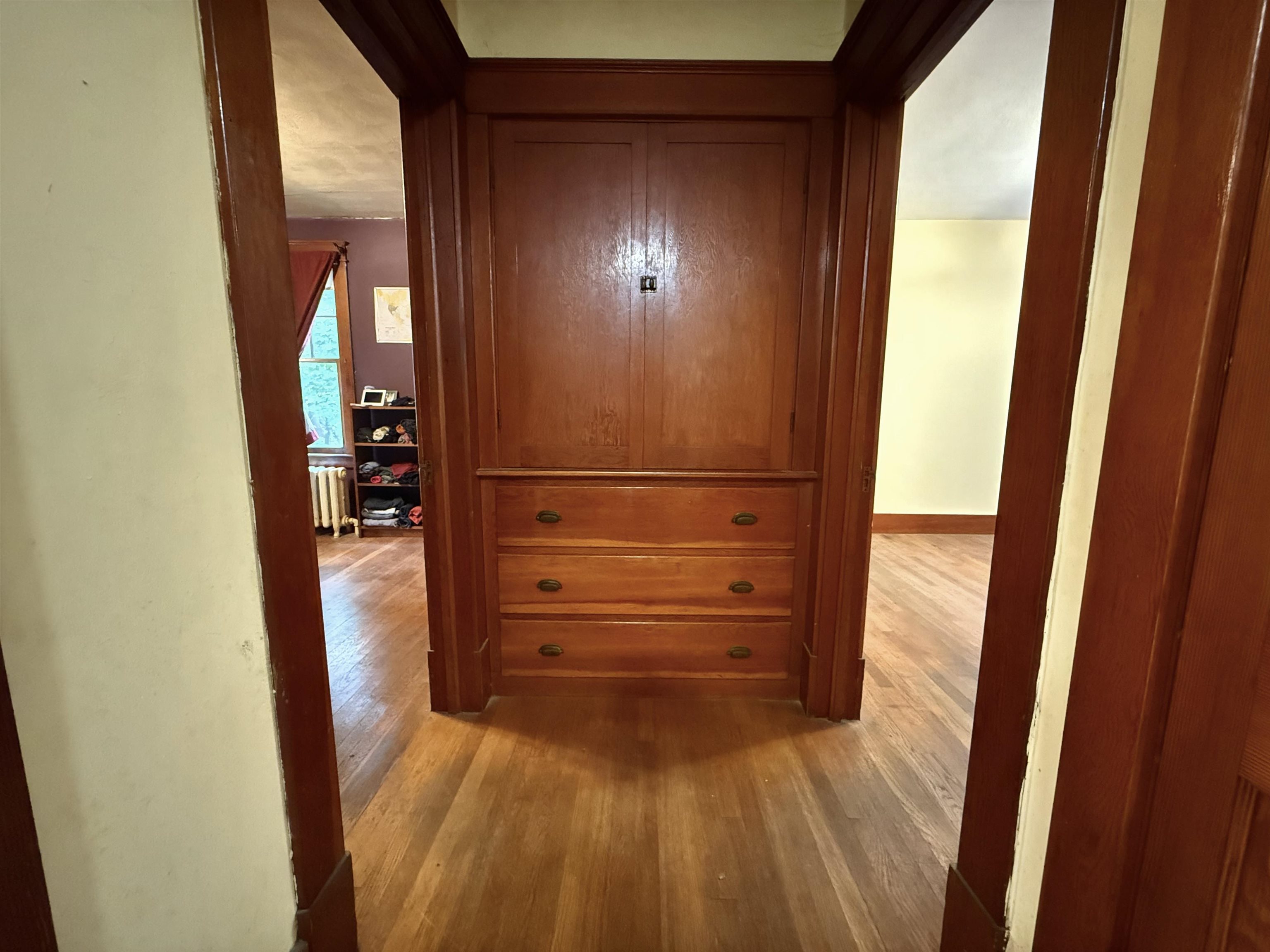 Nestled on a dead-end street, this charming home offers warmth, comfort, and a thoughtfully designed layout. The first floor features a well-appointed kitchen that flows seamlessly into the open-concept dining and living area, creating an inviting space for both everyday living and entertaining. Off the living room, a beautiful sunroom with glass doors bathes the space in natural light, providing the perfect spot to relax and unwind. Also on the main level are three bedrooms and a full bath, offering convenient single-level living. Upstairs, a spacious common area provides flexibility for a game room, second living room, or creative space. An additional room on this level serves as an ideal guest bedroom, home office, or fitness room, adapting easily to your needs. Hardwood floors run throughout the home, complemented by original built-ins that add both character and functionality, enhancing its timeless appeal. While this home could benefit from some TLC, its versatile living spaces, abundant natural light, and convenient location near local amenities make it a truly special find.