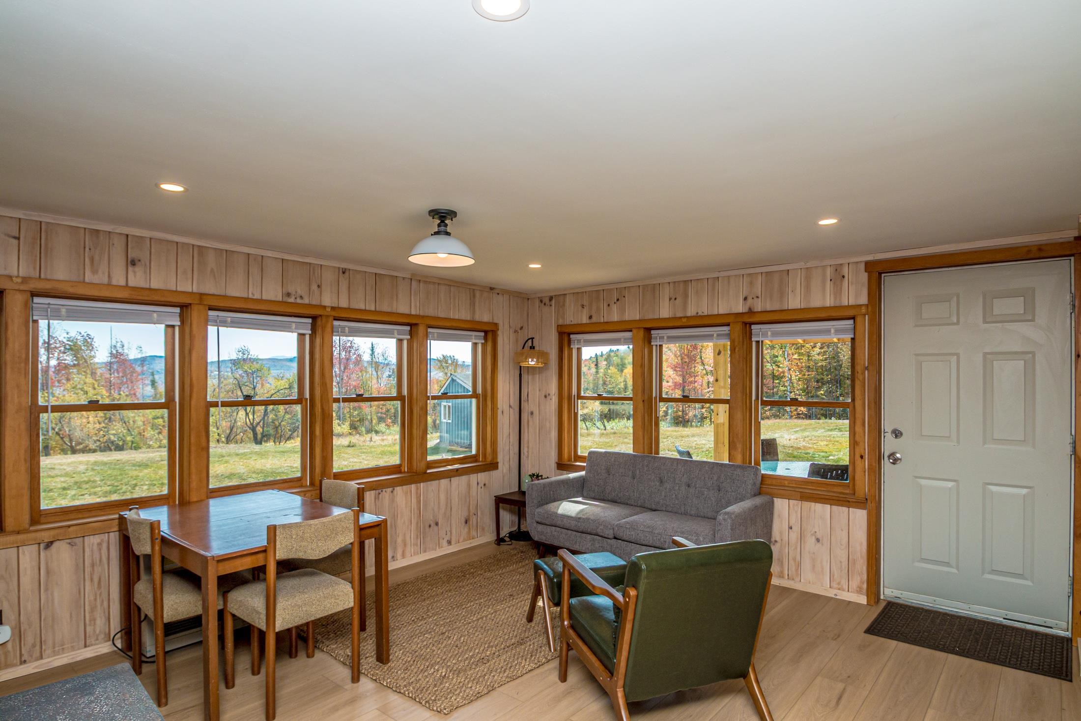 Discover this fully remodeled cabin tucked away on 7.7 acres in the Northeast Kingdom of Vermont. Featuring 2 bedrooms and 1 and 1/2 bathrooms, this home blends modern updates with rustic charm. Step onto the welcoming covered porch and into an inviting open-concept living space filled with natural light. A cozy wood stove adds warmth and character, perfect for chilly Vermont evenings. The first-floor bedroom features an ensuite bath, making for easy one-level living. Upstairs, you’ll find a spacious family room with beautiful views, an additional bedroom, and a half bath. The property includes 2 storage sheds and a small studio cabin. A brand-new septic system installed in 2024, already approved for the addition of a one-bedroom accessory dwelling unit—perfect for expanding your space or adding rental potential. Enjoy direct access to snowmobile and ATV trails right from your doorstep, making this an outdoor enthusiast’s dream. Centrally located between three ski areas and close to Littleton NH, St. Johnsbury VT, and Lancaster NH, this property offers year-round recreation and convenience. Whether you’re looking for a vacation retreat or a cozy full-time residence, this cabin provides a welcoming getaway with mountain views and endless opportunities. Seller is a licensed Real Estate Agent.