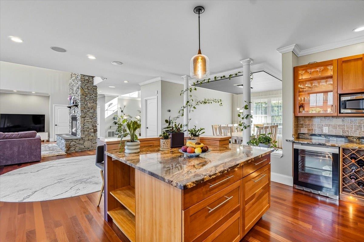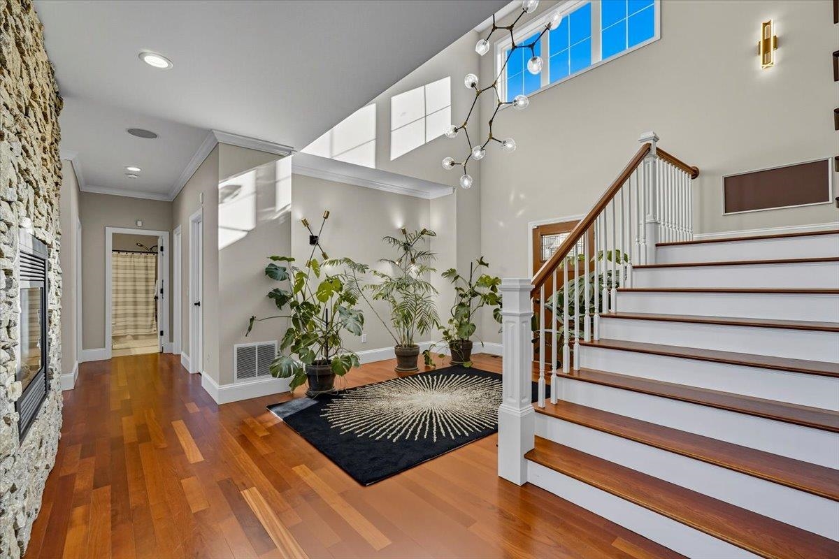 Welcome to this breathtaking luxury residence perched high above Mallett's Bay & showcasing panoramic views over Lake Champlain. Making your way down the stone-laid walkway & into the home through the full size front porch, you'll immediately feel the warmth & the pride of home ownership on display. You'll be greeted by a remarkable double-sided, 2-story stone fireplace separating the entry from the living room w/ cathedral ceilings & tall windows; the perfect spot to take in the gorgeous sunsets. The open floor plan allows for an easy flow from the kitchen to dining, living, & the screened-in porch. Down the hall is a half bath & spacious mudroom w/ built-in storage + direct access to BOTH garages. Also on the main level, you’ll find a 1st floor bedroom, full bath & a den/playroom w/ a slider to your screened-in porch. The 2nd level features a master w/ custom closet, en suite bathroom w/ a glass-doored shower, soaking tub & double vanities. There are 2 additional bedrooms + office space & full bath rounding out the upstairs. Outside, take in the outdoor oasis w/ 3.39 acres & again, the view of a lifetime. W/ multiple decks, a built-in salt water hot tub, a heated pool, beautiful patio & pool house + unparalleled privacy, this doesn't come about everyday. Nearby, over 10 acres of common land offers walking trails that lead to the bike path, a peaceful place for you to wander. Convenient location, stunning view + privacy & beautiful home, what more can you want!