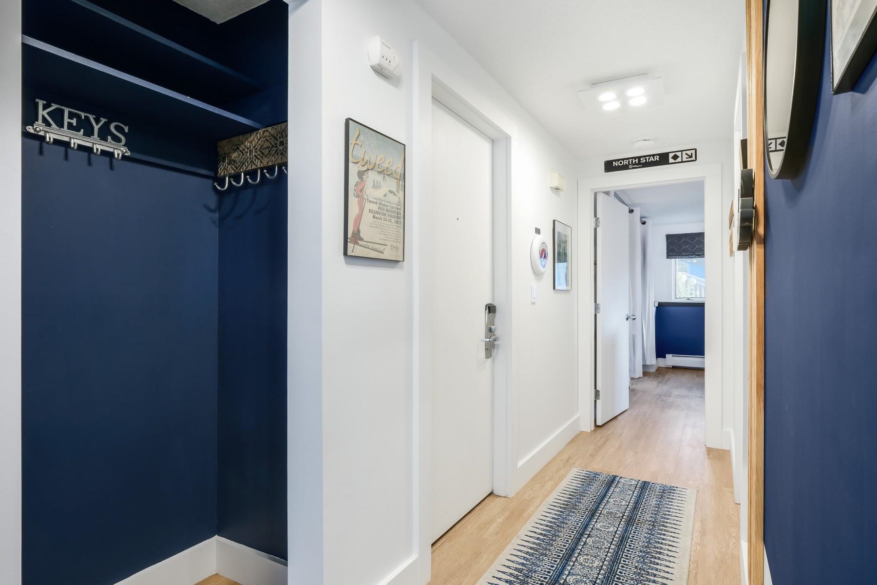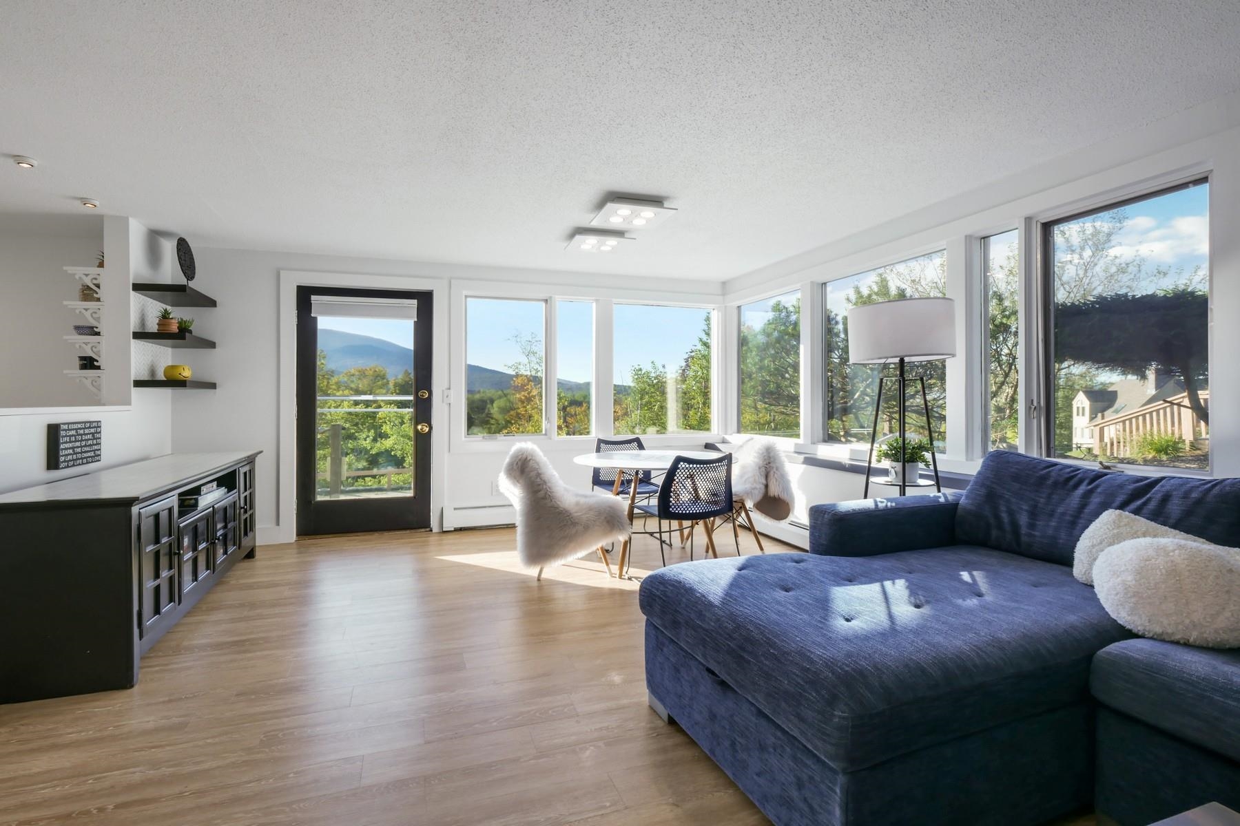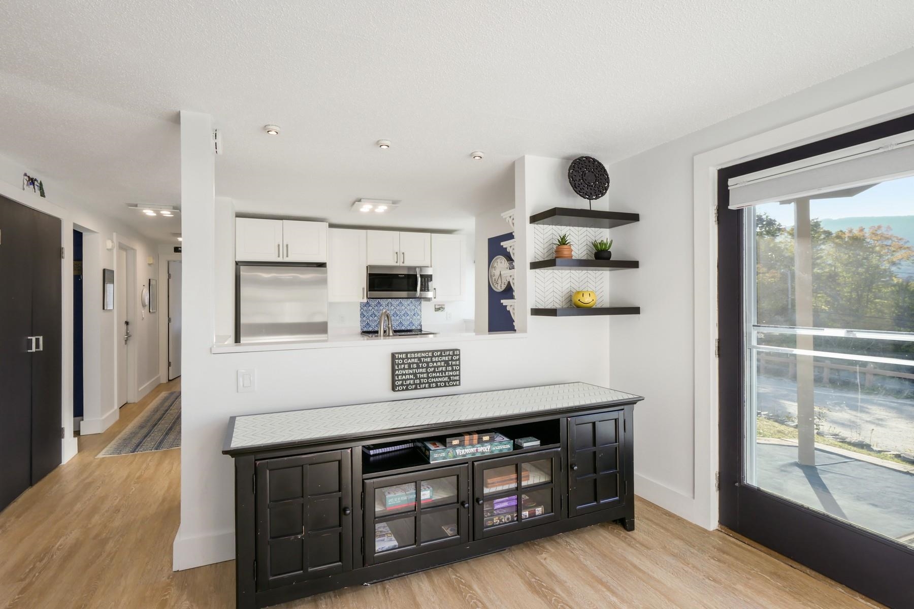 Located within one of Killington’s most sought after associations, this impeccably reimagined one-bedroom residence offers a rare opportunity to experience luxurious mountainside living with ski home accesibility. Every element of the residence has been meticulously curated, blending contemporary elegance with warmth and tranquility. A sunlit interior embraces the Scandinavian concept of hygge, where natural light and carefully appointed finishes create a serene, inviting retreat. The kitchen and bath are transformed with updated high level appliances, gleaming white quartz countertops & backsplashes, all balanced by deep navy accents that evoke both sophistication and timeless style. With the expansive kitchen, living space & private outdoor terrace, the residence offers striking vistas across the Killington Golf Course from Skye Peak to Pico, ideal for entertaining or reflection. Thoughtful storage solutions ensure that all pursuits, from winter to summer, are easily accommodated. The sports center elevates daily living, including an indoor pool, hot tub, and a fitness suite including Peloton bike and tread. Offered as both an elegant weekend refuge and a discerning investment, this residence embodies that rare balance of design, location, and lifestyle that define true luxury in Killington.