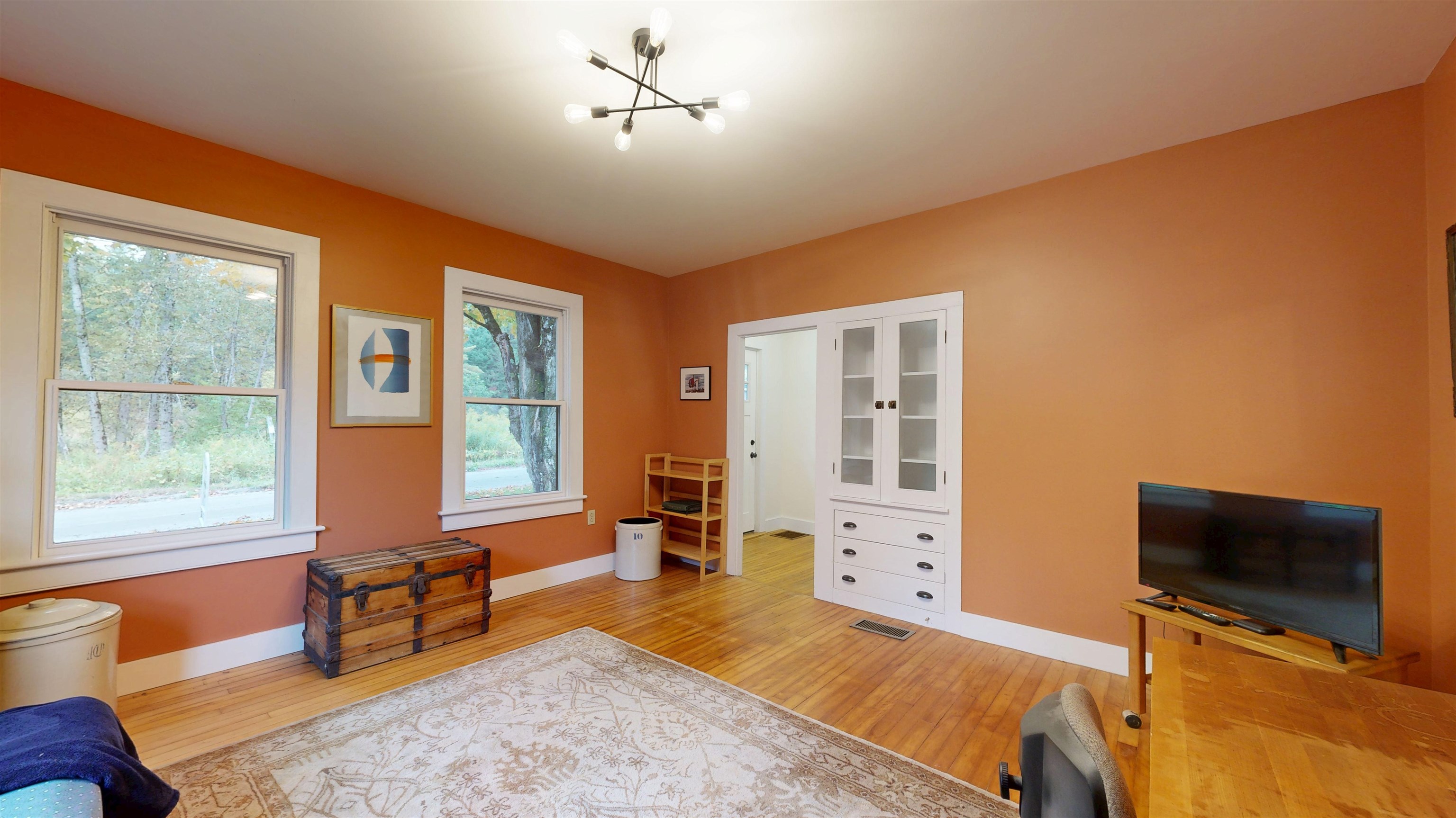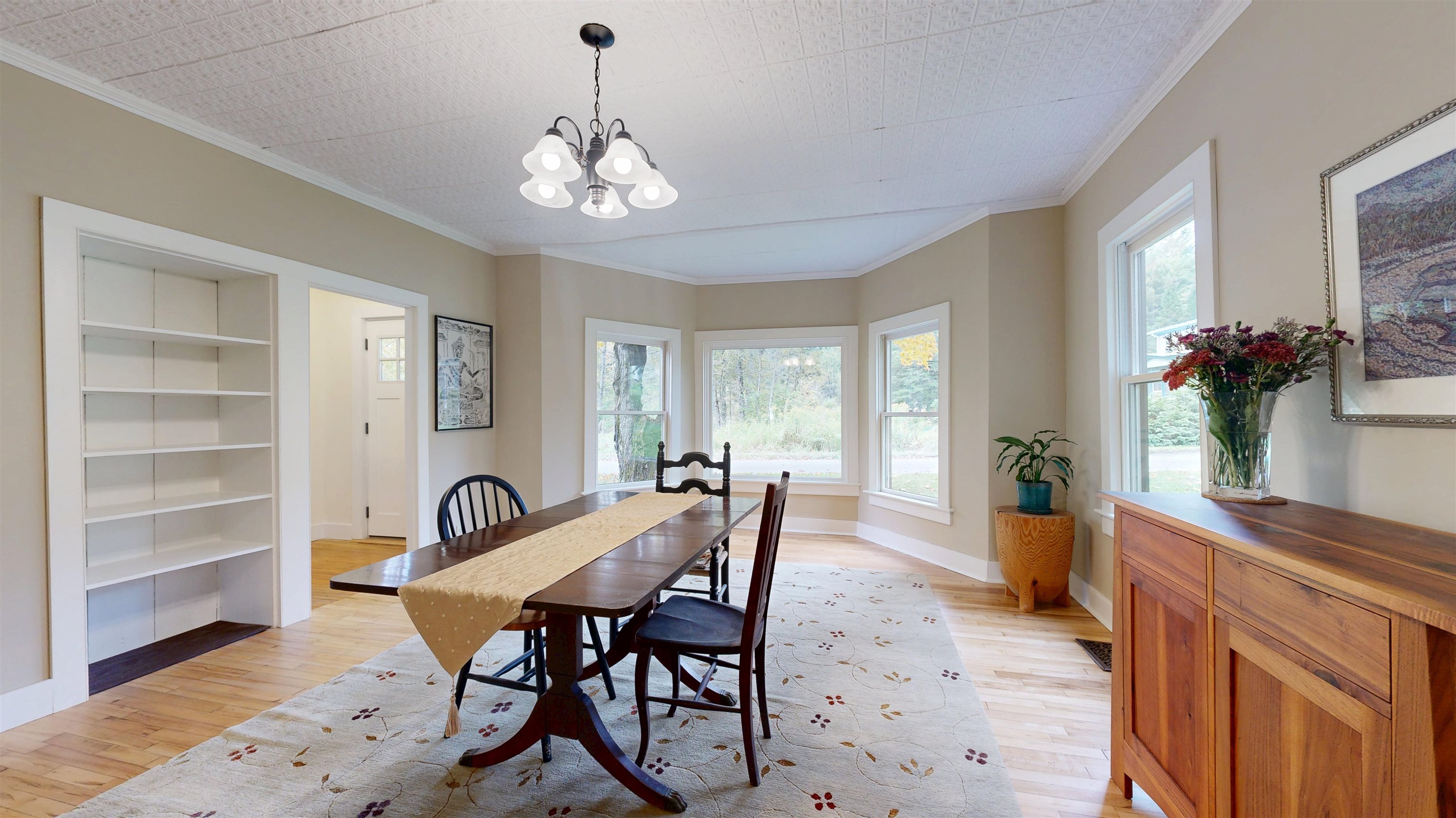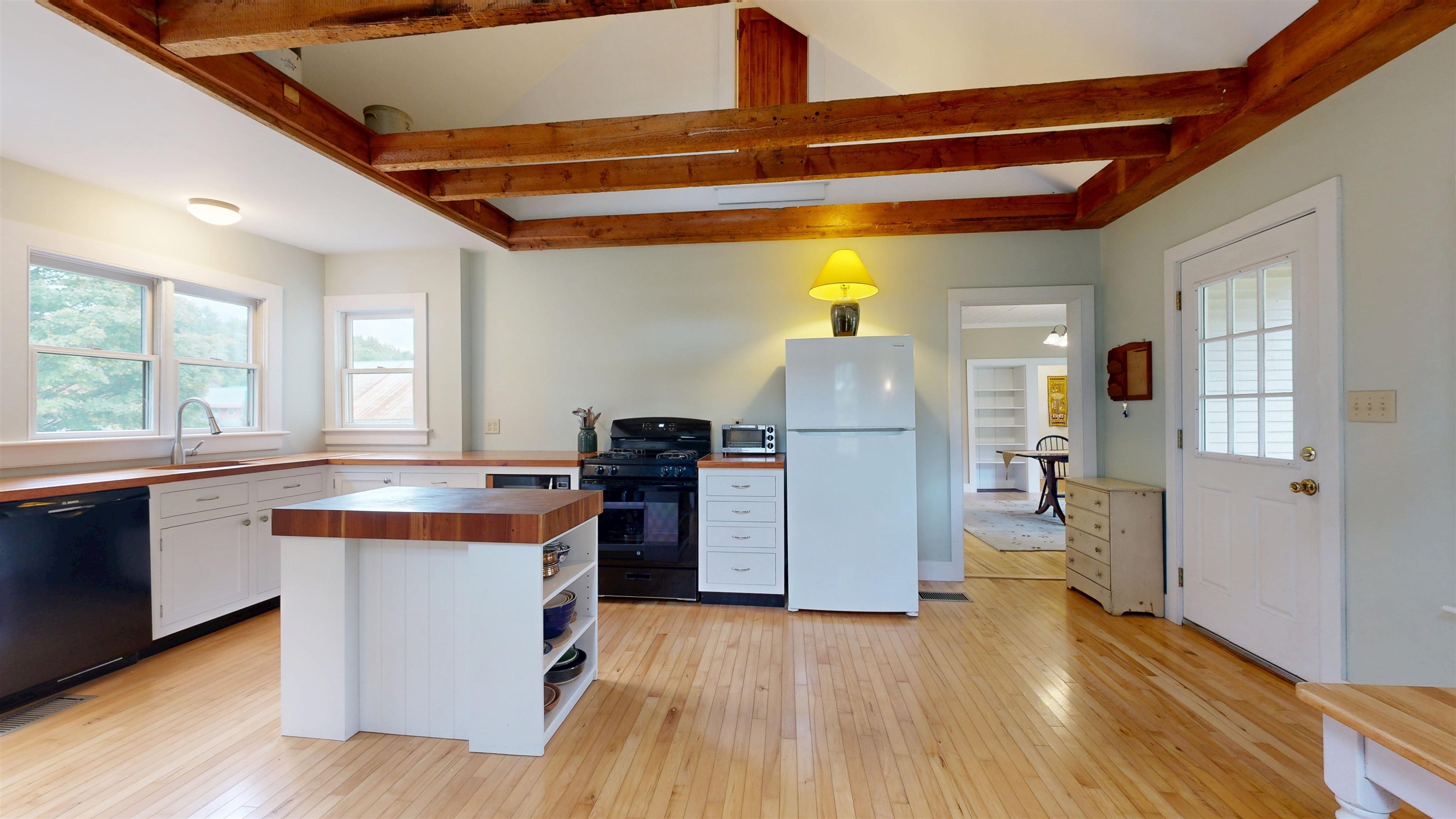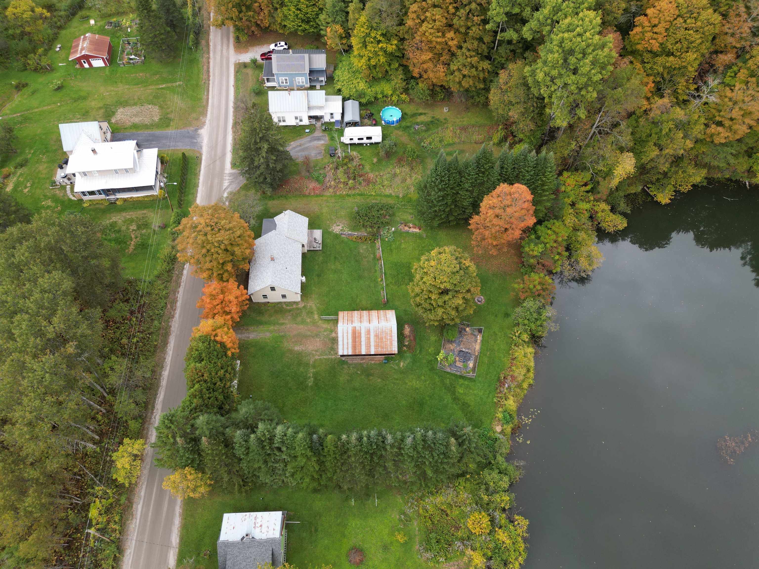 This updated classic 3-bedroom, 1-bath Vermont farmhouse offers timeless charm and everyday comfort. Overlooking North Montpelier Pond, the home includes two kayaks for paddling adventures just steps from your door. Whether enjoying morning coffee on the covered porch or harvesting fresh berries from the garden, life here feels deeply connected to the seasons. The property is surrounded by lush perennial gardens, vegetable garden, raspberries, and blueberries, creating a setting as vibrant as it is peaceful. Inside, the heart of the home is a custom kitchen with butcher block countertops, Cherry Island accents, a walk-in pantry with built-ins, vaulted ceiling and is open to a sunny dining nook with wood stove. A welcoming living room, cozy den, and convenient first-floor bedroom and laundry add warmth and ease to daily living. Hardwood floors highlight the main level, while softwood floors upstairs enhance the farmhouse charm. With a back deck for evening sunsets and a detached oversized two-car garage/workshop, this home beautifully blends romance, comfort, and the Vermont lifestyle.