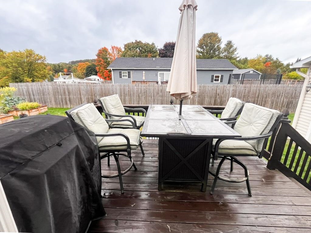 This charming Ranch-style home offers the ease of single-level living with a thoughtful layout. The main floor includes three generously sized bedrooms and an updated full bath, perfect for family or guests. At the heart of the home, the brand new kitchen opens to a cozy deck—an inviting spot for your morning coffee or evening meals. The finished basement adds valuable living space, complete with a spacious family room ideal for entertaining, hobbies, or simply relaxing. A bonus room off the family area provides flexibility as a home office or an extra bonus room. This level also includes a ¾ bath and a dedicated laundry room for added convenience. An attached, fully insulated, and heated garage offers a year-round workspace or storage option. For even more storage, a 10x20 outbuilding with garage doors on both ends is located behind the home—perfect for snow machines, lawn equipment, or additional vehicles. Seller is leaving the patio set, bbq grill and pool table for your enjoyment! With its versatile spaces, practical amenities, and warm character, this home is ready to welcome its next owner! CUFSH - Identified