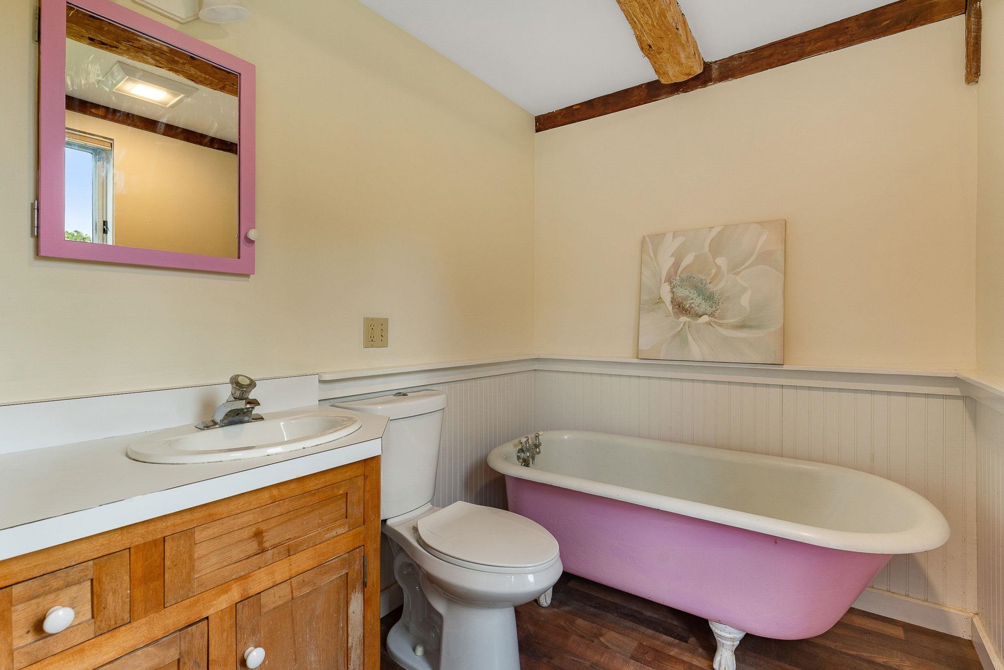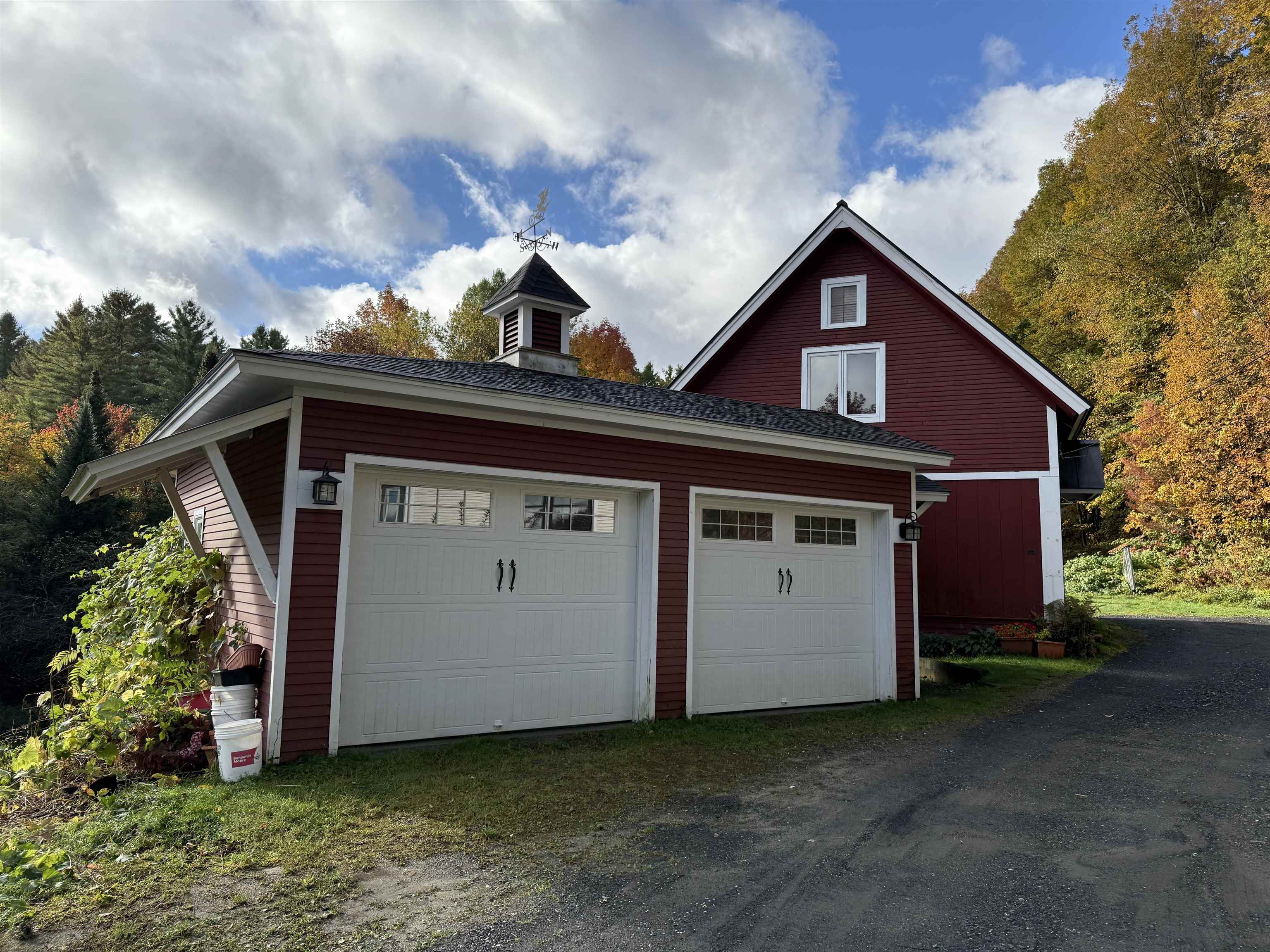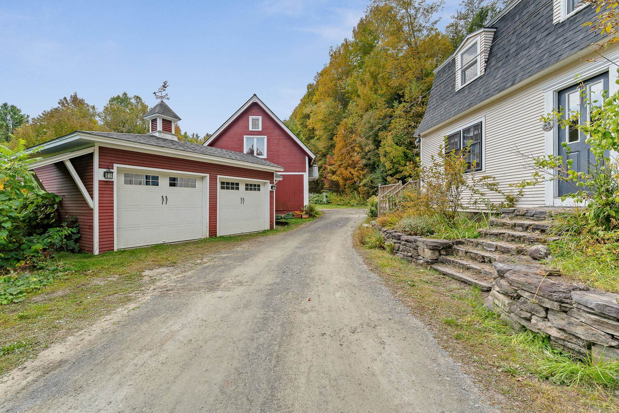 The possibilities are plenty with this Duxbury home. Two homes for the price of one! The main house is a gambrel style home that was added on to a modest 1840's home. The antique section is now the great room with a hearth, wide plank wood floors, barn board walls and all the charm in the world. Together, there are 4 bedrooms, dining area, kitchen with peninsula, built in cherry furniture and tiled kitchen counters. A wood stove and hearth in the kitchen makes the space inviting. The main floor has two smaller rooms that can be used for an office or cozy den. The primary en suite bedroom and full bathroom with walk in closet is upstairs along with 3 other bedrooms, and a 3/4 bath. There is a laundry room on the second floor. The guest house is right next door with easy step entrance, cozy kitchen, high ceiling and beams. A bedroom and full bathroom are on the first floor along with a washer and dryer. The second floor has another bedroom and 3/4 bath. The wide beams add to the ambience of this country guest house allowing loads of light and access to french doors that lead to a deck with beautiful views of the backyard and the forest. Minutes to Sugarbush Valley and Ski Resort, Waterbury restaurants, breweries, shops and recreation. Subject to final zoning approval, the 5.1 acre lot is not too far up Crossett Hill and provides a combination of open, sunny areas with landscaped vignettes and lush, wooded glens with wildflowers and shady trees.
