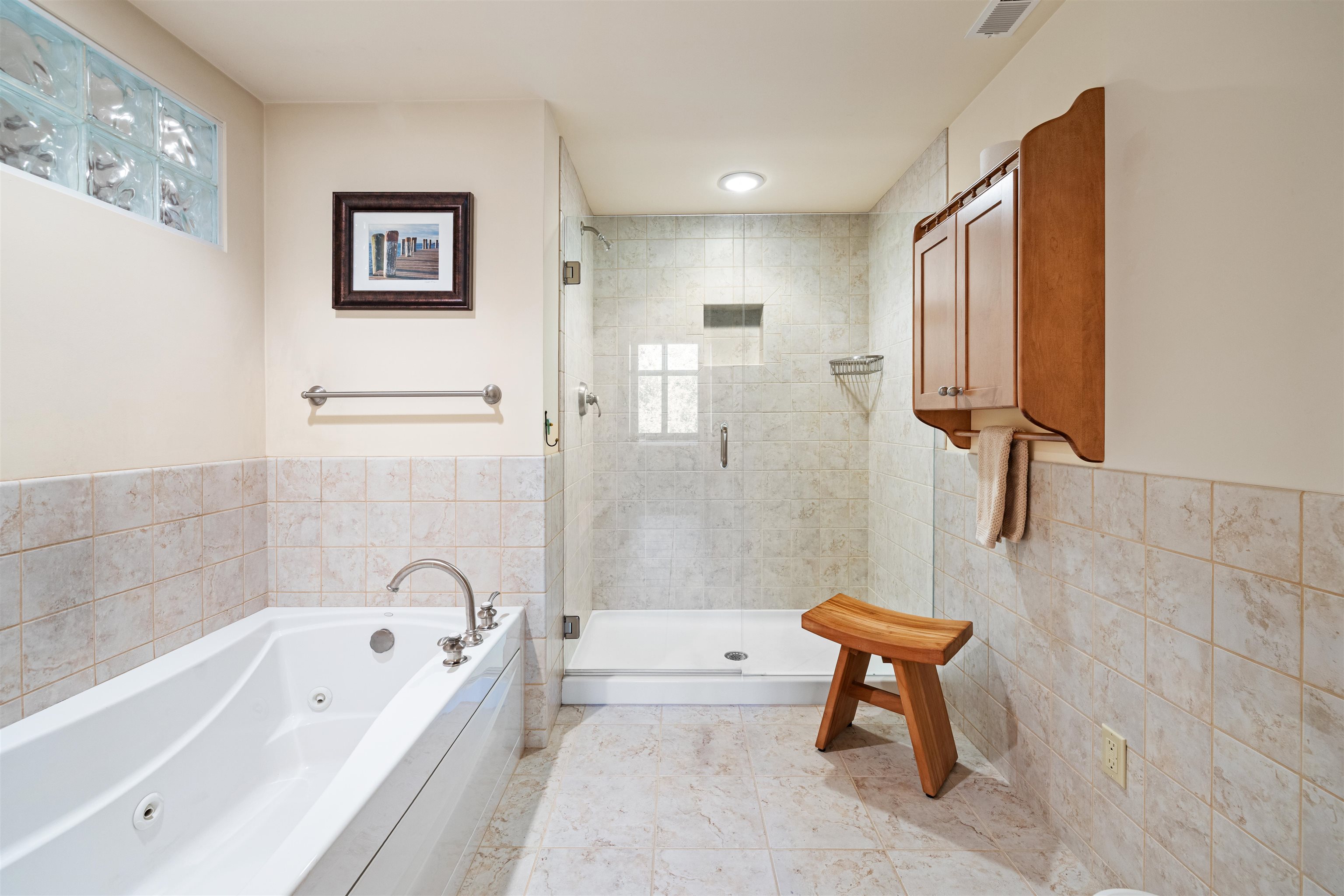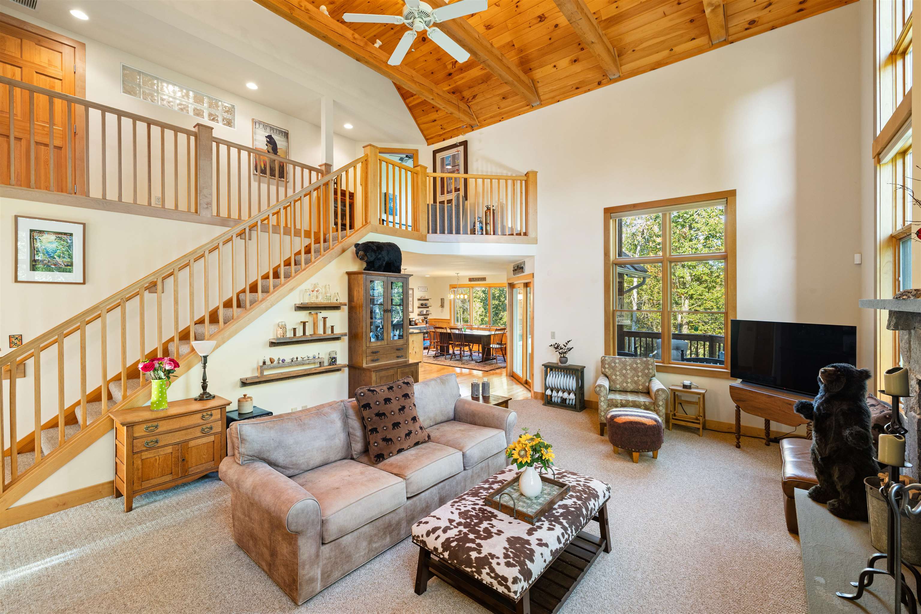 - Cathedral Ceiling, Ceiling Fan, Dining Area, 1 Fireplace, Kitchen/Dining, Primary BR w/ BA, Natural Light, Soaking Tub, 1st Floor Laundry