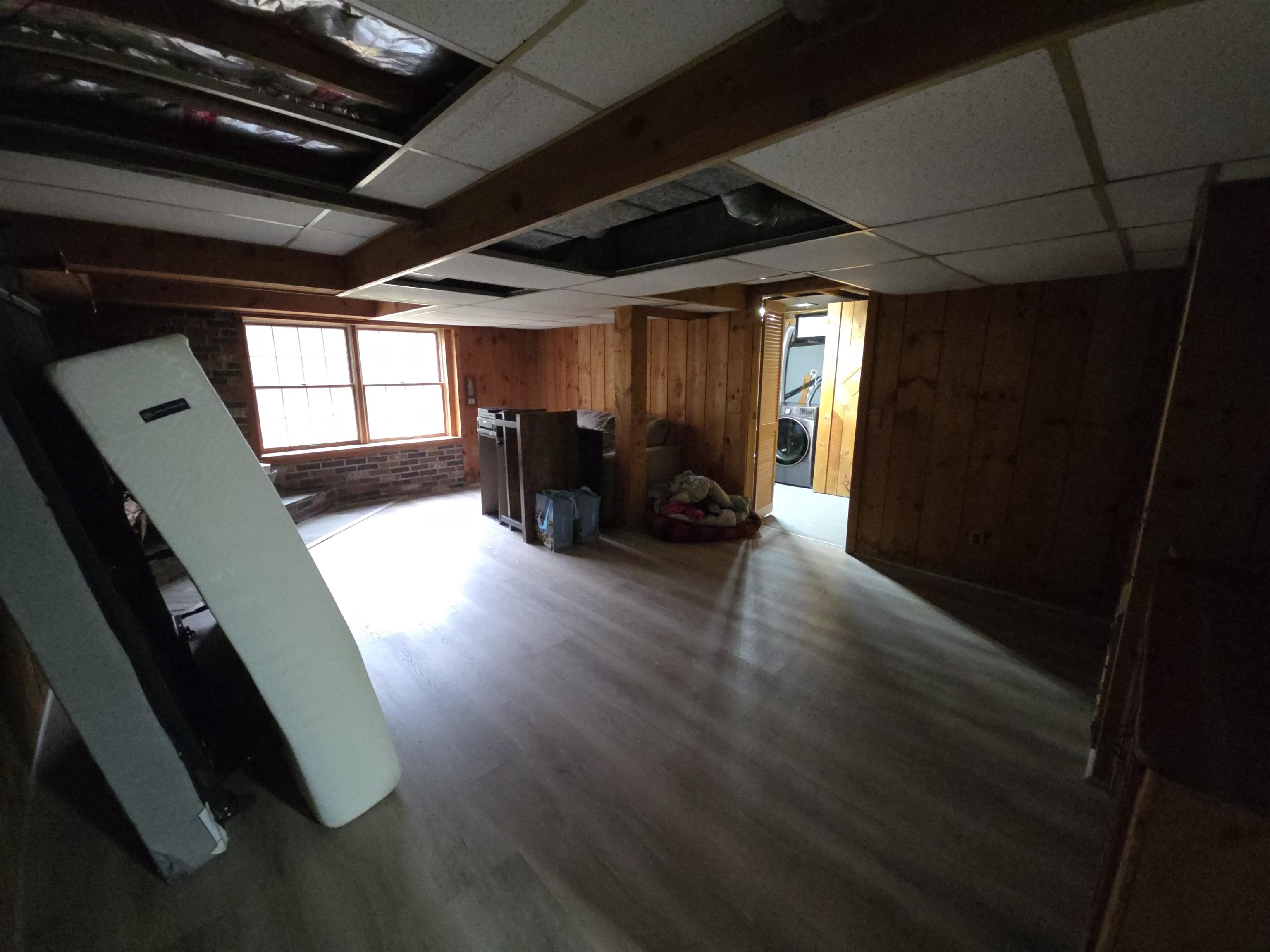 - Concrete, Concrete Floor, Partially Finished, Interior Stairs, Basement Stairs
