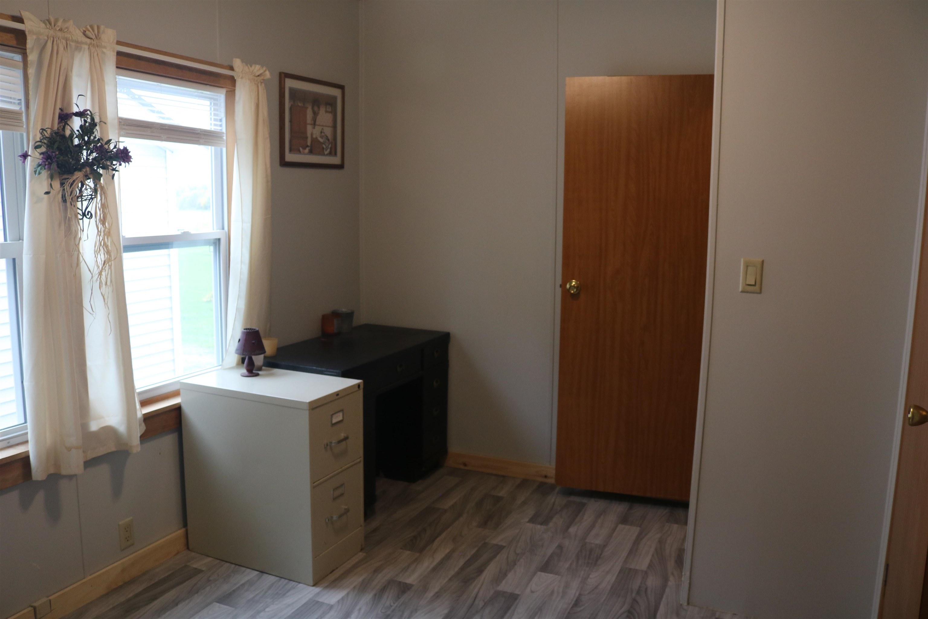 Affordable one level living with village amenities and over an acre yard! Efficient and easy maintenance plus a 2 car garage and 2 sheds for extra storage. Dead end road with beautiful views. Owner financing available with large down payment $20, 000 or more. Cash discount for buyers who can buy without financing.