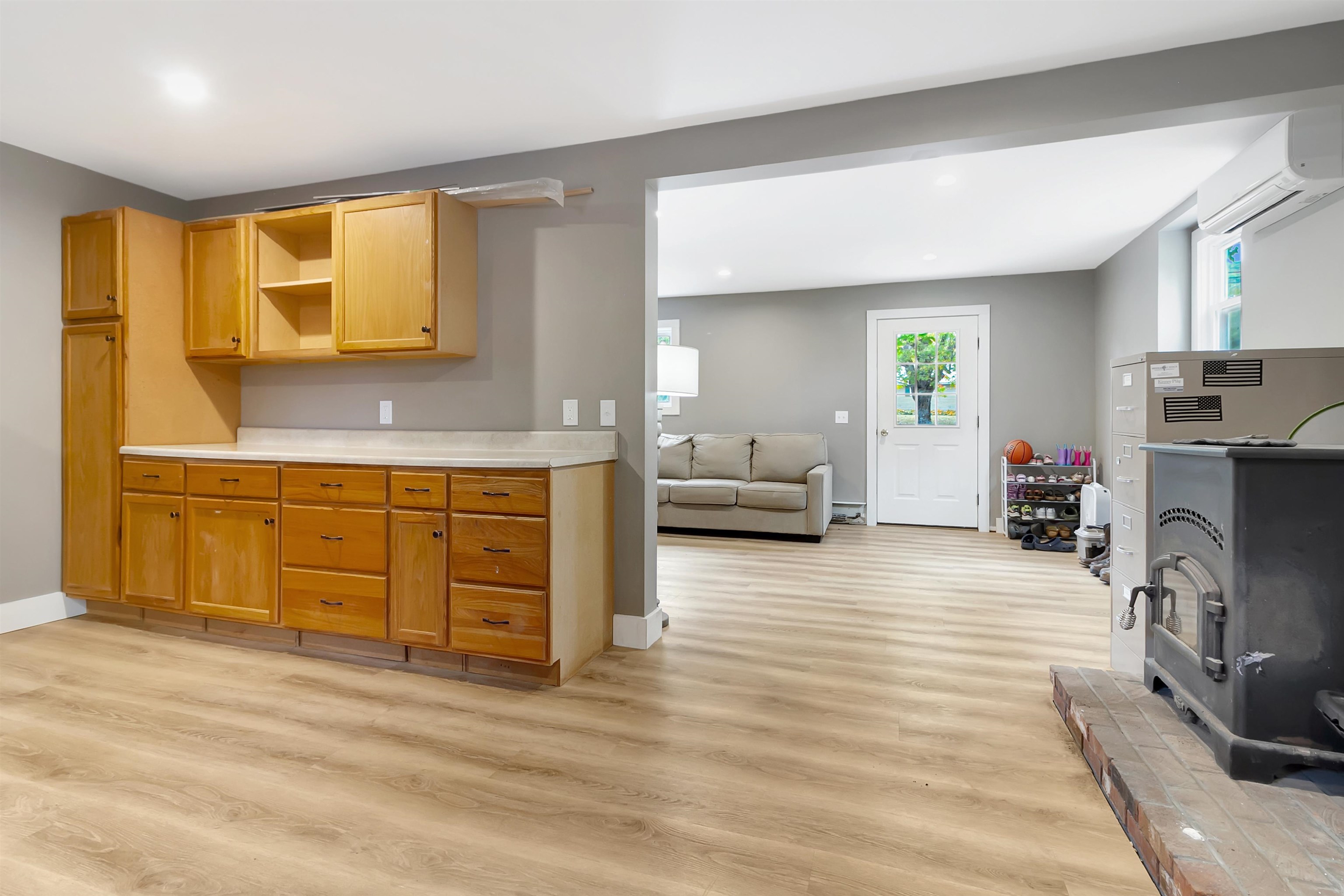 Welcome to Vermont living at its best! Just minutes from the quaint downtown of Wallingford, this spacious and updated home blends country charm with modern comfort. The main level features three bedrooms and a full bath, highlighted by an inviting L-shaped kitchen with newer cabinets, granite countertops, and a sun-filled island perfect for gathering. Hardwood floors throughout add timeless character. Step outside to a 700 sq ft TimberTech deck with a Carvin 24' pool, all overlooking sweeping mountain views on 3 acres, complete with a short path to the creek—an ideal spot to sit, relax, and fish. The lower level offers durable LVP flooring, a full kitchen, and a flexible living area—perfect for multi-generational living or rental potential. Three newly installed heat pumps—in the primary bedroom, a second bedroom, and the lower-level living area—ensure year-round comfort and efficiency. For hobbyists or homesteaders, the property also includes a barn with a 50-amp panel, interior lighting, and exterior spotlights. Whether you’re seeking a peaceful countryside retreat or the convenience of town, this property is ready to welcome you home.