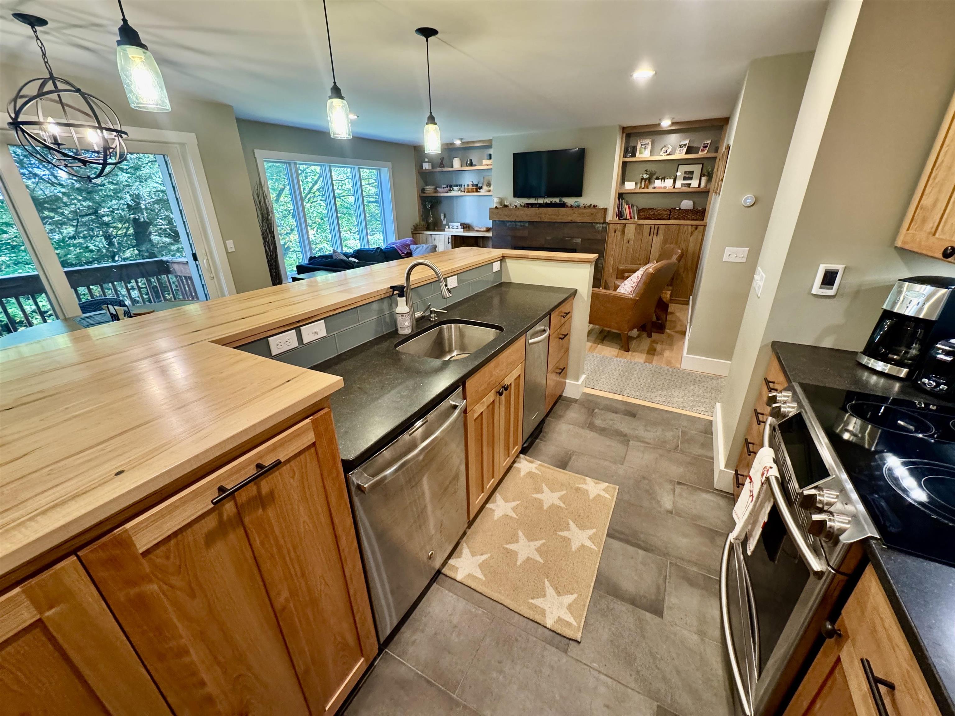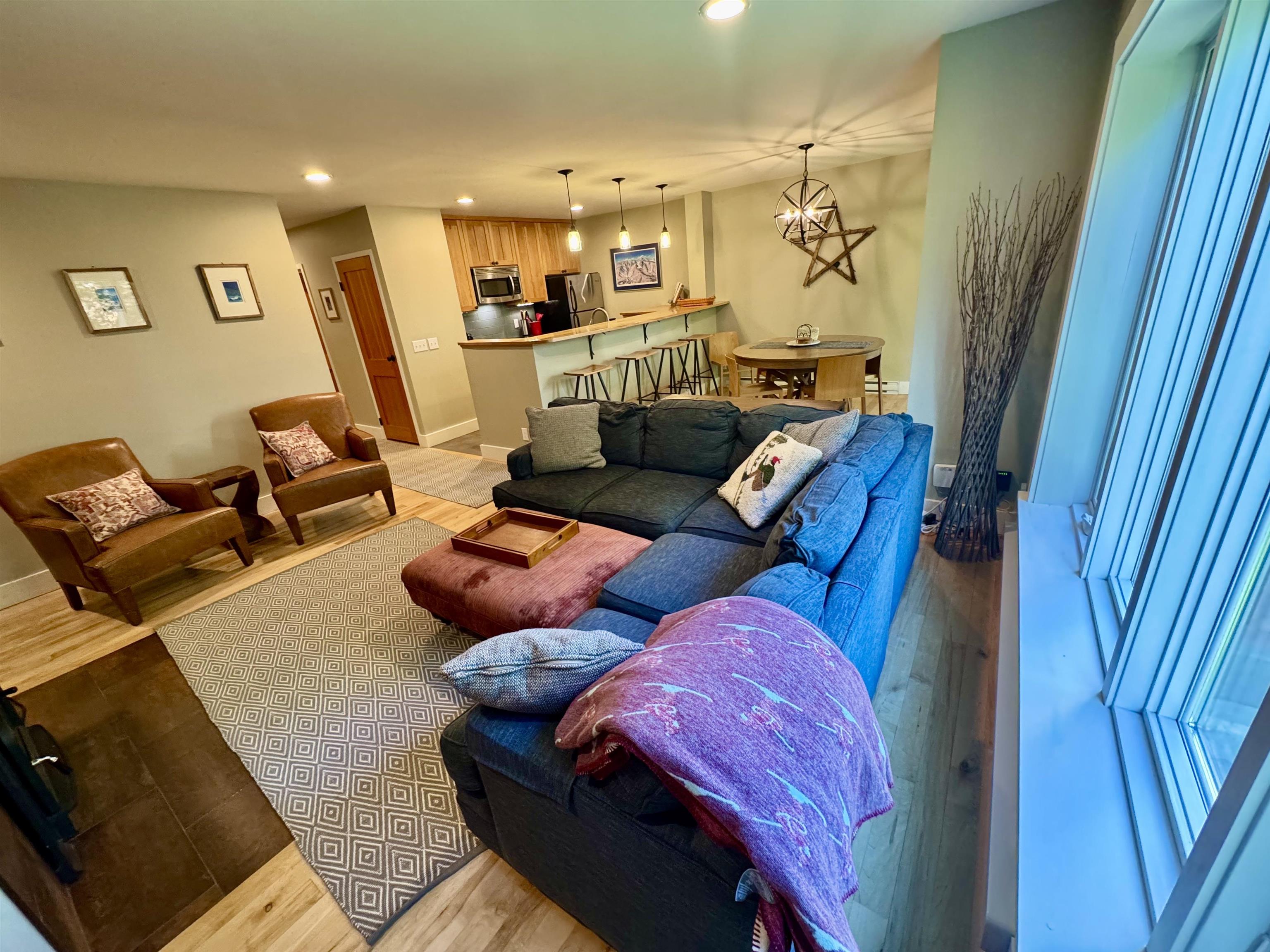 This beautifully renovated second-floor unit at the highly sought-after complex offers both style and convenience in the heart of Sugarbush. The open-concept kitchen features striking soapstone counters, a maple dining bar, and radiant-heated slate tile floors that flow seamlessly into the mudroom. Throughout the home, you’ll find hardwood floors, solid wood doors, nice carpeting in the bedrooms, high-quality fixtures, and a wood-burning fireplace insert that creates a warm, inviting atmosphere. A newer washer/condensing dryer adds to the ease of living. Enjoy a wide range of amenities just outside your door: a heated summer pool, world-class mountain bike trails, disc golf, and hiking. For golfers, the Robert Trent Jones, Sr. Golf Course is only minutes away. And, of course, legendary Sugarbush skiing is just steps from your front door—making this an ideal year-round mountain retreat. Showings begin on 10/3/2025.