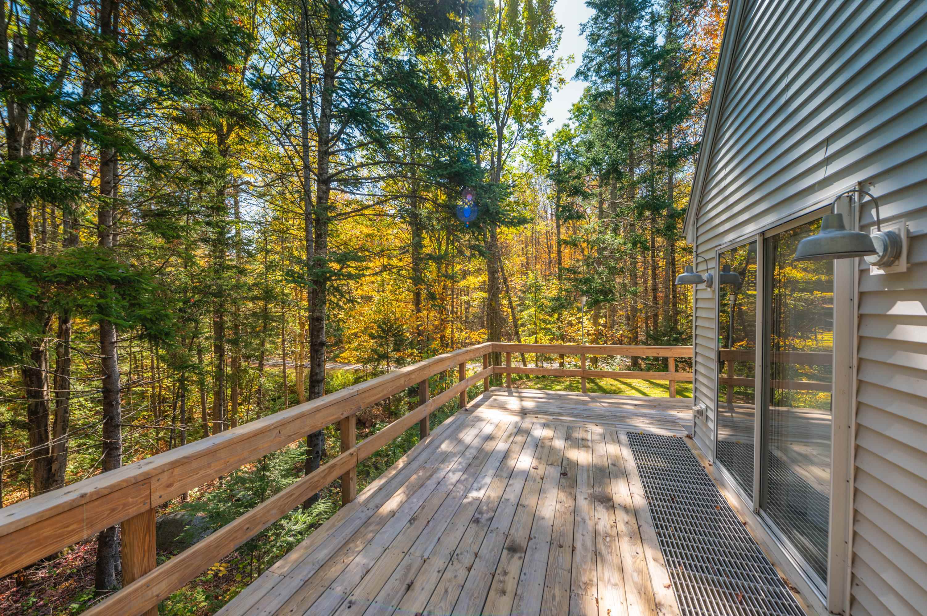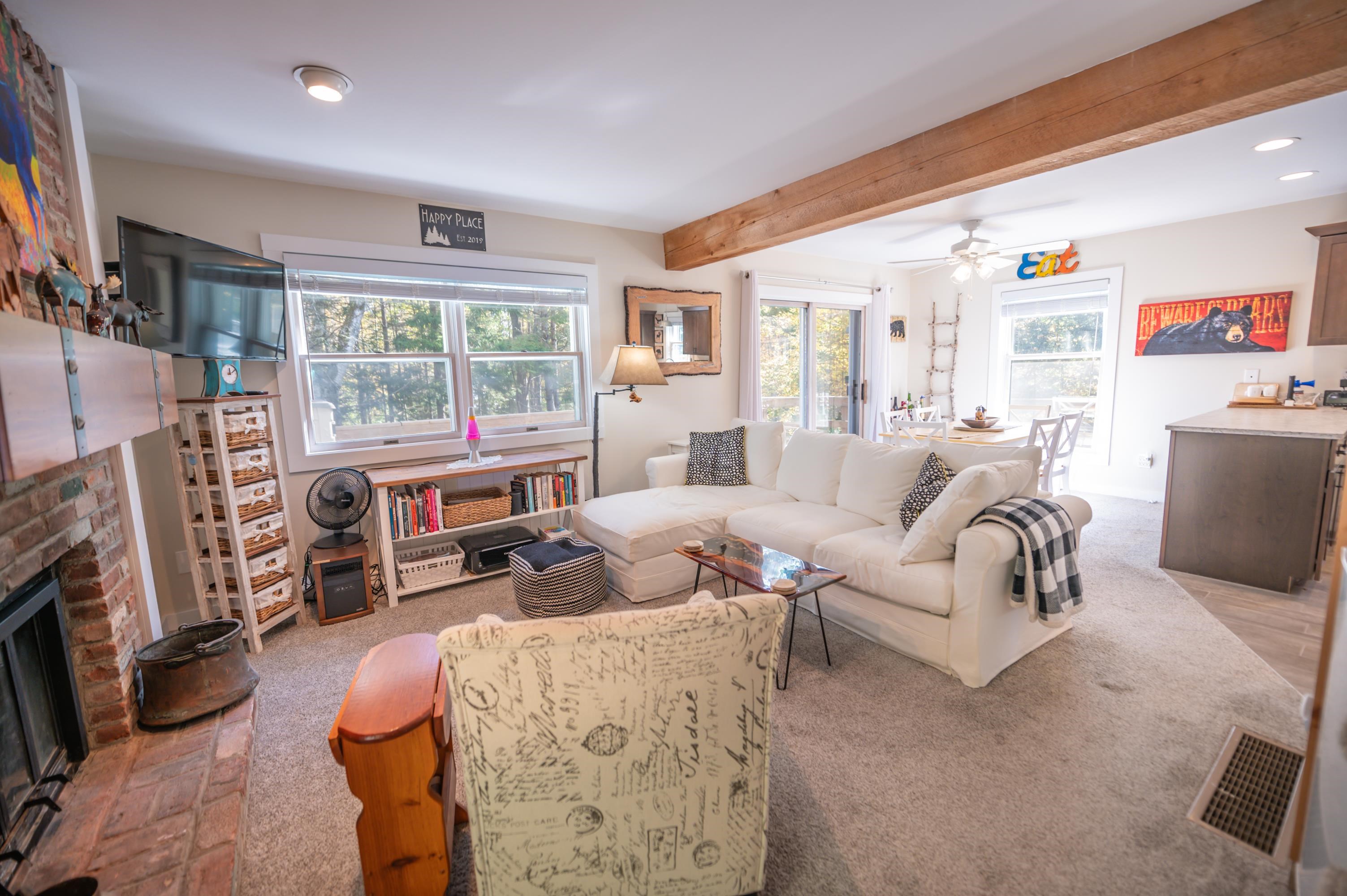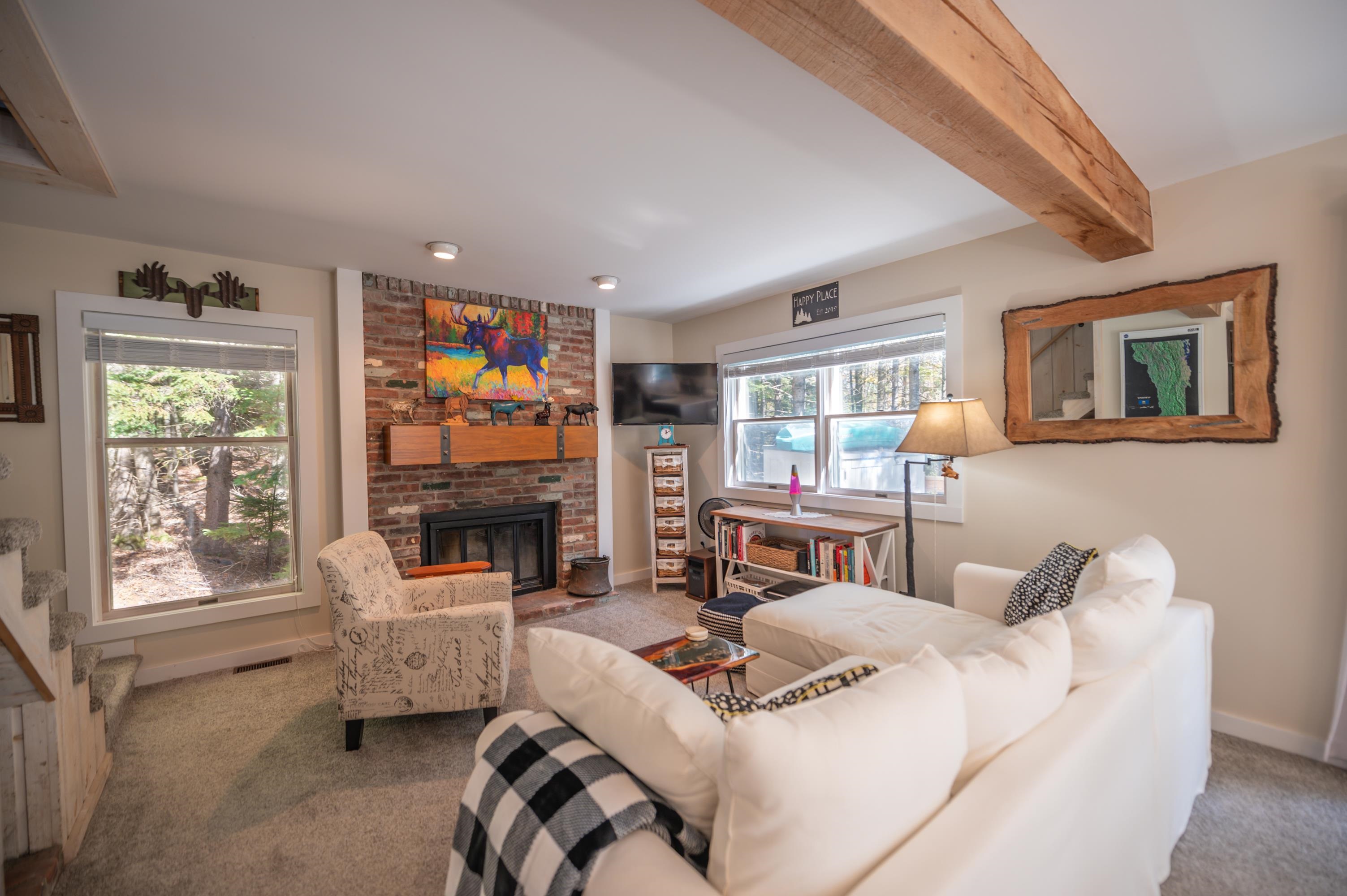 This beautiful bright chalet is on a quiet corner lot in the lower section of the Chimney Hill community with easy access to trails, hiking, lakes, and nearby Mount Snow. Nice lawn space, a cul de sac driveway for ample parking, and shed, make this a unique year round parcel, affording nice privacy yet with all the conveniences of community living. The interior was gut renovated in 2019 and boasts an open concept living space with natural light and large windows, an updated kitchen with stainless appliances, custom cabinets, and quartz counters, a spacious dining area with slider to the large wraparound deck, a cozy living room with wood fireplace and brick hearth, a main floor bedroom and full bath, 2 upstairs bedrooms and a second fully updated bath, and a main floor mudroom and laundry area great for all your seasonal gear. Less obvious upgrades include a metal roof, poured concrete foundation and crawlspace with interior and exterior access, professional vinyl siding, and convenient garden shed and bear proof trash bin. This comes with all the great Chimney Hill amenities including road maintenance, community water, clubhouse with indoor and outdoor pools, hot tub, game room, theater, playground, tennis courts, basketball, gym, and more. There are also a la carte services including plowing, sanding, and trash pickup. A lovely spot that affords Vermont charm and serenity, with easy management.