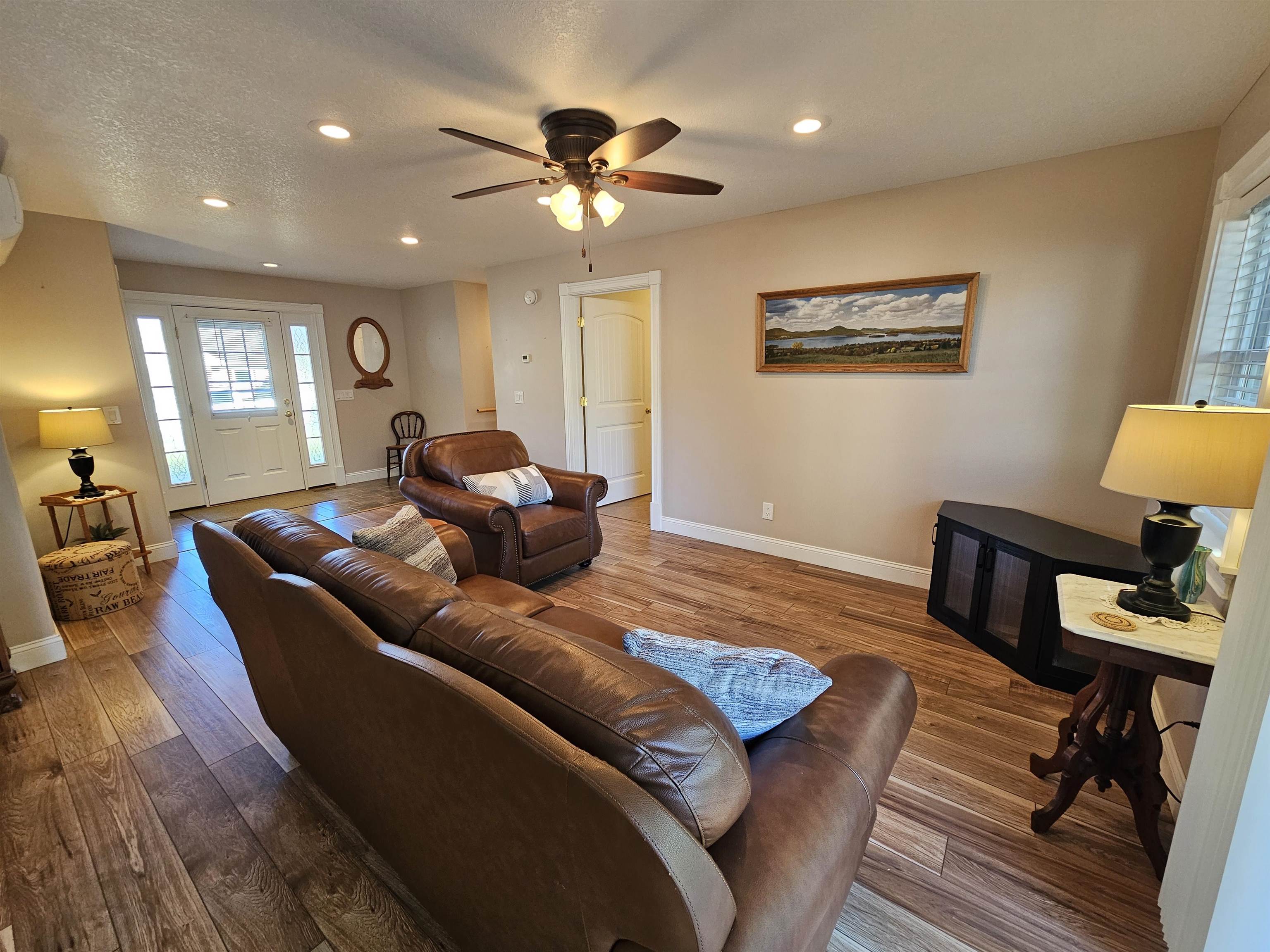 - Blinds, Ceiling Fan, Dining Area, Kitchen/Dining, Living/Dining, Primary BR w/ BA, Natural Light, 1st Floor Laundry