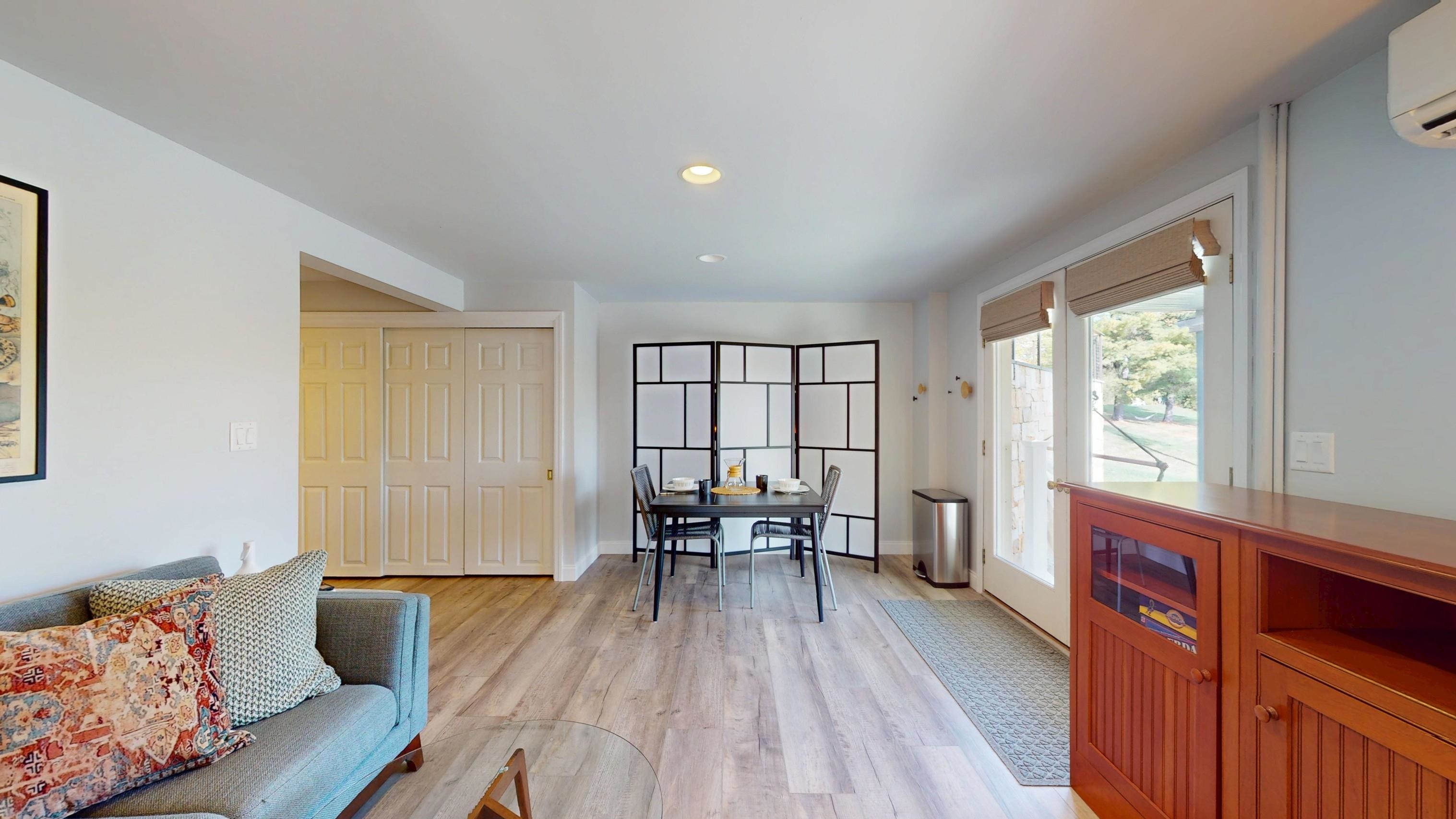 - Blinds, Cathedral Ceiling, Ceiling Fan, Dining Area, Hearth, Living/Dining, Primary BR w/ BA, Natural Light, Natural Woodwork, Indoor Storage, Vaulted Ceiling, Basement Laundry