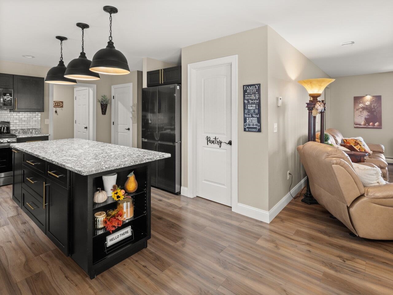 Newer construction & move-in ready! This low-maintenance, energy-efficient home has been fully inspected, professionally cleaned, & is ready for its new owners! Designed with modern living in mind, it offers a thoughtful layout & lots of room for expansion with a full insulated basement & oversized attic over the garage. Enjoy a bright open floor plan with abundant windows & luxury vinyl plank flooring throughout the main level. The kitchen is a chef's delight featuring quartz countertops, oversized island with seating, walk-in pantry, soft-close cabinetry with brass hardware, crisp subway tile backsplash, contemporary lighting, & high-end appliances, including a Samsung Smart Flex refrigerator & Smart natural gas stove. The main level includes a flex room adjacent to a 3/4 bath, plus a mudroom off the garage. Upstairs, you'll find 3 bedrooms, an office nook, laundry closet, & spacious primary suite with walk-in closet, double sinks, & step-in shower. Bathrooms showcase ceramic tile floors, while soft neutral carpet enhances the second level. The full basement with egress windows offers future potential for a home gym, theater, or game room. Outdoor spaces include a wide front porch facing perennial gardens, a private rear deck shaded by woods, & lots of garden space. Modern systems include a Navien natural gas boiler with on-demand hot water, EV charger, 200 AMP panel, gutter guards, public water, & inspected on-site septic. Parking for 6+. Schedule a showing today!