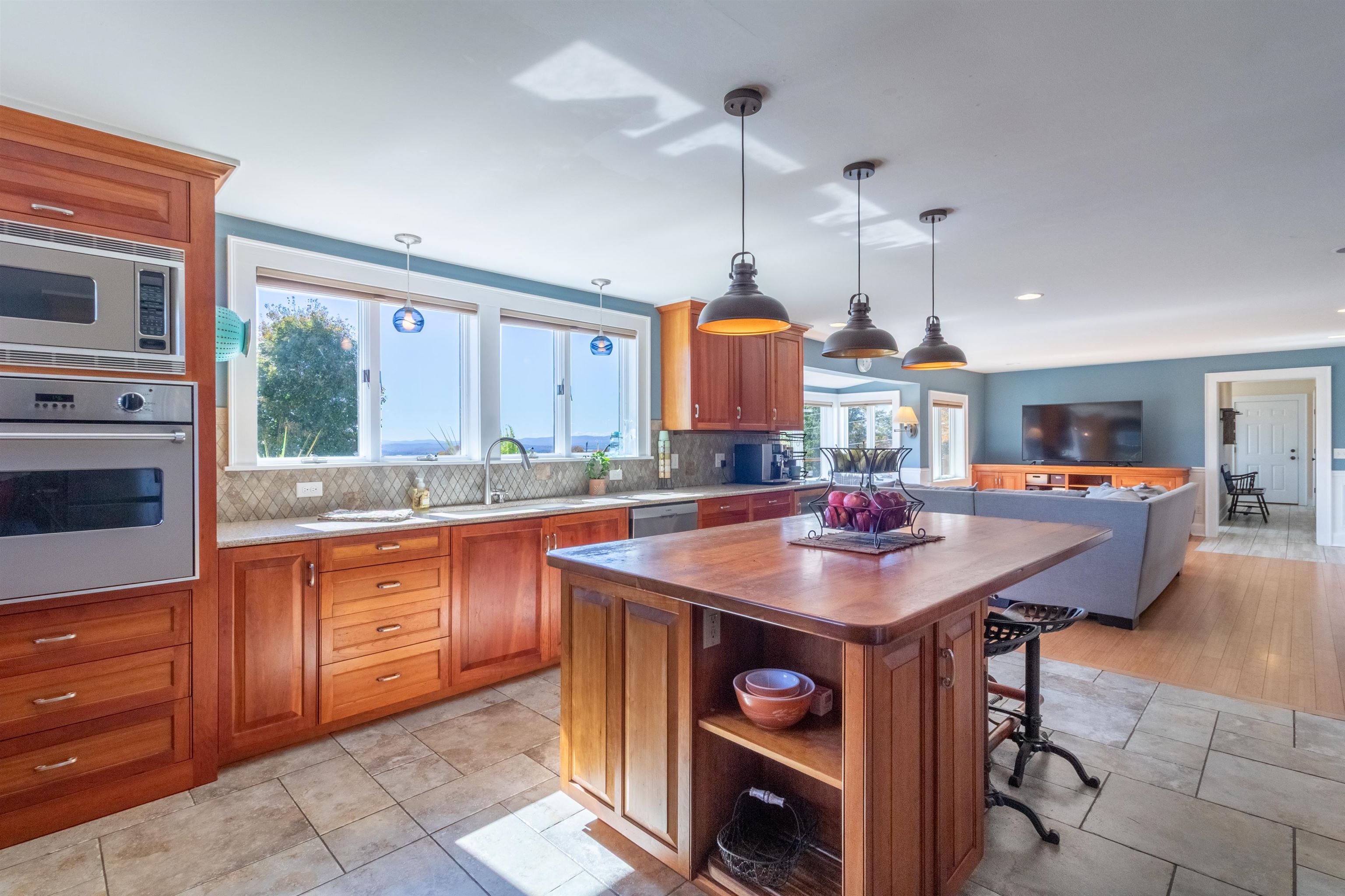 Graceful 27.3-acre farm with stunning Burke Mountain views offers a rare combination of beauty, functionality, and sustainability. The land features open fields, pastures, wooded areas, a stream, and a pond, all thoughtfully cultivated with years of sustainable farming practices. Orchards boast 100+ fruit trees, and extensive berry gardens, a 30x40 raspberry patch, 28+ raised beds, and 4 gardens. Additional highlights include a 120-tap mature sugarbush, native plantings, lilacs, hoop houses, greenhouse, and multiple barns for animals, equipment, and storage. The impressive 5, 000± sq. ft. residence offers 5 bedrooms, 5 baths, and views in every window. A wraparound deck, walkout basement, and oversized 2-car garage enhance convenience. Inside, wood and tile floors flow throughout, with wide king plank flooring upstairs. The main level features an open kitchen/dining/living layout with granite counters, bay windows framing stunning southern mountain views, laundry, and 2 baths. The second level hosts the primary suite with tiled shower and spa tub overlooking Burke Mountain, plus 3 more bedrooms and full bath. A third-level bonus space and large family room over the garage provide versatility. A root cellar, canning kitchen, and walk-in basement complete the home. Located just 12 minutes to Burke Mountain, 10 minutes to Lake Willoughby, and minutes to Kingdom Trails, this remarkable property offers an unmatched lifestyle in Vermont's Northeast Kingdom.