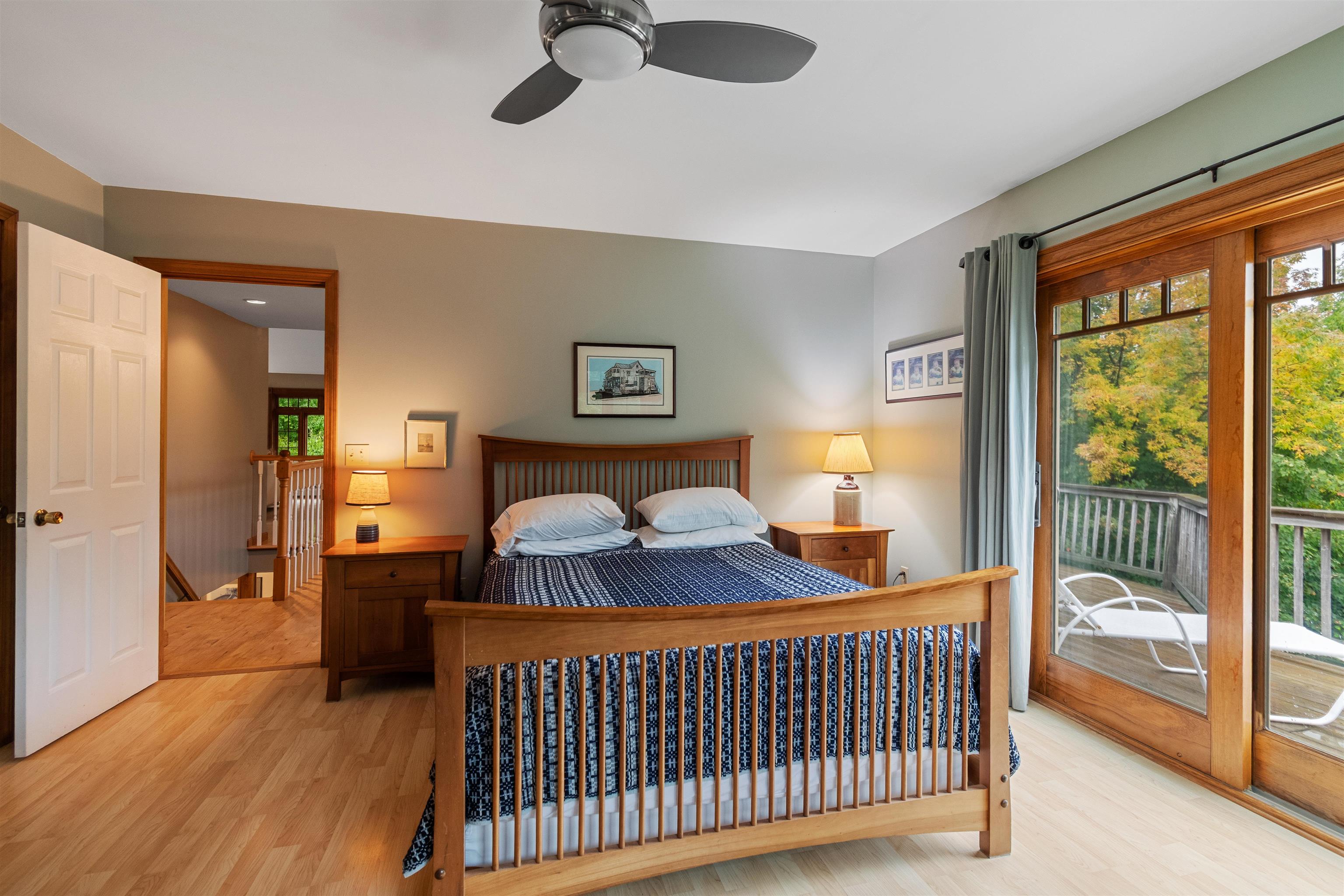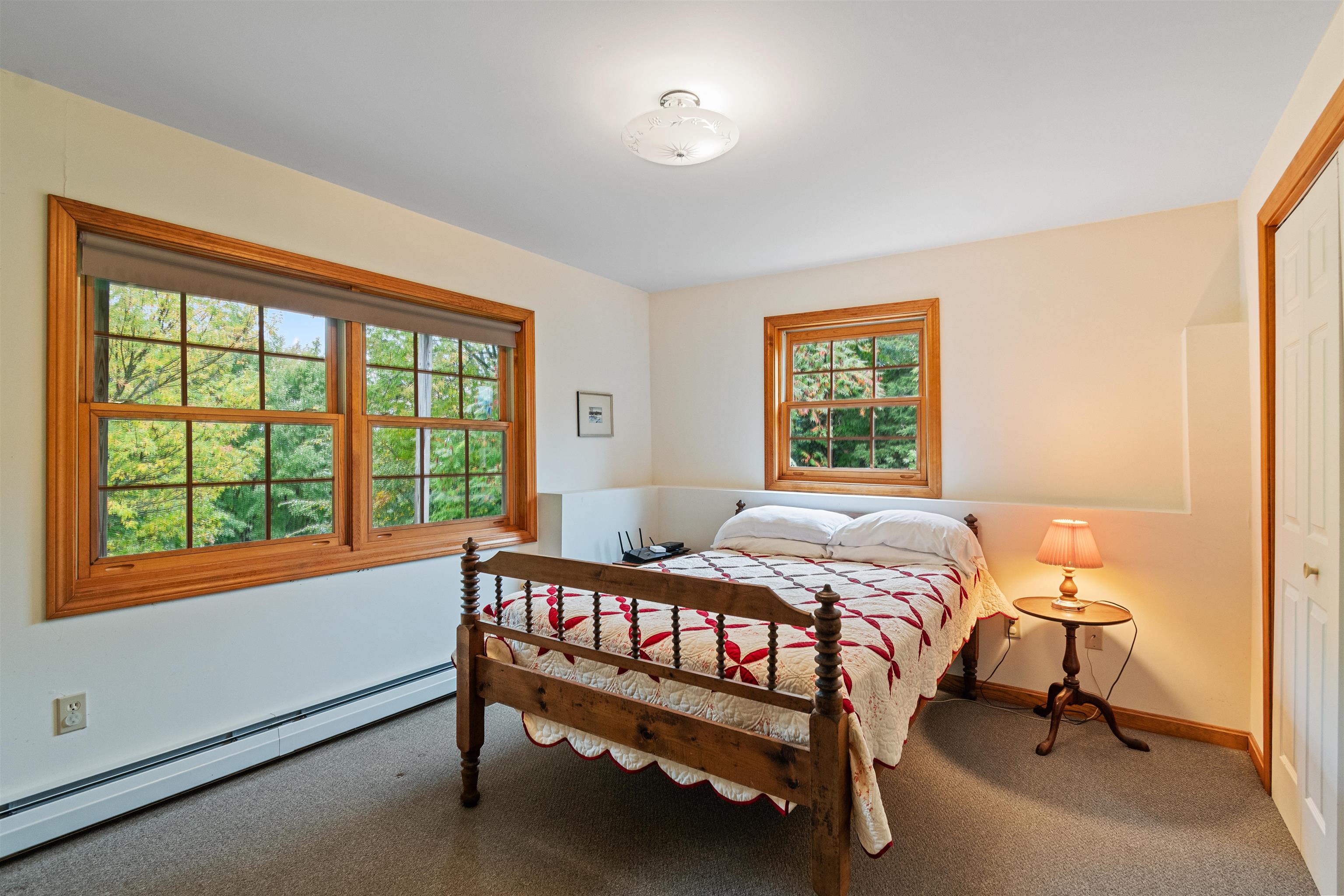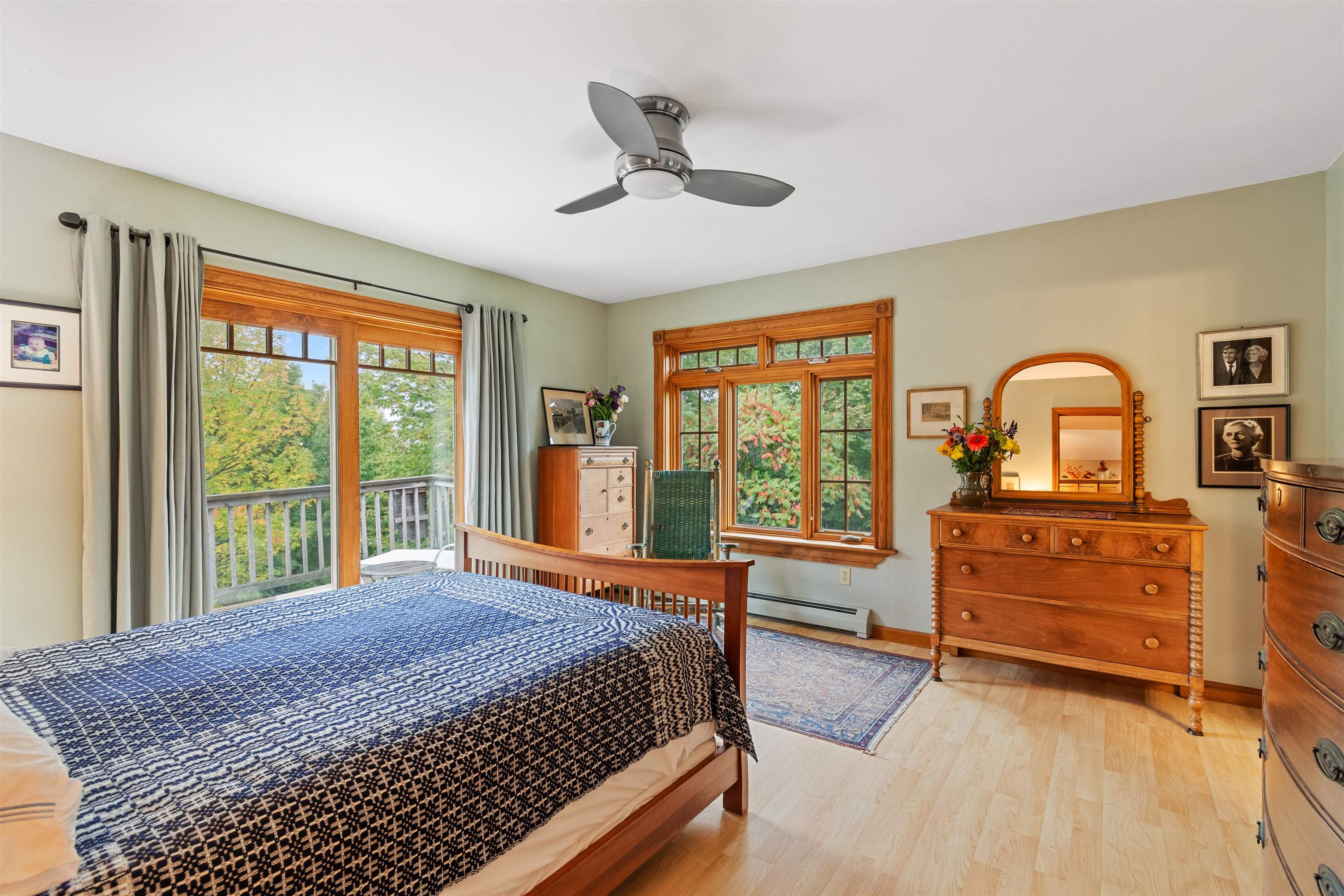 This lovingly cared for, expansive 5-bed, 2.5-bath home sits on over 11 acres in beautiful Grand Isle. Step inside to an open-concept main living space featuring vaulted ceilings, hardwood floors, and a cozy fireplace. The kitchen, overlooking the living area, boasts granite countertops and wood cabinets. Sliding doors lead to a large back deck with an Otter Creek awning and peekaboo views of Lake Champlain, the Adirondacks, and sunsets (especially in winter). The main level also includes a formal dining room and a first-floor primary suite with a walk-in closet, deck access, and an ensuite with double sinks, a soaking tub, and a step-in shower. A second bedroom, half bath, and direct entry to the 2-car garage complete this floor. The spacious finished walkout basement offers a central bonus space with access to a stone patio, plus three well-sized bedrooms with daylight windows and a full bath. Notable upgrades include owned solar panels (2017), a hard wired generator, new hot water tank (2020), radon mitigation system, and a new garage foundation (2024). Outside, find charming stone walls, a large gravel driveway, and a versatile shed with power and heat. Thoughtfully designed for single-level living flexibility yet offering abundant square footage, this is a rare opportunity to be only the second owner. Located on a quiet, town-maintained road, less than a mile from the town beach, this special property is ready for its next chapter.