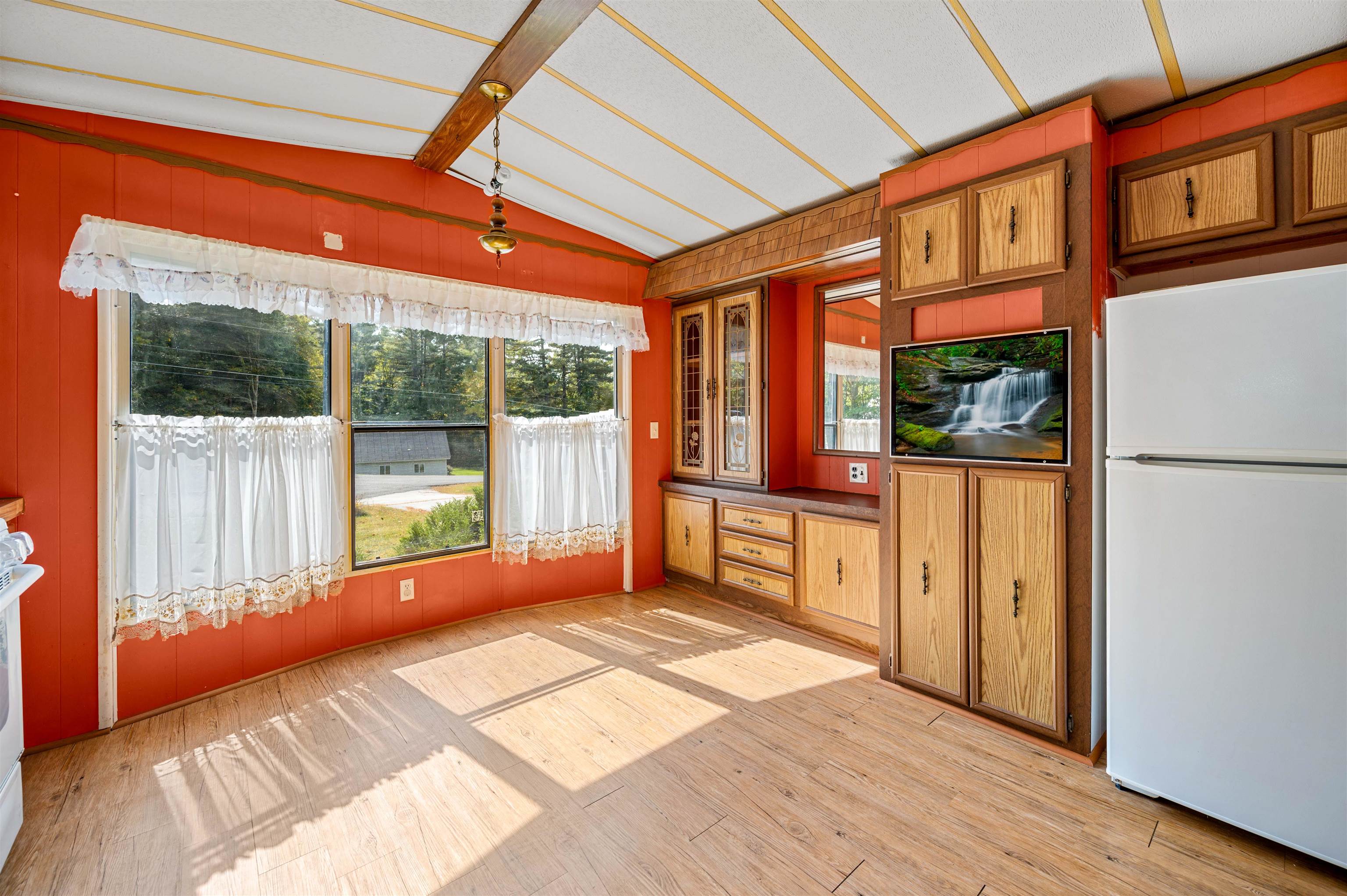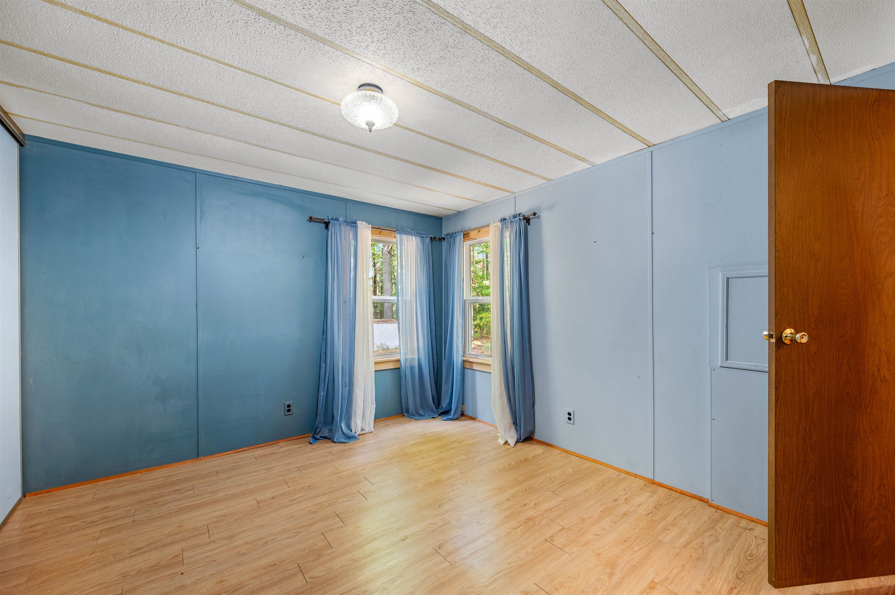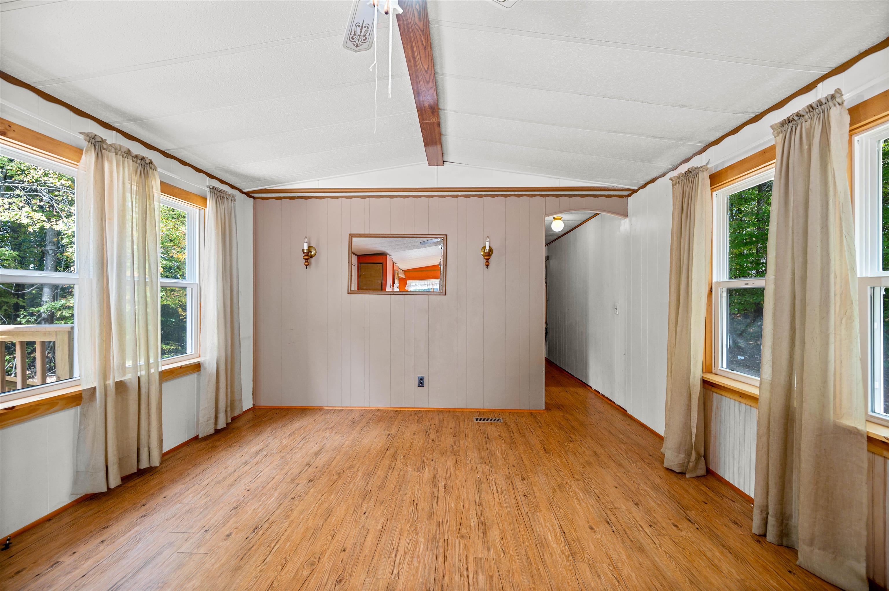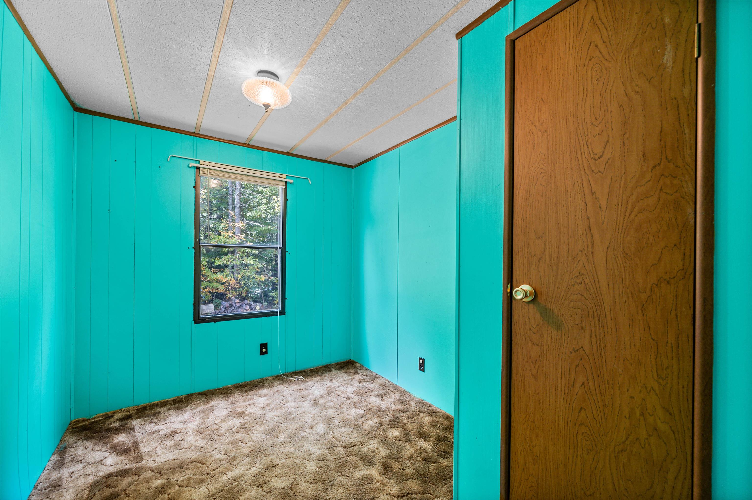 Discover easy living in this two-bedroom singlewide mobile home, situated on a generous 0.91-acre lot at the end of a quiet cul-de-sac. The home features a functional layout including an eat-in kitchen, living room, and a full bathroom with a stand-up shower. The bathroom is conveniently connected to the main living area and the primary bedroom. The layout includes space to easily accommodate the addition of a tub. The exterior boasts a large, level, private yard with a 14x14 deck and two sheds for storage. Enjoy the convenience of town water and sewer, a carport, and a paved driveway. This convenient location is within walking distance to a local store, and close to town recreation fields and the town bike path. A great opportunity for comfortable living with easy access to amenities. Open House 10/4 from 12-2pm.