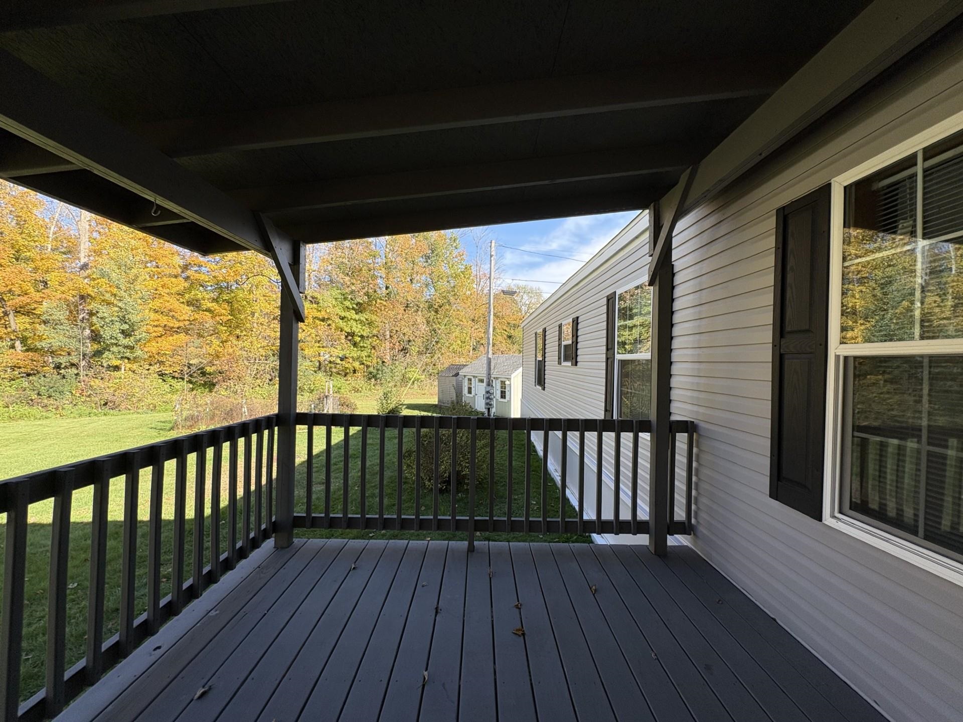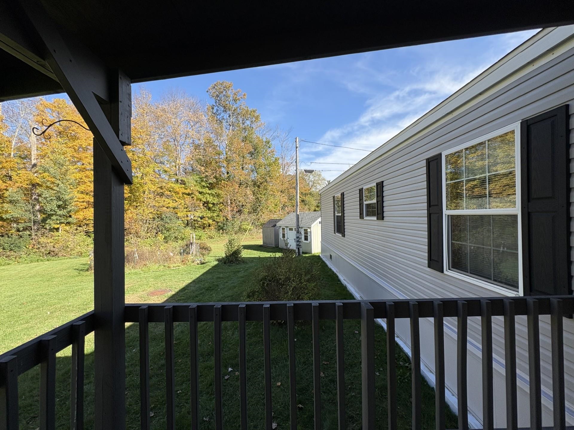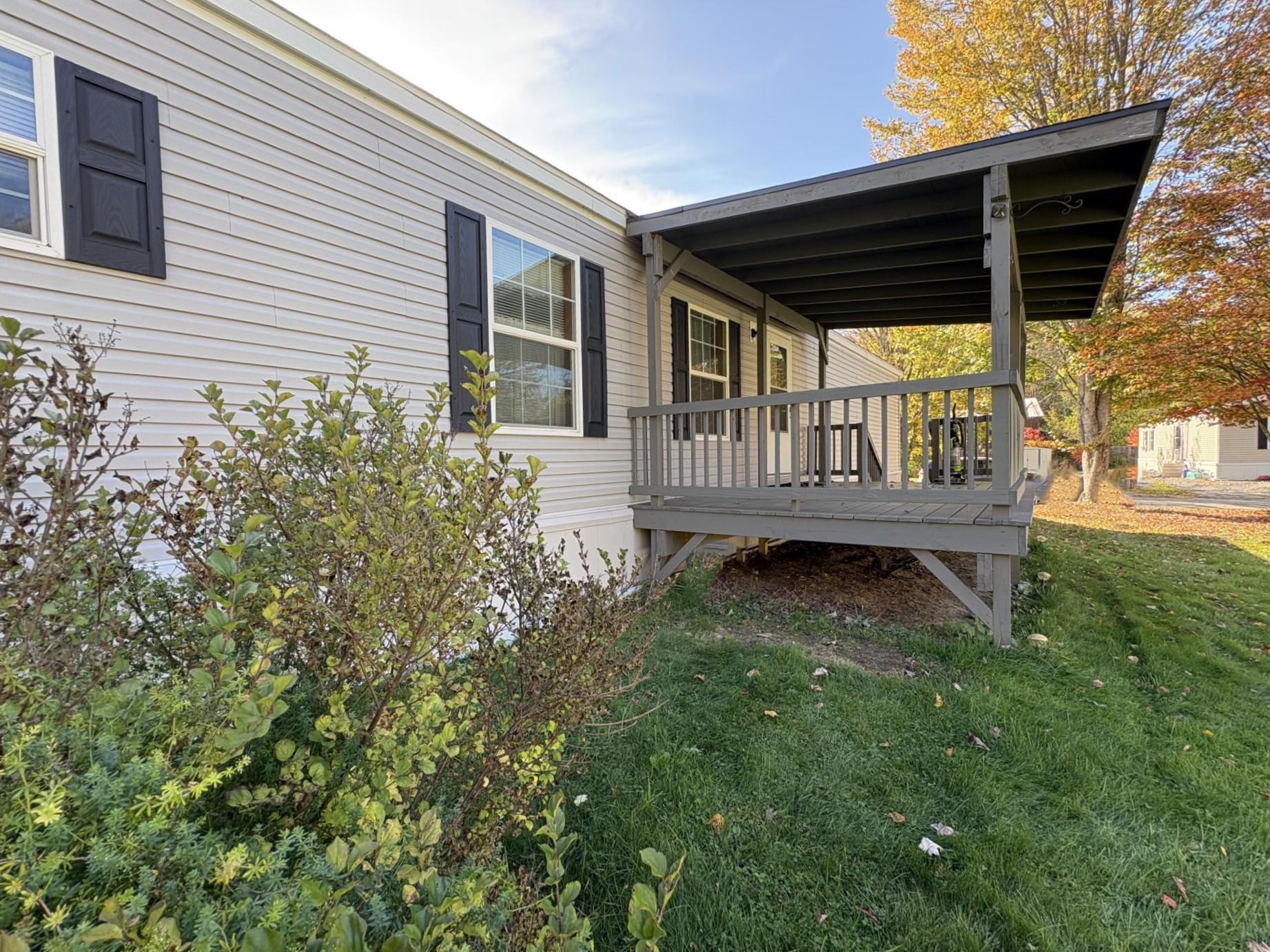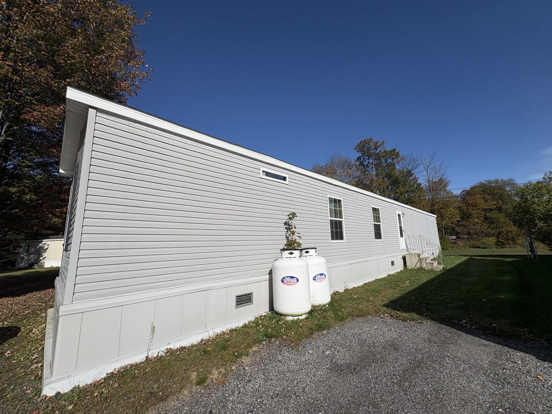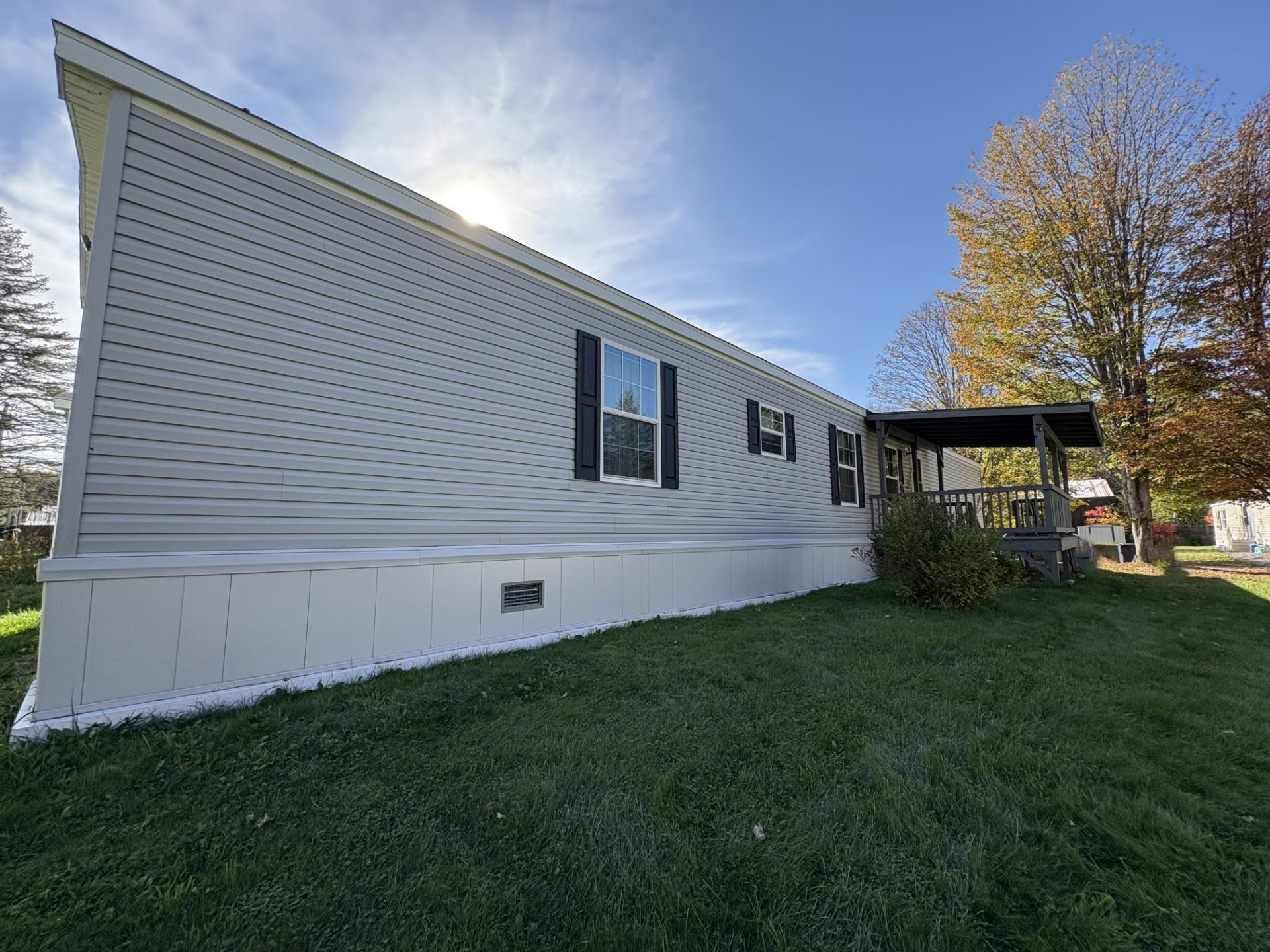 In Northfield, only minutes from the center of town, Norwich University and the access road to I89, is Tucker Mobile Home Park. The park, tucked just off Route 12A, sits in a country like setting, just off the main road. It is surrounded by trees creating a sense of privacy. It is welcoming and tranquil. Lot #19, also known as 98 K-T Lane, is the second to the last lot on the road. The lot features 2 parking spots. On the lot sits a 2018, 3-bedroom, 2 bath home on a slab. This well-maintained home features storm doors, and a large, covered deck. Inside the home you'll find an open concept kitchen, living, dining space. At one end of the home, just off the kitchen, is the primary suite. It features the primary bedroom, a 4x6 walk in closet and a 3/4 bath. At the other end is a full bath and two more bedrooms. Stackable laundry units and a coat nook are conveniently tucked away by back entrance, just off the living room/ dining room area. This property also features a garden area and two outdoor sheds for additional storage. There is a 4x8 shed on the property and a 10x20 shed, perfect for lawn and garden tools, tires and other items that are best stored outdoors. Whether you have ventured outside to garden, or to sit on the deck and soak up the rest of fall - I think you'll find the lot itself, inviting and comfortable. Come see for yourself! **Join us for the OPEN HOUSE Saturday 10/4/25 from 1:00-3:00**Contingent on Park Approval*