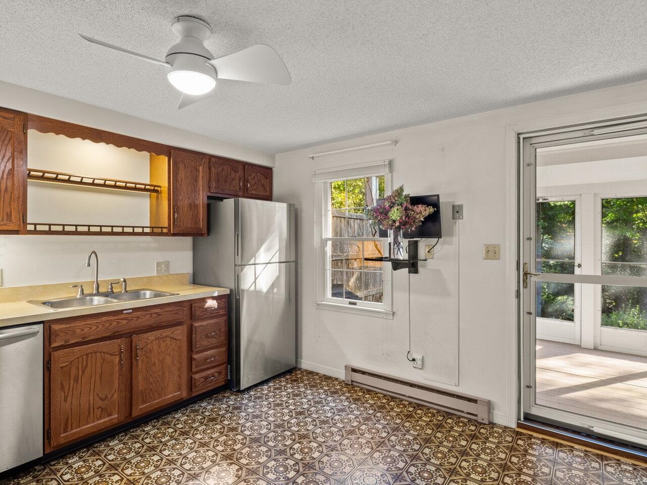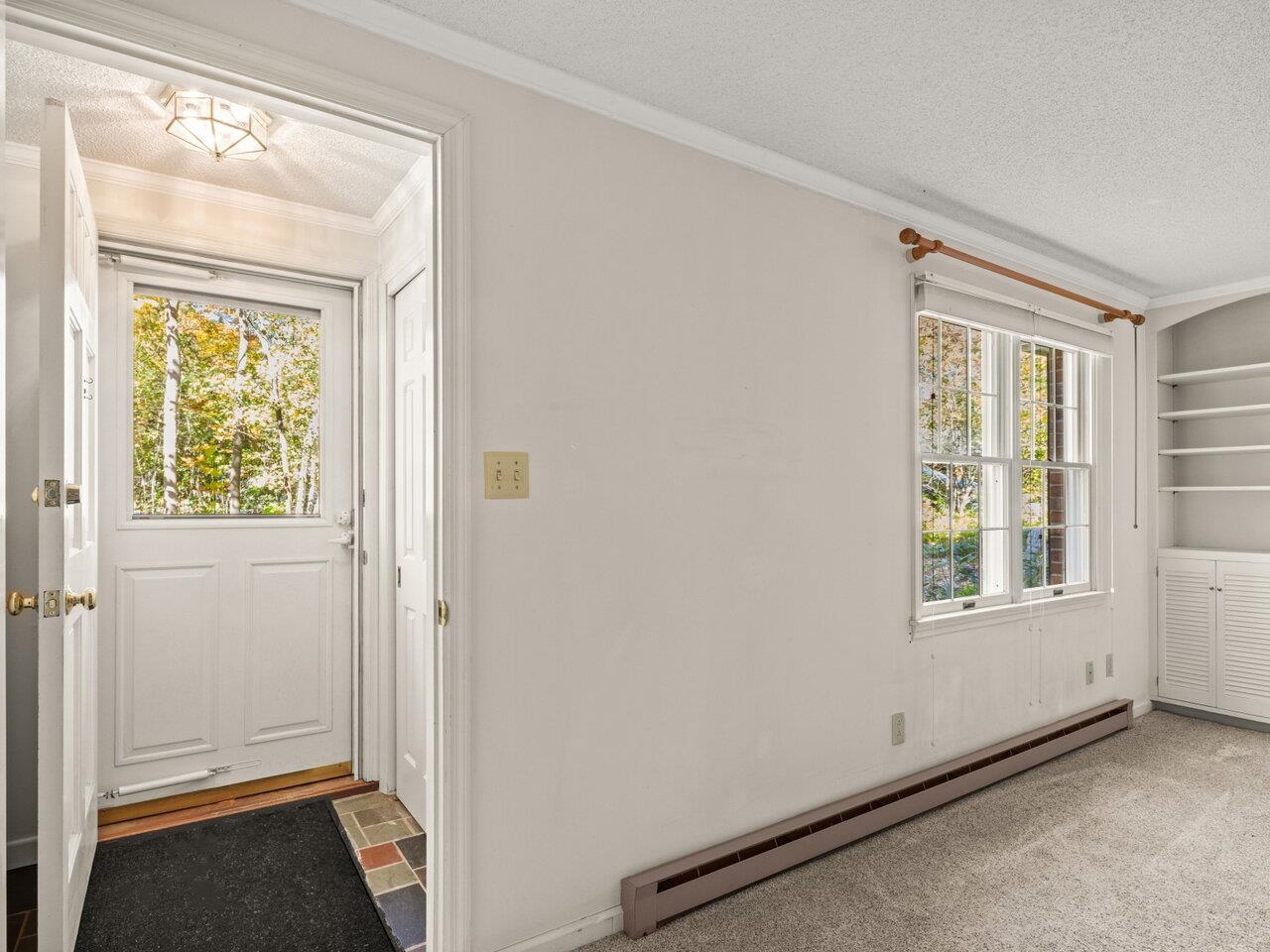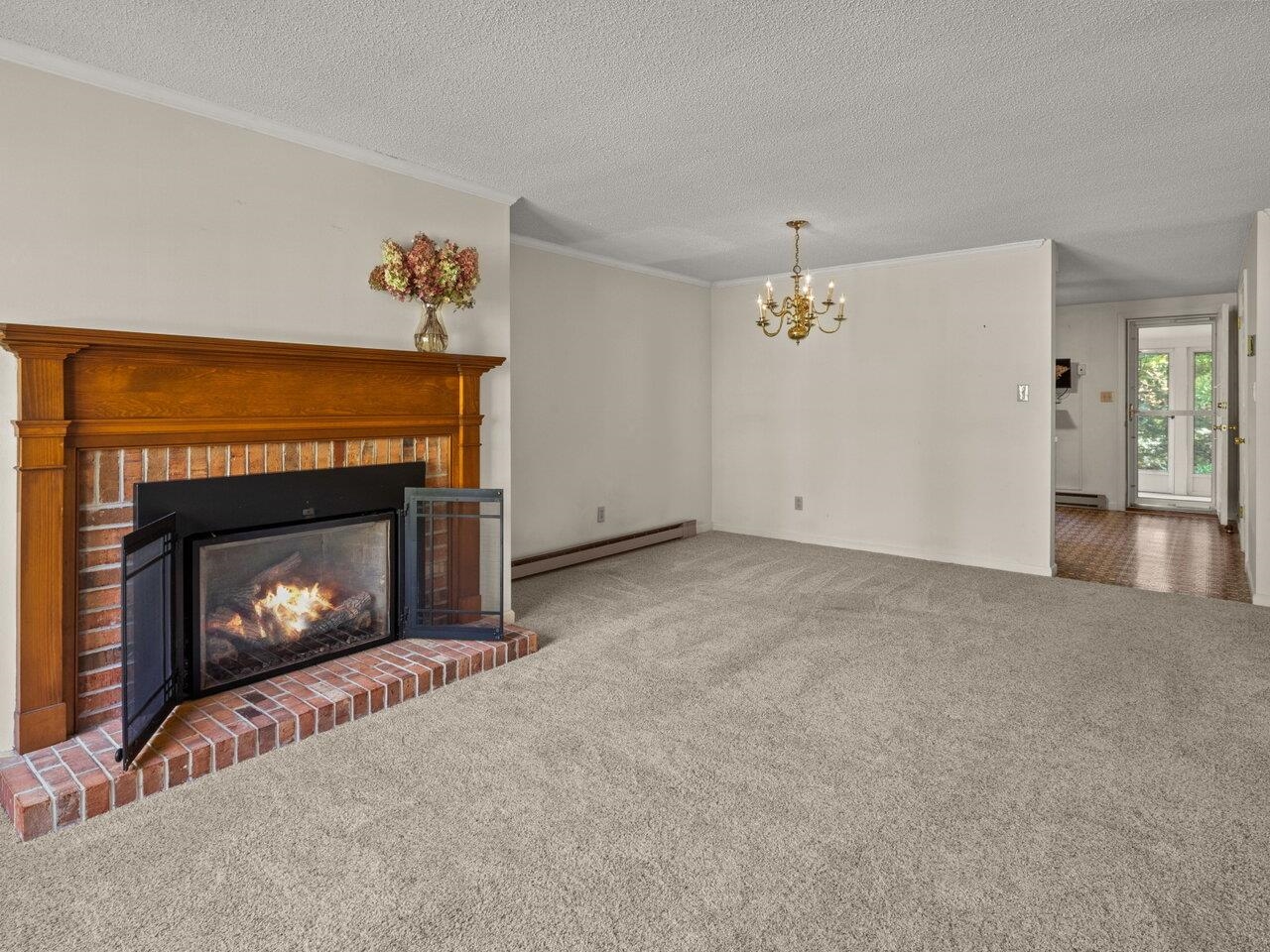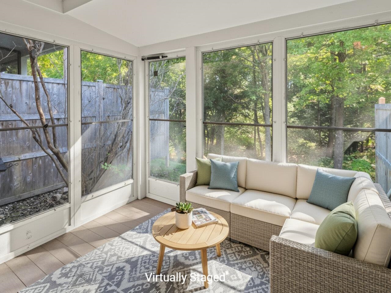 You'll love the bright, open floor plan in this meticulously maintained townhome in the sought-after Meadowbrook community. Surrounded by lush landscaping & forest, yet just moments from amenities, this home offers both comfort & convenience. Built with old-fashioned charm & quality, the design features brick, granite, cedar shakes, & crisp white trim. Inside, you are greeted by a spacious mudroom with a large closet, that leads to the gas fire-lit living room with custom built-ins & a generous dining area perfect for entertaining. The kitchen is functional & inviting with abundant cabinets, updated stainless appliances, under-cabinet lighting, & room for a small table or island. Conveniently located off the kitchen is the laundry, a powder room, & large storage closet, plus access to the delightful three-season porch with composite decking overlooking the gardens, forest, & stream. Upstairs are two spacious bedrooms & a full bath. The primary suite enjoys direct access to a second sink, makeup counter, & an extra closet, with a pocket door providing privacy from the main bath. The full unfinished basement offers great storage & potential for hobbies or a workout space. Additional perks include a detached carport with storage, resort-style amenities like a pool & tennis courts, & paths that connect to the South Burlington Rec Path. All just minutes to Downtown Burlington, Lake Champlain, shopping, UVM/Medical Center, and the Burlington Country Club.